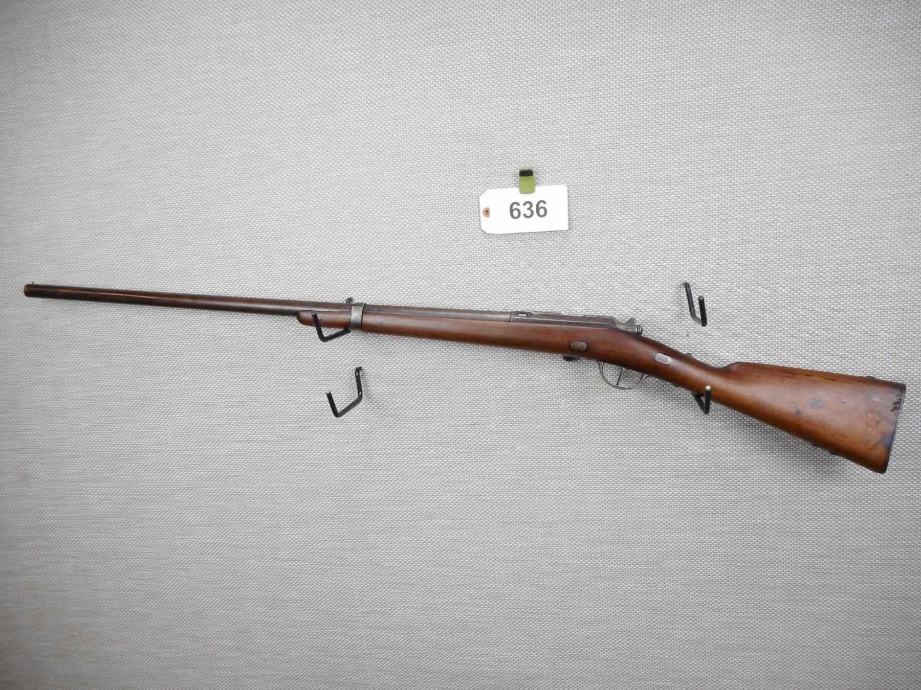 UNKNOWN BELGIAN , MODEL: M80 , CALIBER: 12 BORE , CONVERTED MILITARY RIFLE TO SHOTGUN, BORE IS GOOD WITH MINOR SPOT OF RUST, STOCK IS CRACKED AT THE TANG, CYLINDER BORE CHOKE, BEAD FRONT SIGHT, EXTENSIVE HANDLING MARKS, STEEL BUTT PLATE , ACTION: BOLT ACTION SINGLE SHOT SHOTGUN , SERIAL # 78585 , BARREL LENGTH: 32" , CONDITION: 5/10 , STOCK # 8641 , CLASS: CANADIAN NON RESTRICTED CLASS