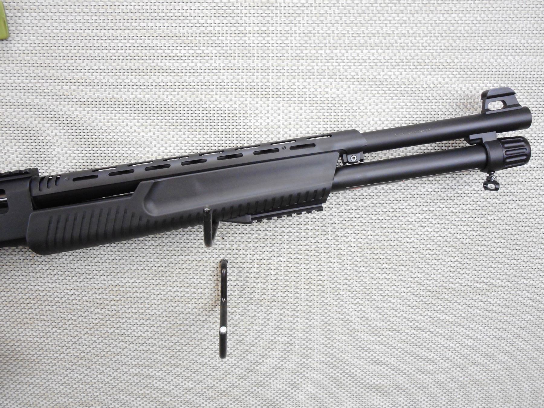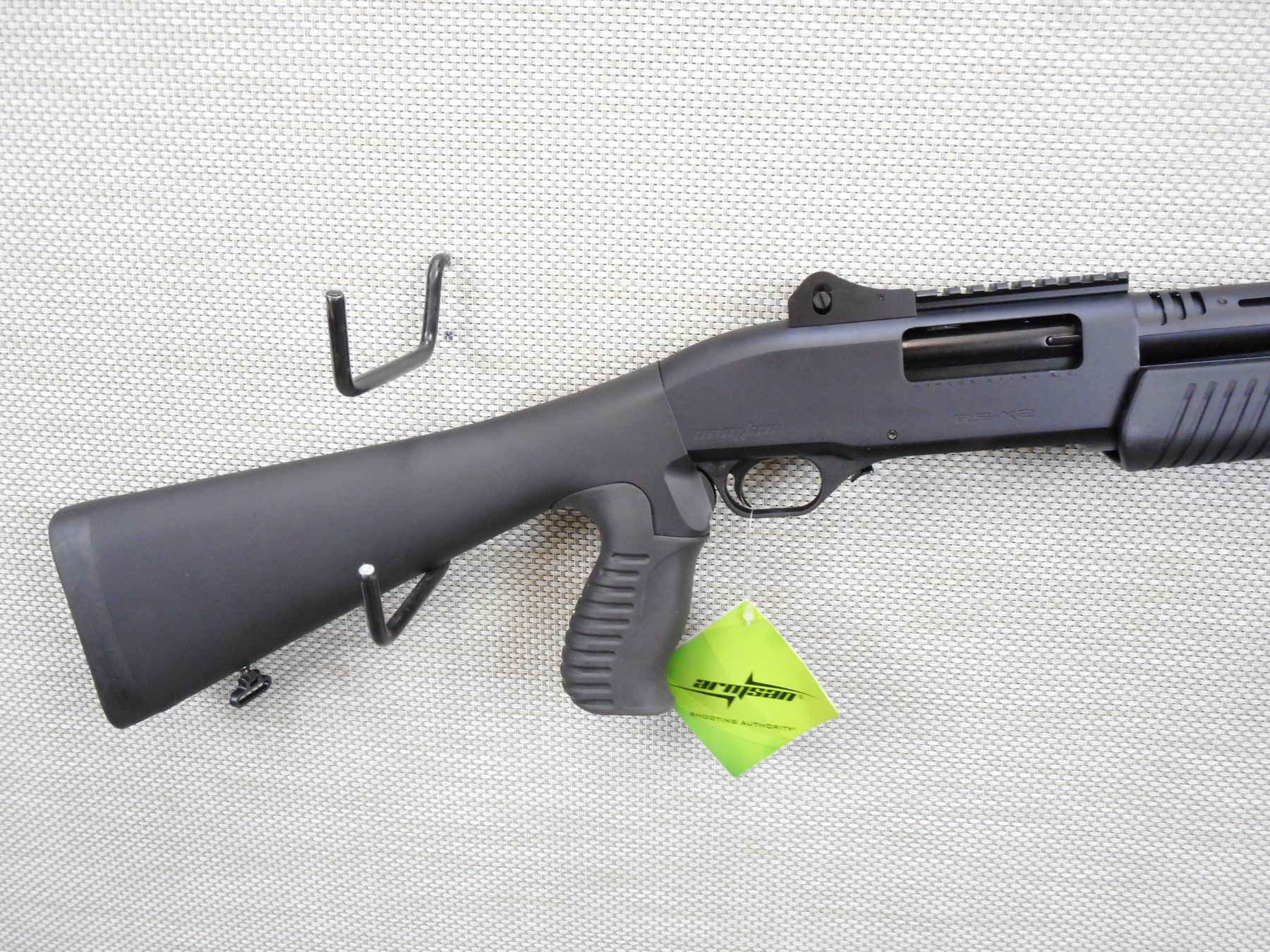 ARMSAN , MODEL: RS-X2 , CALIBER: 12GA X 3" , COMES NEW IN A BOX, SCREW IN CHOKES, ACCESSORY RAIL MOUNTED ON SYNTHETIC FOREND, FULL SYNTHETIC PISTOL GRIP BUTT STOCK, SLING SWIVEL LOOPS, RUBBER RECOIL PAD, FIBER OPTIC FRONT AND PEEP ADJUSTABLE REAR SIGHT , ACTION: PUMP ACTION SHOTGUN , SERIAL # 14M8444 , BARREL LENGTH: 20" , CONDITION: NEW IN BOX , STOCK # 8895 , CLASS: CANADIAN NON RESTRICTED CLASS
