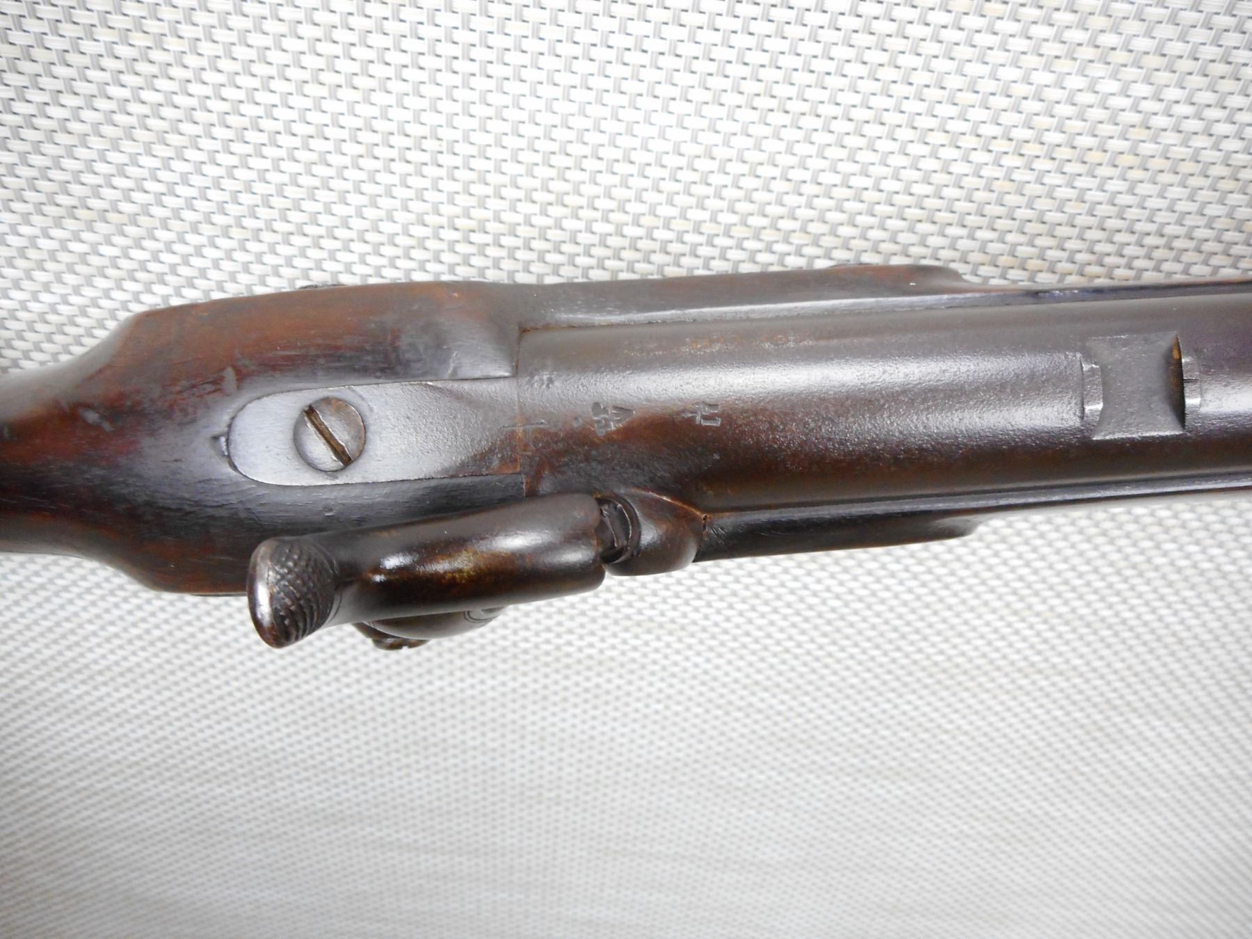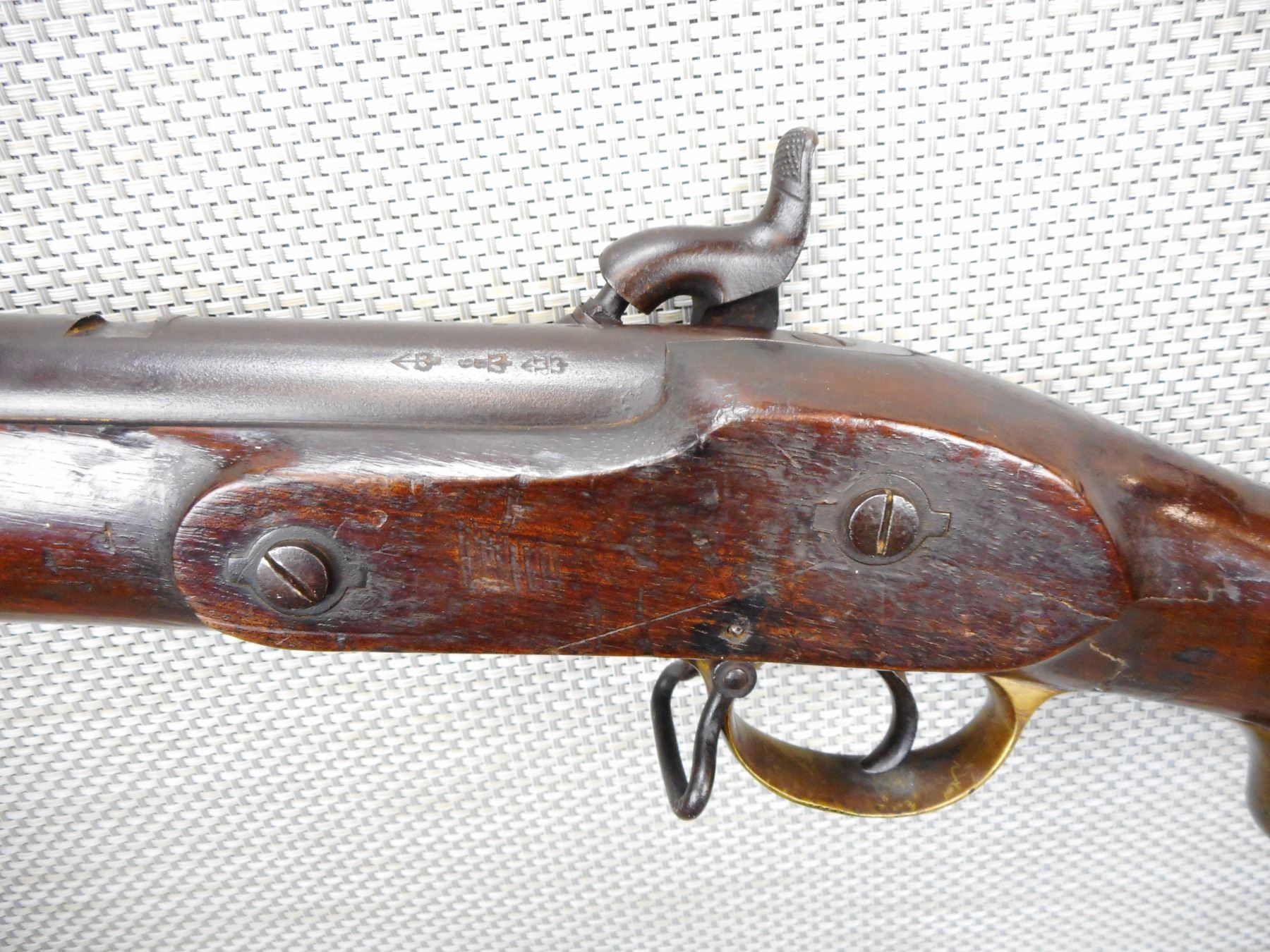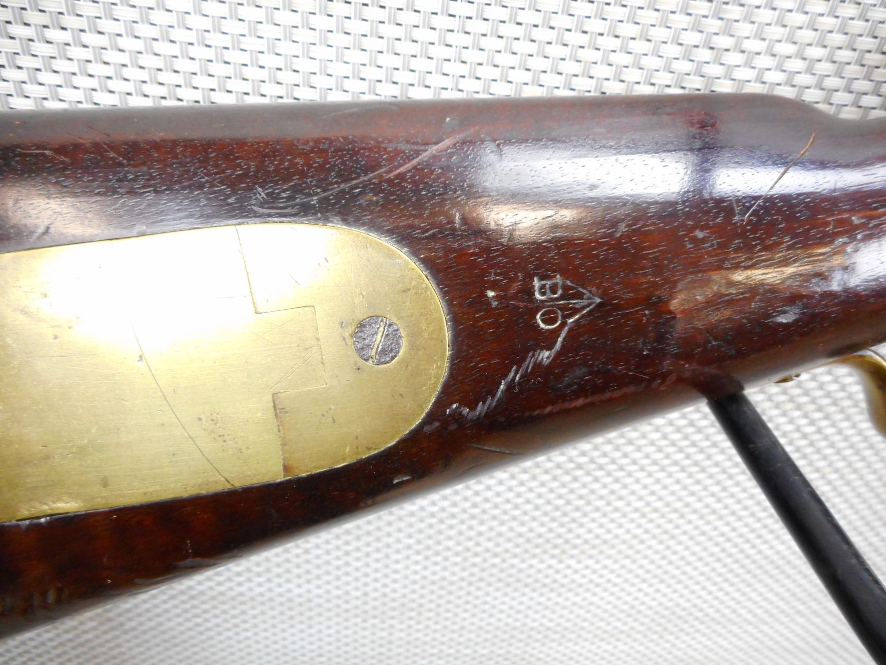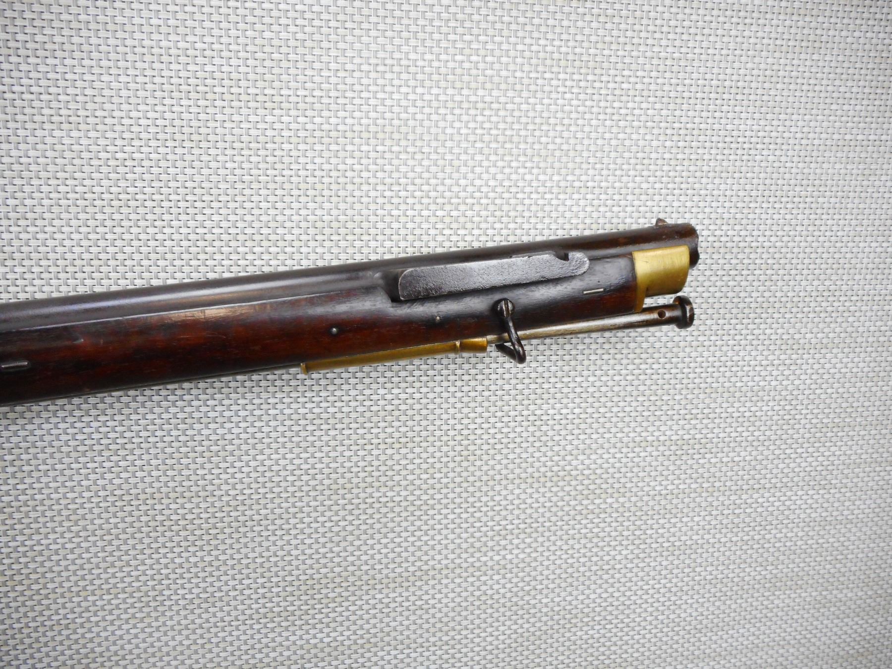 BRITISH SERVICE , MODEL: BRUNSWICK RIFLE , CALIBER: 70 CAL PERC , MANUFACTURED BY TOWER DATED 1847, PITTED BORE, NUMEROUS BRITISH PROOFS, FULL WOOD STOCK WITH A BAYONET LUG, BRASS NOSE CAP TRIGGER GUARD PATCH BOX AND BUTT PLATE, RETAINS ORGINAL CLEANING ROD AND BORE CLEANING ATTACHMENT, SLING SWIVEL LOOPS, SMALL CHIPS IN THE WOOD AROUND THE LOCK PLATE, MISSING THE REAR SIGHT, DOVETAIL FRONT SIGHT, SHOWS SOME HANDLING MARKS, ACTIONN IS TIGHT , ACTION: SINGLE SHOT PERCUSSION , SERIAL # N/A , BARREL LENGTH: 30" , CONDITION: 6/10 ANTIQUE CLASS , STOCK # , CLASS: CANADIAN ANTIQUE CLASS
