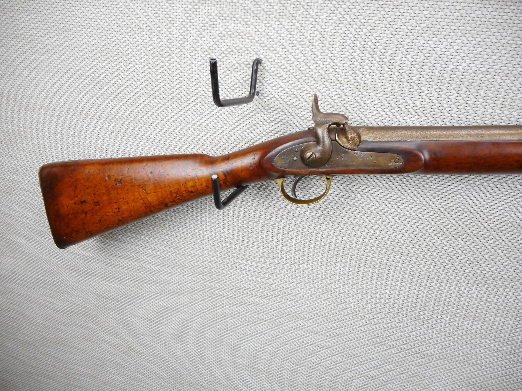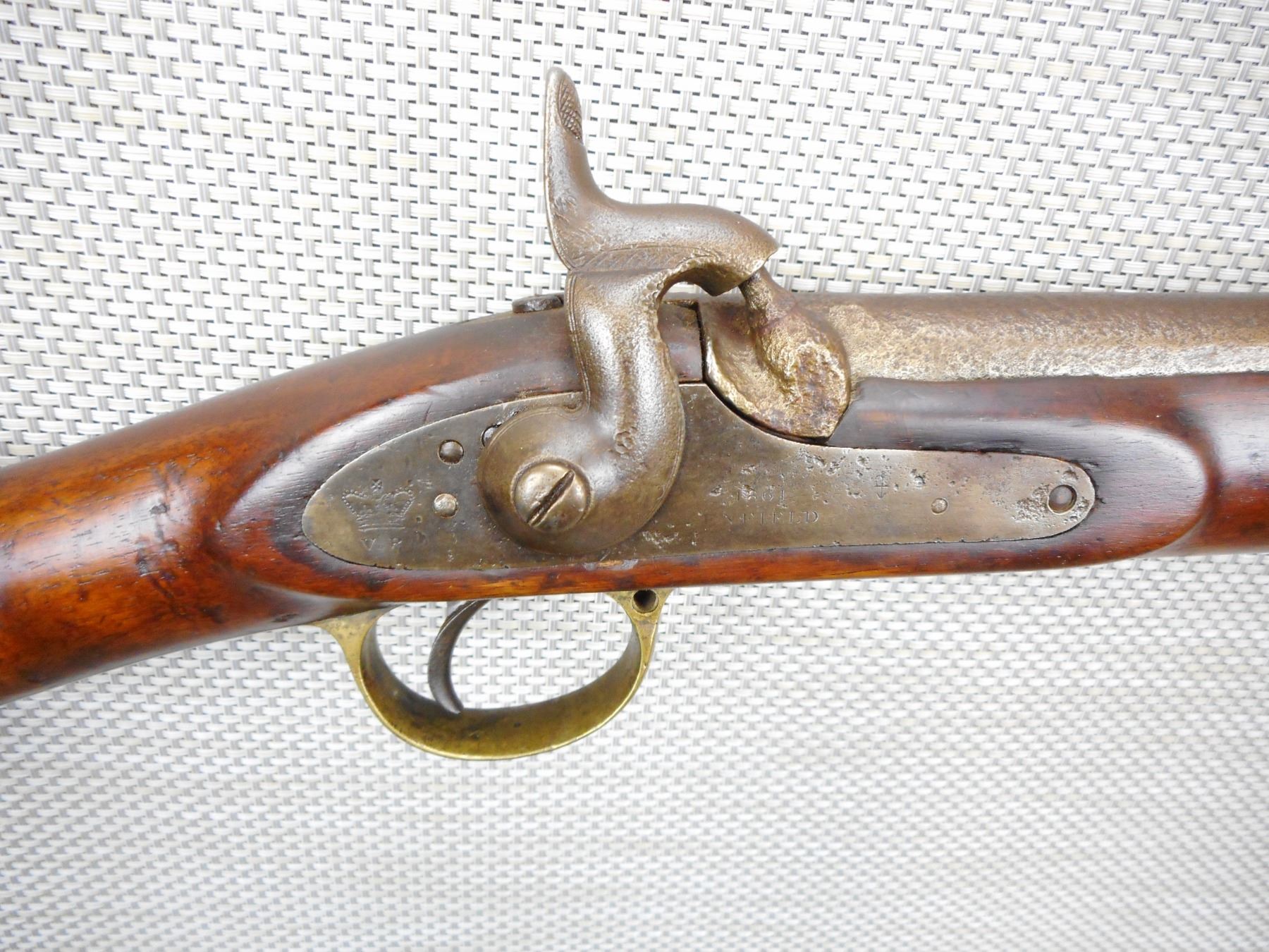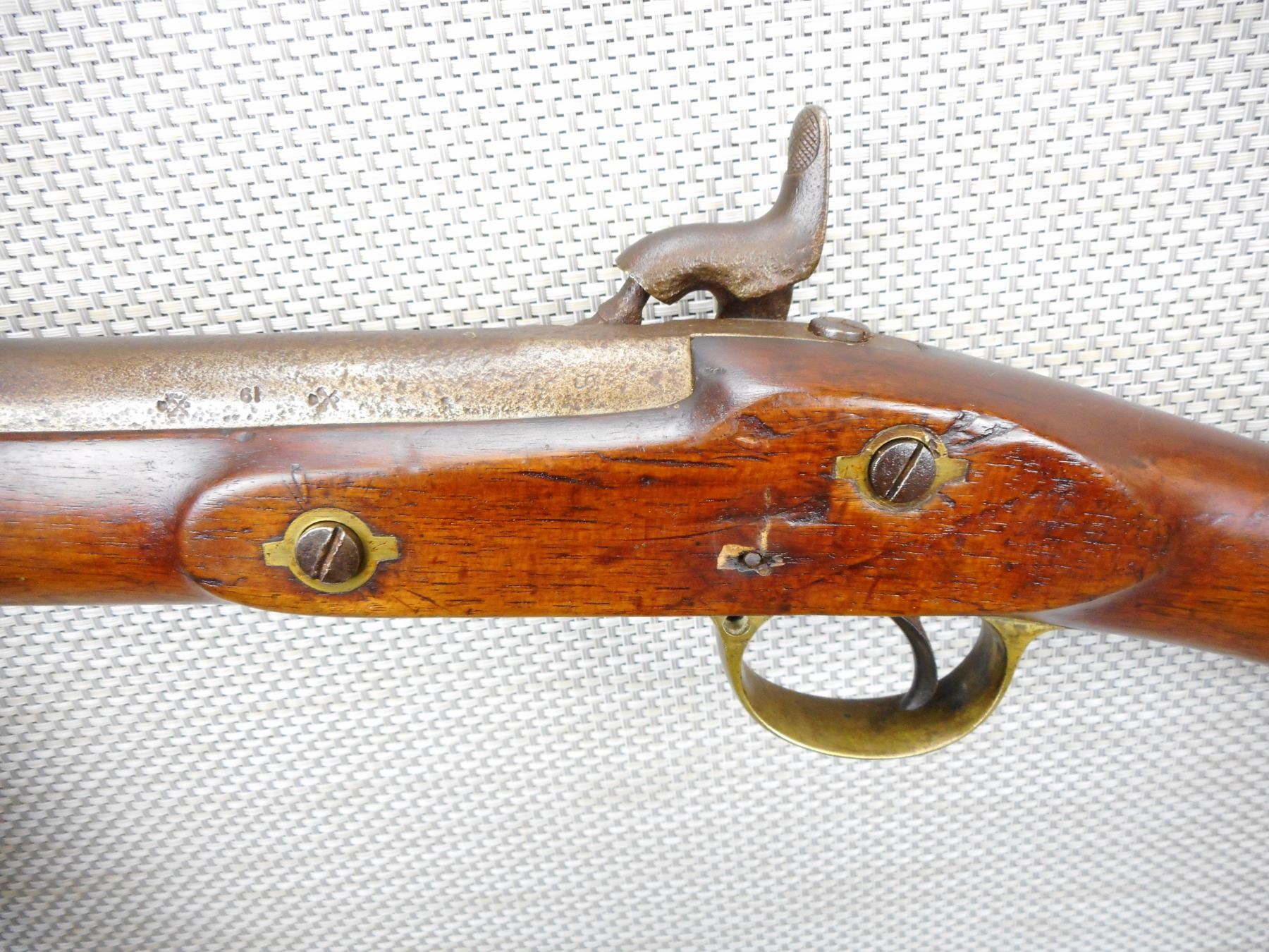 ENFIELD , MODEL: 1853 PATTERN MUSKET , CALIBER: 58 CAL PERC , DATED 1861, BORE IS DARK, ORIGINAL RAM ROD, NUMEROUS REGIMENTAL MARKINGS, BARREL IS LIGHTLY PITTED, SHOWS SOME HANDLING MARKS, DOES NOT RETAIN COCK IN THE FIRING POSITION, SLING SWIVEL STUDS, FRONT BARREL BAND BUT MISSING THE MID BARREL BAND , ACTION: SINGLE SHOT PERCUSSION , SERIAL # N/A , BARREL LENGTH: 39" , CONDITION: 5/10 ANTIQUE , STOCK # , CLASS: CANADIAN ANTIQUE CLASS