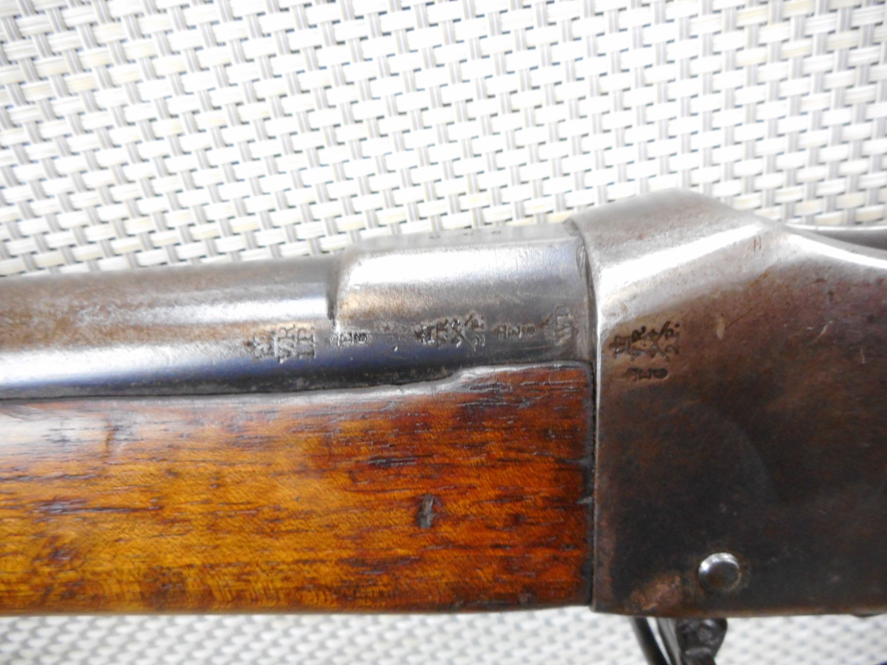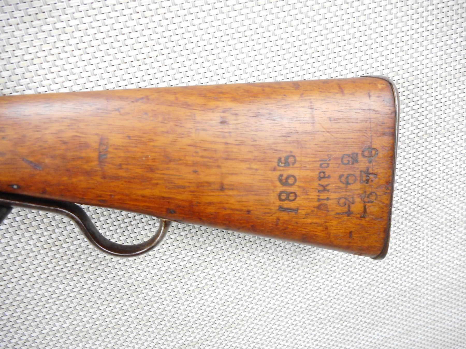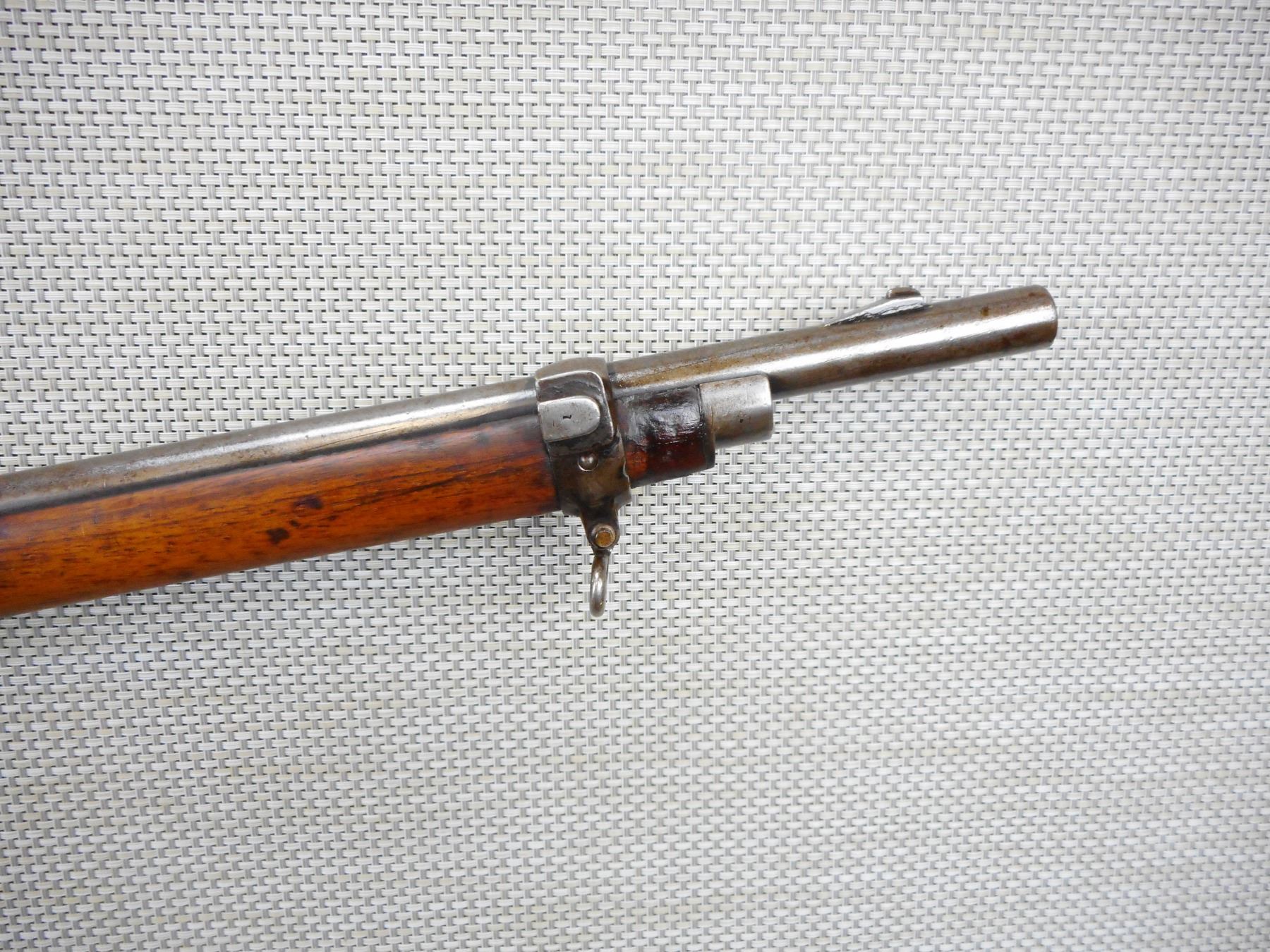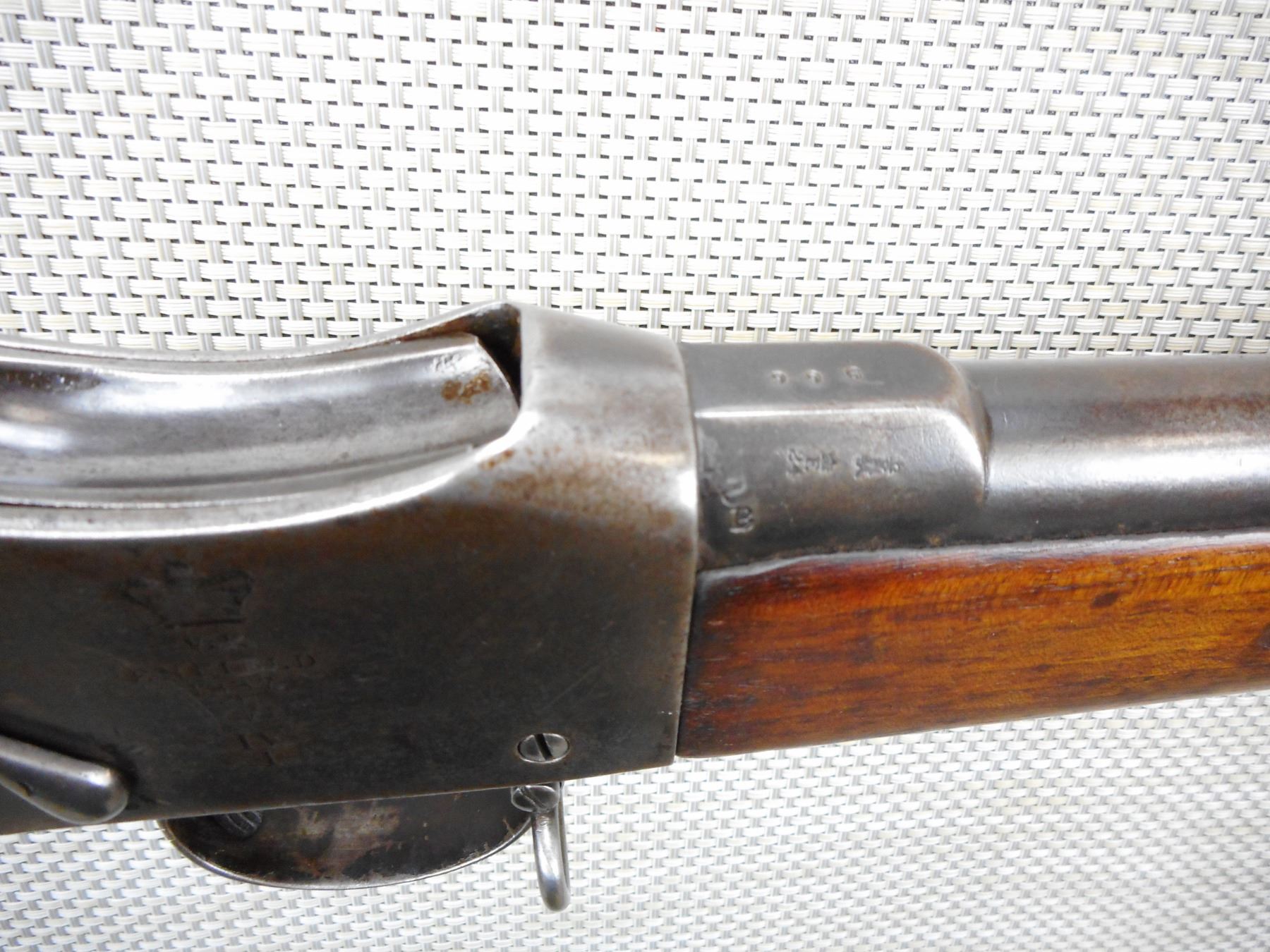 MARTINI ENFIELD , MODEL: MKIV , CALIBER: 577-450 , DATED 1887 LONG LEVER VERSION, BORE IS GOOD, BLADE FRONT AND ADJUSTABLE REAR SIGHTS, TWO PIECE HARDWOOD STOCK THAT IS RICHLEY REGIMENTALLY MARKED, STEEL BUTT PLATE, SHOWS SOME HANDLING MARKS, SLING SWIVEL LOOPS, SOME ACTION SCREWS ARE BADLY MARRED , ACTION: FALLING BLOCK MARTINI SINGLE SHOT , SERIAL # 966 , BARREL LENGTH: 33" , CONDITION: 6/10 ANTIQUE CLASS , STOCK # , CLASS: CANADIAN ANTIQUE CLASS