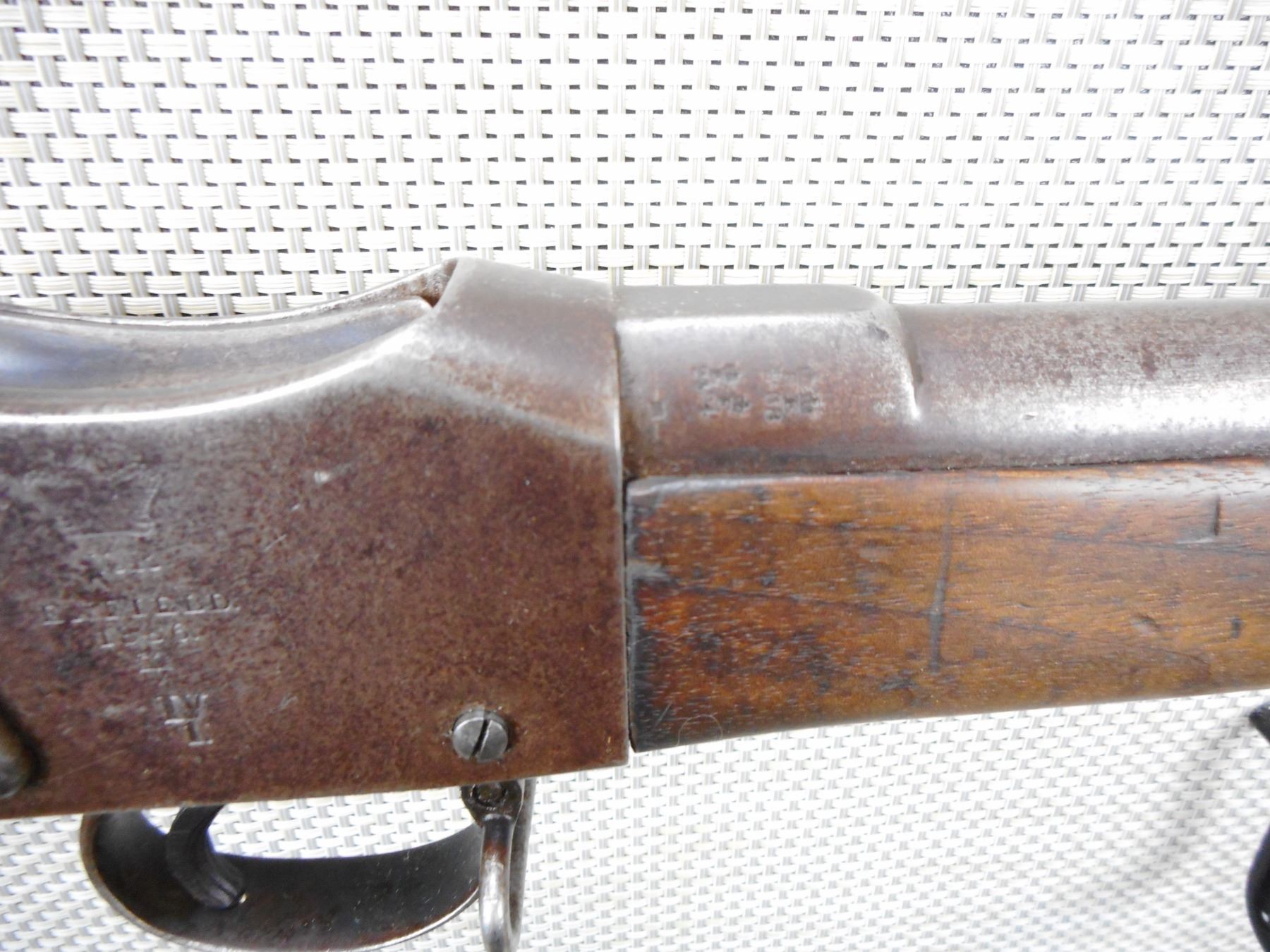 MARTINI HENRY , MODEL: MARK IV , CALIBER: 577/450 , BORE IS VERY GOOD, DATED 1886, RAMP FRONT AND ADJUSTABLE REAR SIGHTS, STOCK IS GOUGED AT THE FOREND AND CHIPPED AT THE WRIST, FEATURES THE LONG LEVER, STEEL BUTT PLATE, BUTT STOCK IS CRACKED AT THE HEAL, MISSING THE REAR SLING SWIVEL, SHOWS NUMEROUS HANDLING MARKS, RETAINS ORIGINAL CLEANING ROD , ACTION: FALLING BLOCK MARTINI SINGLE SHOT , SERIAL # 179 , BARREL LENGTH: 33" , CONDITION: 4/10 ANTIQUE , STOCK # , CLASS: CANADIAN ANTIQUE CLASS