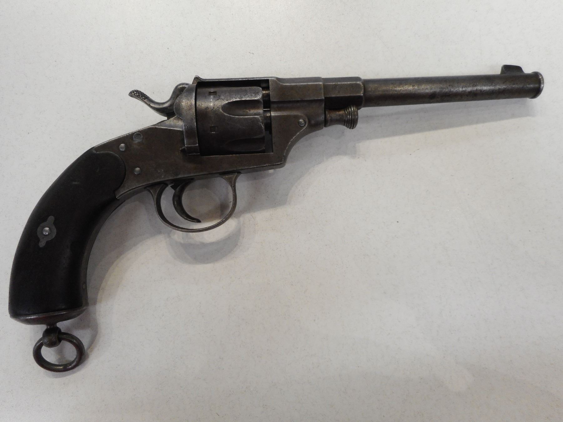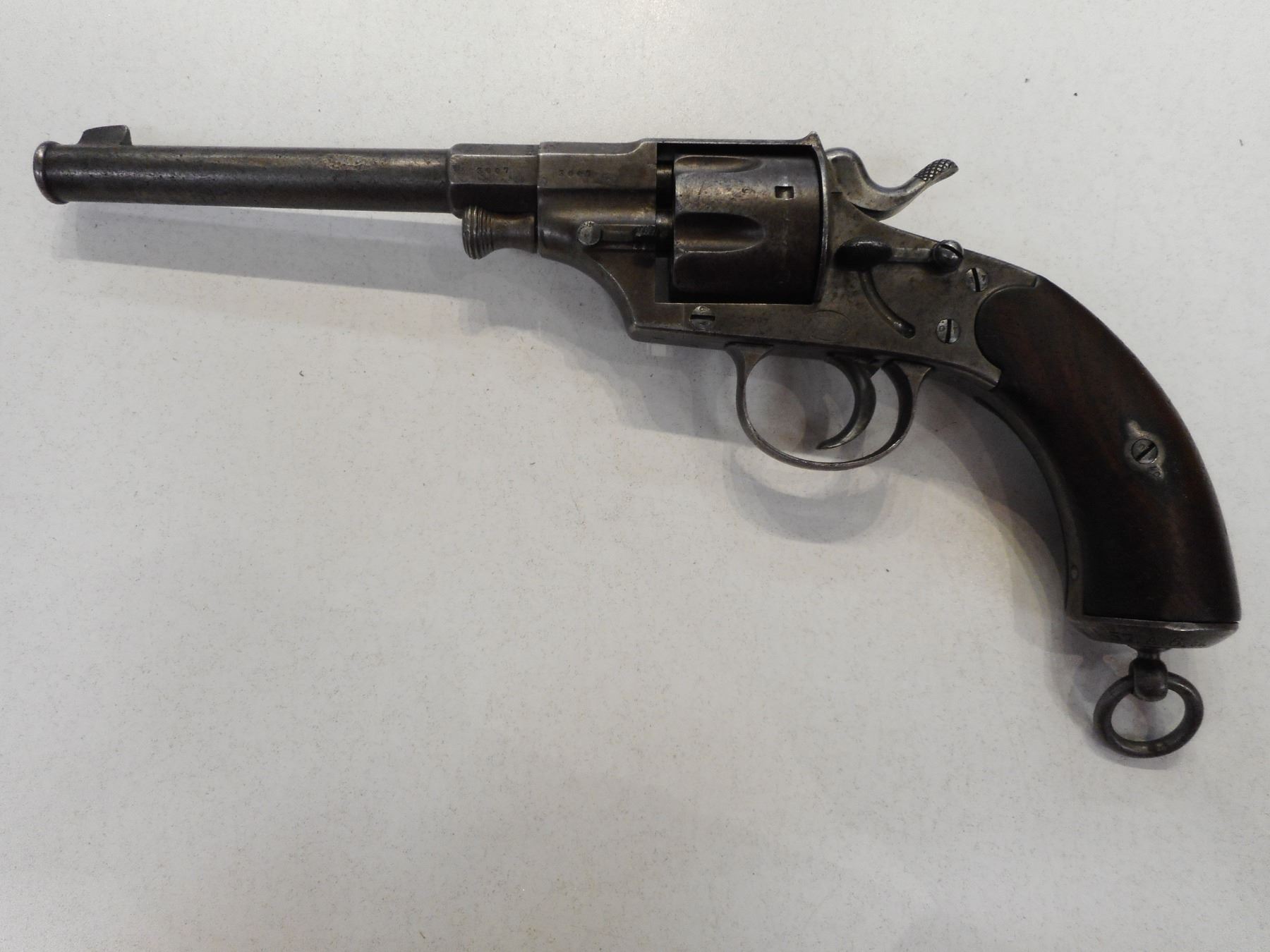 REICH , MODEL: REVOLVER , CALIBER: 10.55 44 RUSSIAN , BLADE FRONT AND NOTCH REAR SIGHT, OVERALL GREY PATINA, SHOWS SOME HANDLING MARKS, HARDWOOD GRIPS, LANYARD LOOP, RICHLEY REGIMENTALLY MARKED, BORE IS GOOD , ACTION: REVOLVER , SERIAL # 3007 , BARREL LENGTH: 7" , CONDITION: 6/10 ANTIQUE CLASS , STOCK # , CLASS: CANADIAN ANTIQUE CLASS