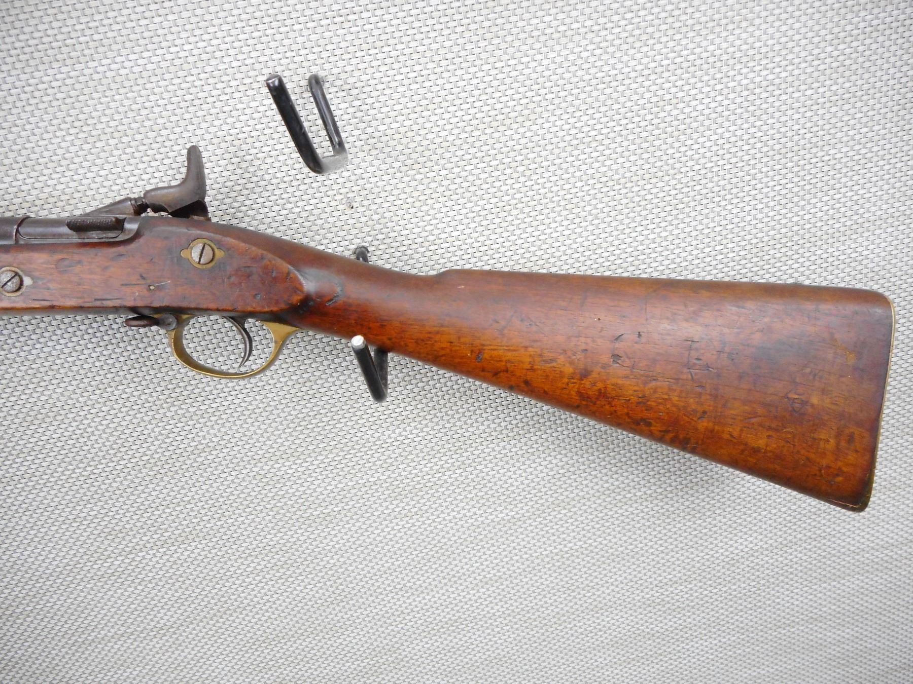 SNIDER ENFIELD , MODEL: 1868 MARK II ** , CALIBER: 577 SNIDER , BORE HAS SCATTERED PITTING, STOCK IS CRACKED AT THE WRIST, NUMEROUS REGIMENTAL MARKINGS, WOOD GOUGED NEAR BACK SIGHT, RETAINS ORIGINAL RAM ROD, SHOWS SOME HANDLING MARKS, BRASS BUTT PLATE, SLING SWIVEL LOOPS , ACTION: SINGLE SHOT , SERIAL # 2798 , BARREL LENGTH: 39" , CONDITION: 6/10 ANTIQUE CLASS , STOCK # , CLASS: CANADIAN ANTIQUE CLASS