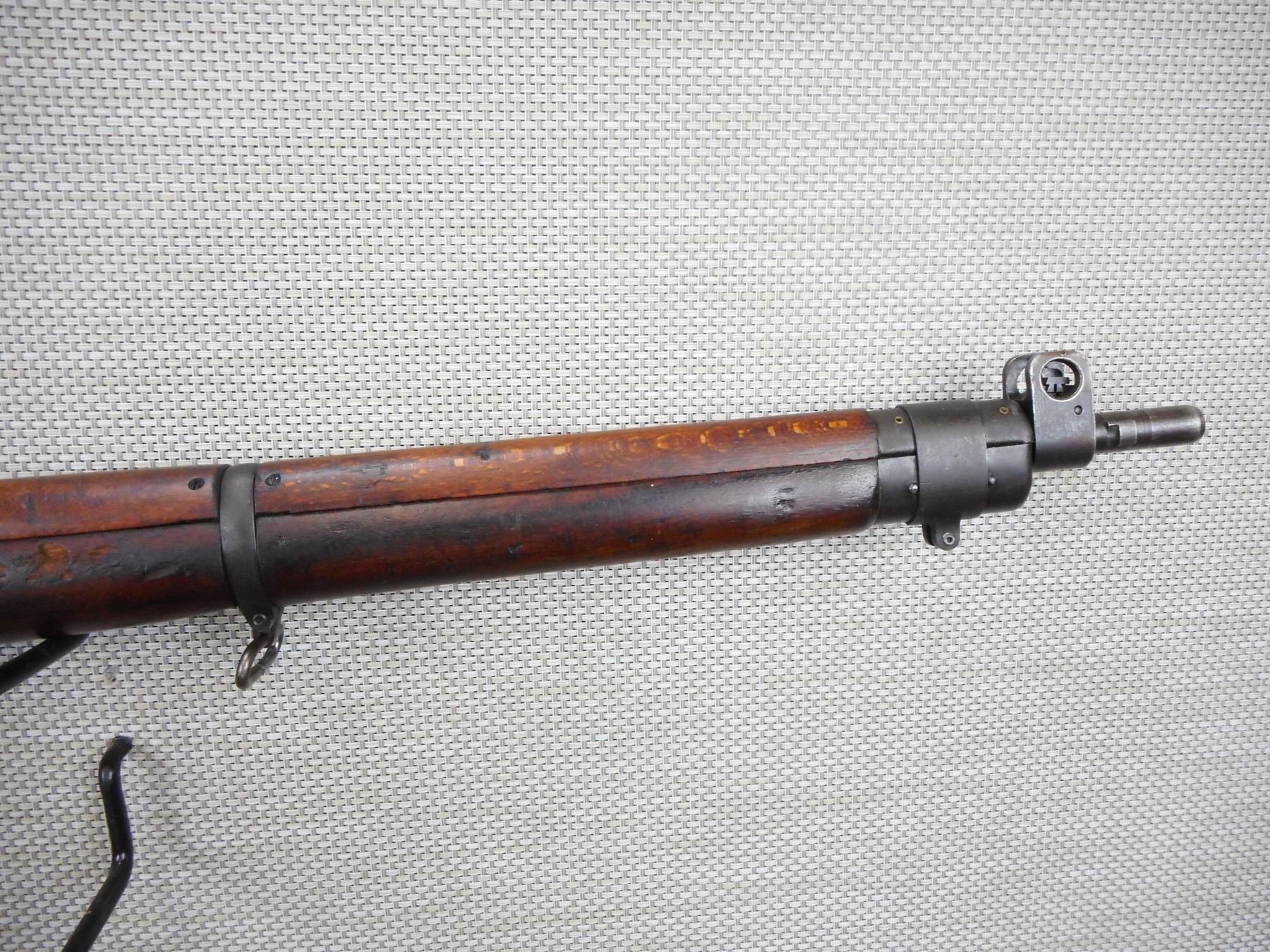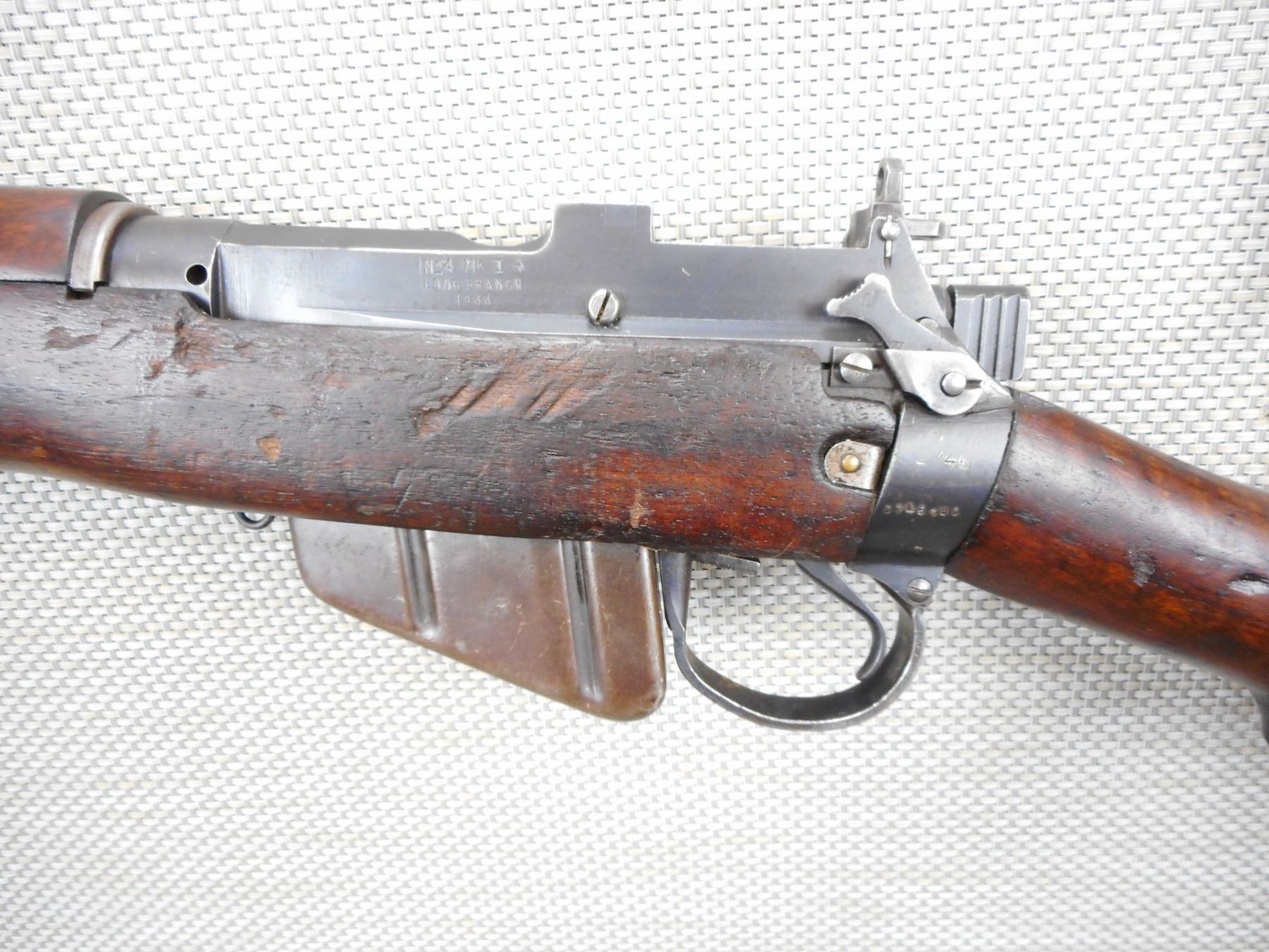 WWII ERA, LEE ENFIELD , DEACTIVATED , MODEL: NO 4 MKI* LONG BRANCH , CALIBER: 303 BR , DEWATED, BOLT IS WELDED SHUT AND MAGAZINE IS WELDED TO RECEIVER, NO LICENSE REQUIRED TO PURCHASE, DATED 1944, RETAINS FULL MILITARY CONFIGURATION, SHOWS SOME HANDLING MARKS, SLING LOOPS, BARLEY CORN FRONT PEEP REAR SIGHT, BRASS BUTT PLATE , SERIAL # 67L5686 , NON FIREARM