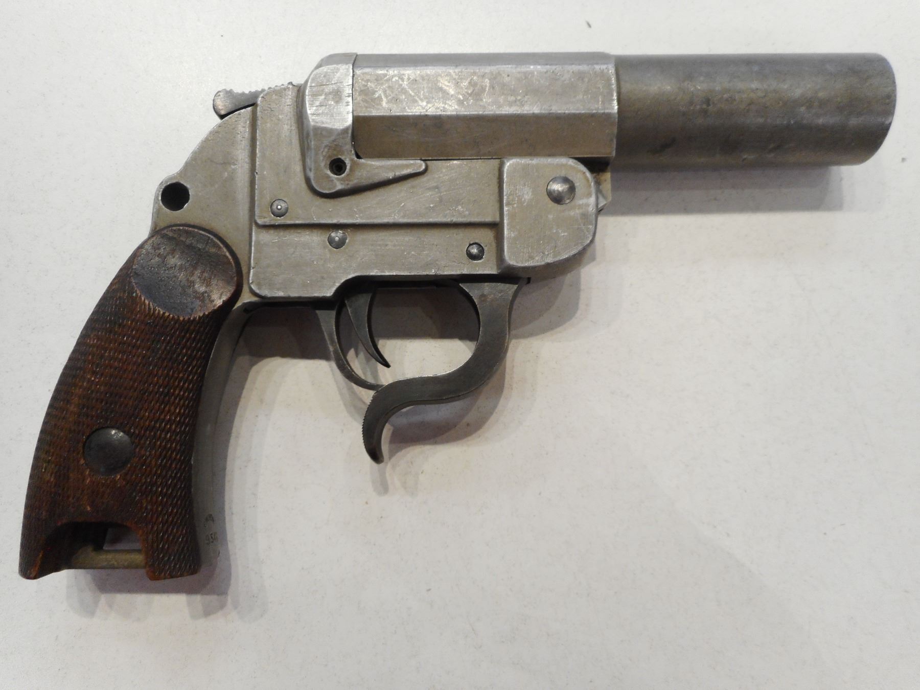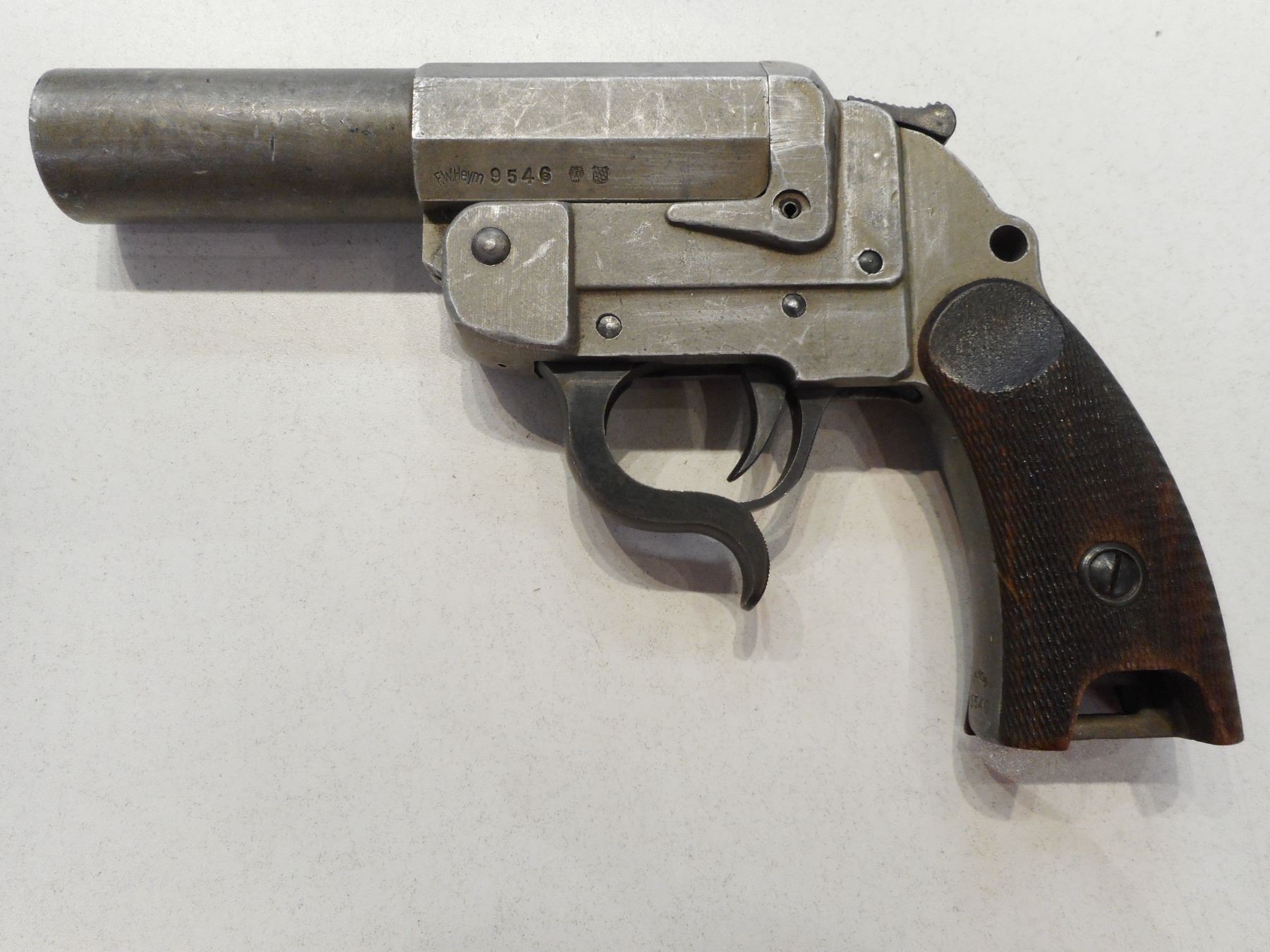 POST WWII GERMAN SIGNAL PISTOL , MODEL: , CALIBER: N/A , MAKER F.W. HEYM ISUED TO GERMAN POLICE & CUSTOM SERVICES , SERIAL # 9546 , NON FIREARM