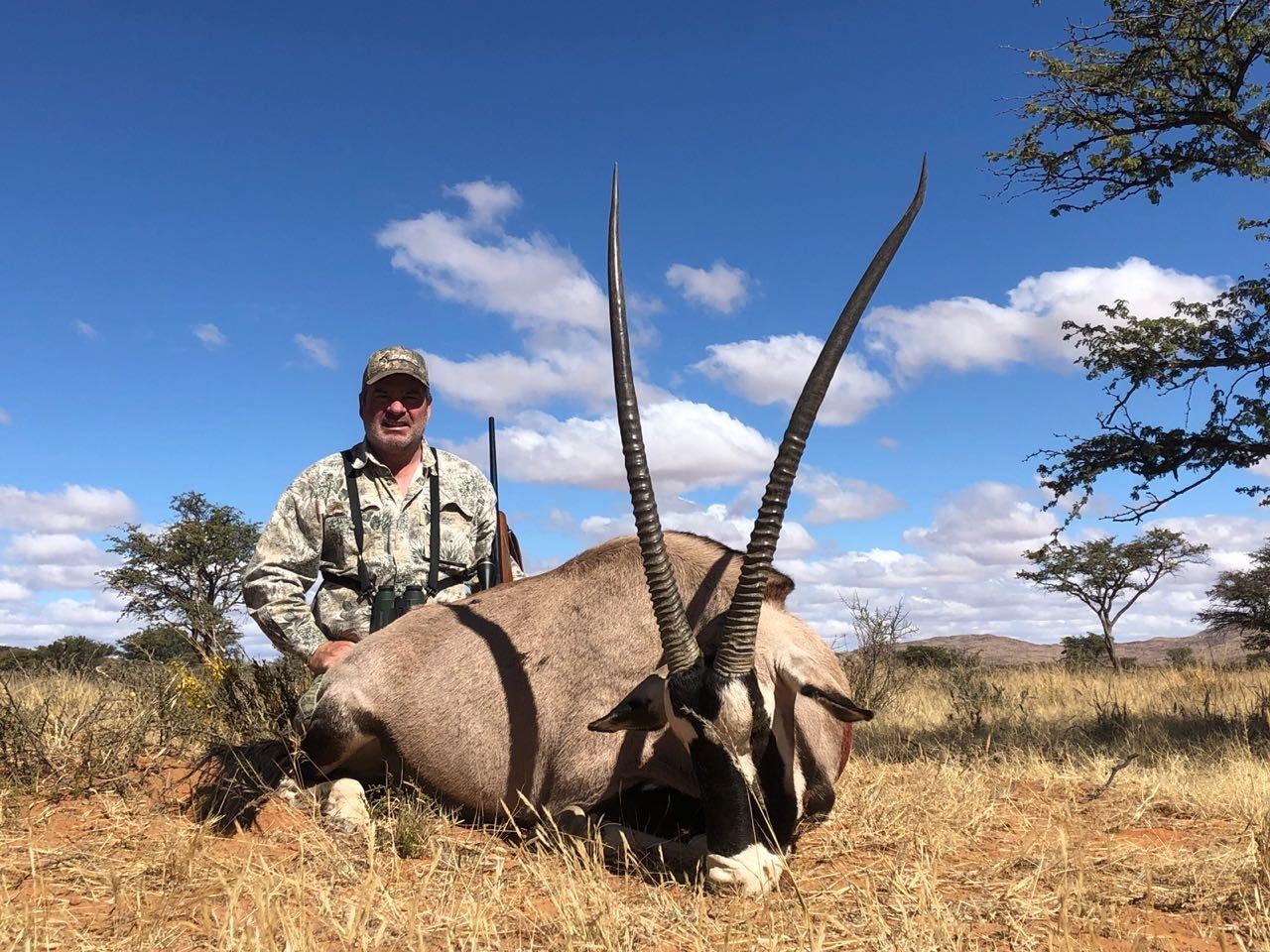 Hunt in die Northern Cape of South Africa, 2 x 1 guided for 2 (Two) to 4 (Four) Hunters. Included 1 x Gemsbuck and 1 x Common Blesbuck per Hunter. Method of take: rifle. Schedule hunt with Outfitter for 2019 or 2020. Included are lodge accommodations, meals, water, soft drinks, South African brand beer and wine, guide, trackers and skinners, daily laundry, trophy photography, skinning of animals and trophy handling up to time of dip and pack. Also includes up to a $500 taxidermy credit per hunter (15% on shoulder mounts/rugs, 10% on European Mounts) from Woods and Water Taxidermy in Conroe, Texas.