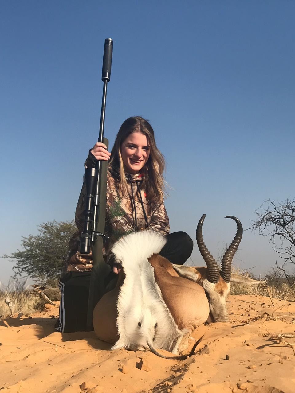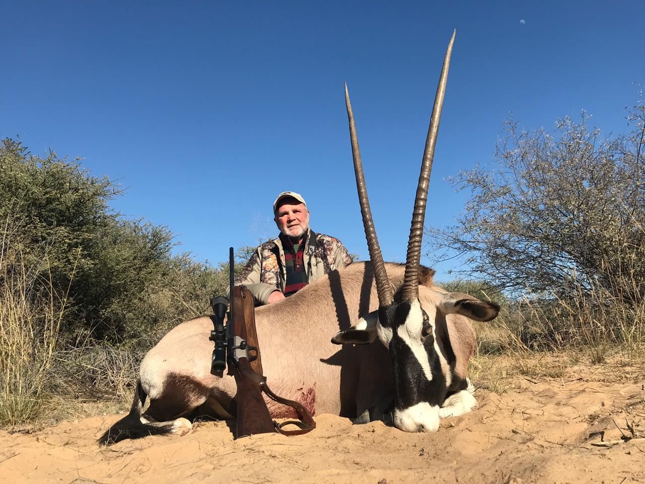 8 Day South African Kalahari Plains Game Hunt for two hunters. Hunt the Kalahari region on this, 1x1 guided, safari for two hunters, that includes trophy fees for Gemsbuck, Blue Wildebeest, Blesbuck & Springbuck for each hunter, donated by Frikkie Du Toit Safaris. Method of take is hunters' choice except muzzle loaders. Schedule hunt with outfitter for open dates in 2019/2020. Included are luxury lodge accommodations, meals, guide service and field prep. Additional hunters cost $350/day; observers $200/day. Not included are any before/after hunt expenses, dipping, packaging/shipping of trophies and gratuities. Arrival/departure point is Johannesburg OR Tambo Int airport.