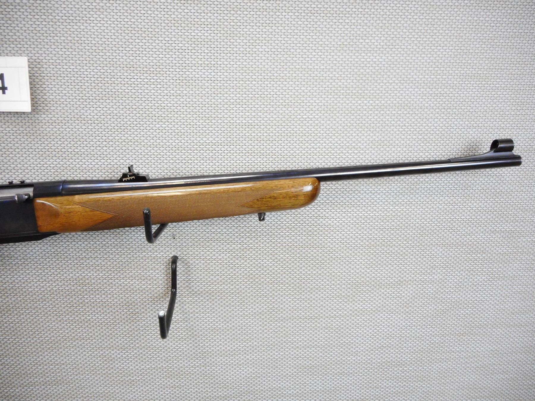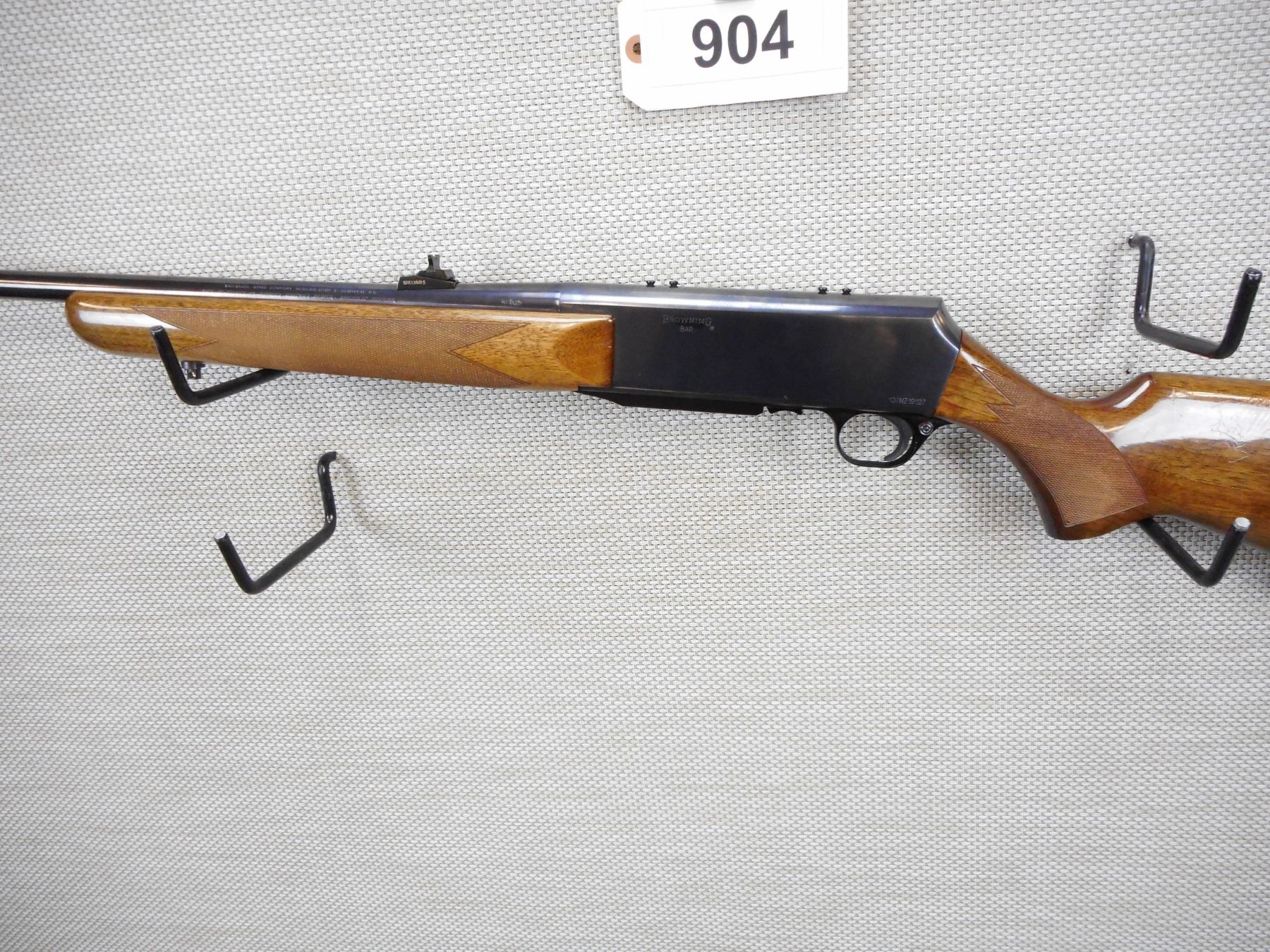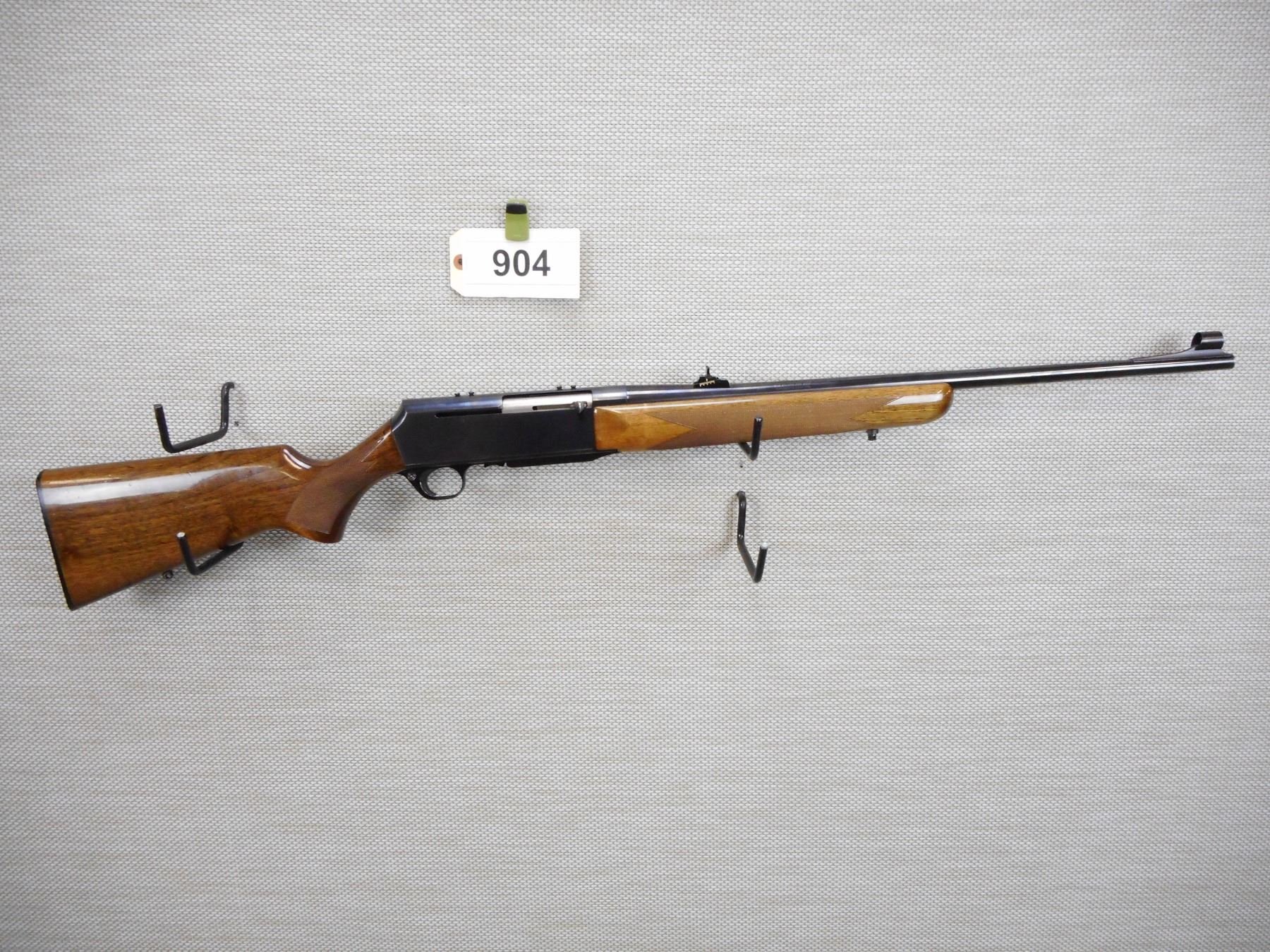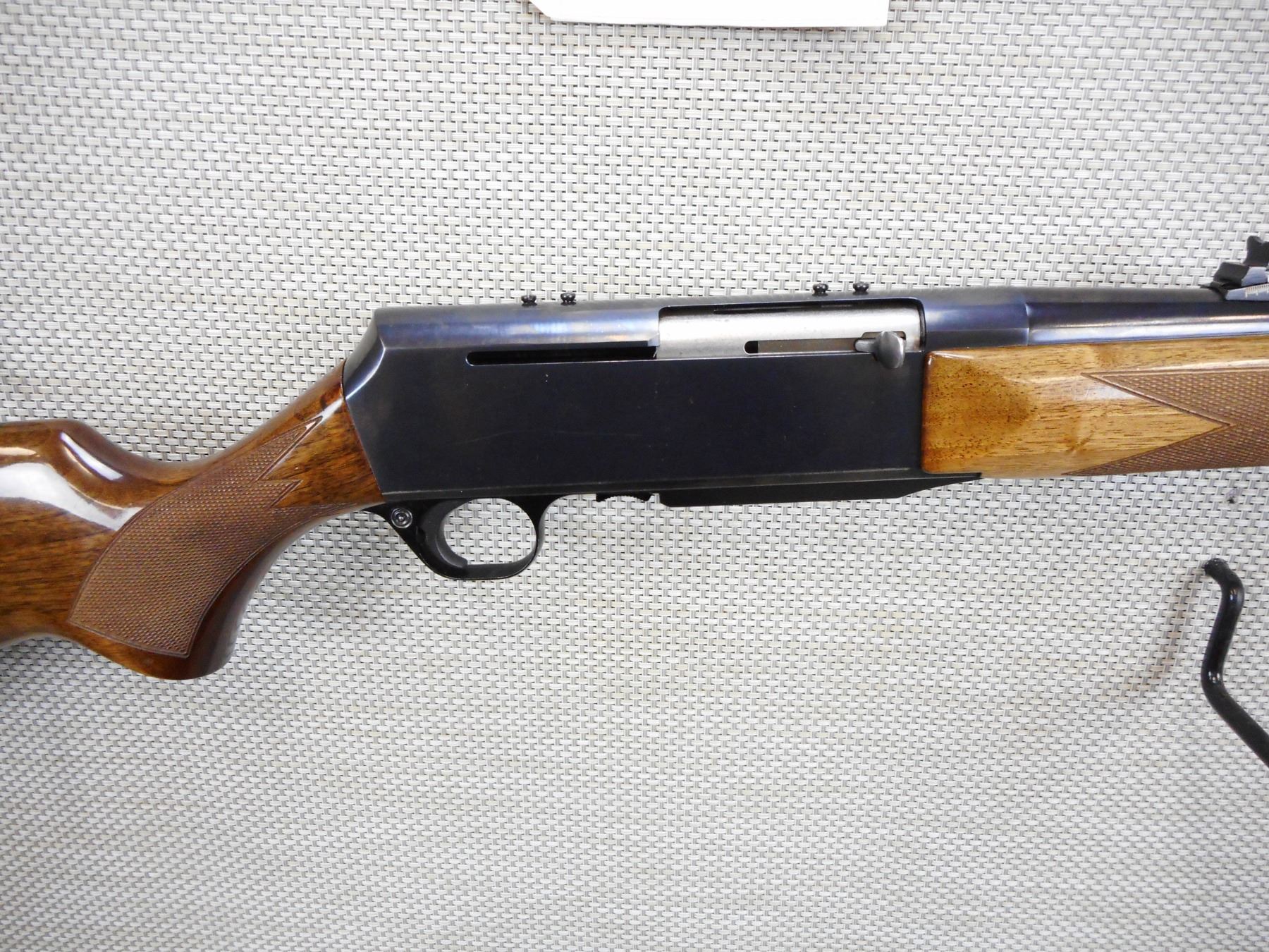 BROWNING , BAR , 308 WIN , COMES WITH MAGAZINE, BORE IS EXCELLENT, HOODED FRONT AND ADJUSTABLE REAR SIGHT, RECEIVER IS DRILLED AND TAPPED FOR SCOPE MOUNTS, SHOWS SOME HANDLING MARKS, CHECKERED FOREND WITH SEMI PISTOL GRIP BUTT STOCK, SLING SWIVEL LOOPS, PLASTIC BUTT PLATE , BARREL LENGTH: 23" , ACTION: SEMI AUTOMATIC RIFLE , STOCK # 8909 , SERIAL # 137NZ19127 , CONDITION: 8/10 , CLASS: CANADIAN NON RESTRICTED CLASS