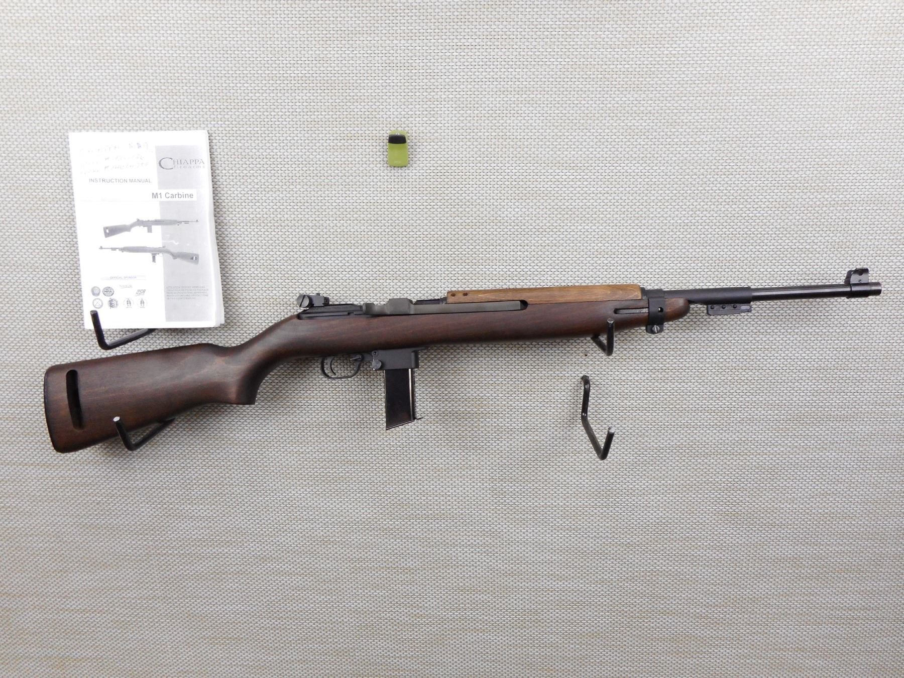 CHIAPPA , M1-9 CARBINE , 9MM LUGER , COMES WITH MAGAZINE AND MANUAL, BORE IS EXCELLENT, HAS ADJUSTABLE REAR PEEP AND FRONT BLADE SIGHTS, METAL BUTT PLATE, SLING LOOPS, OILED WOOD STOCK, BAYONET LUG , BARREL LENGTH: 482MM , ACTION: RIFLE / SEMI-AUTOMATIC HANDGUN , STOCK # 8996 , SERIAL # 14G04788 , CONDITION: 8/10 , CLASS: CANADIAN NON RESTRICTED CLASS