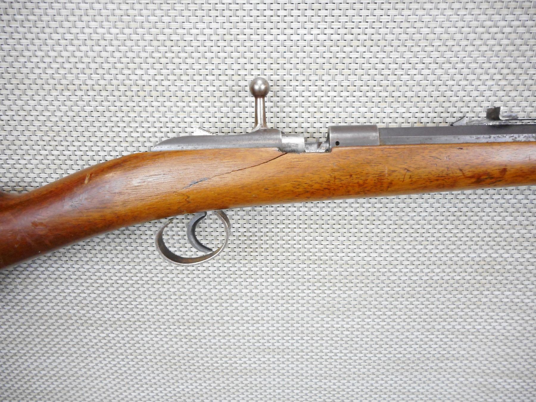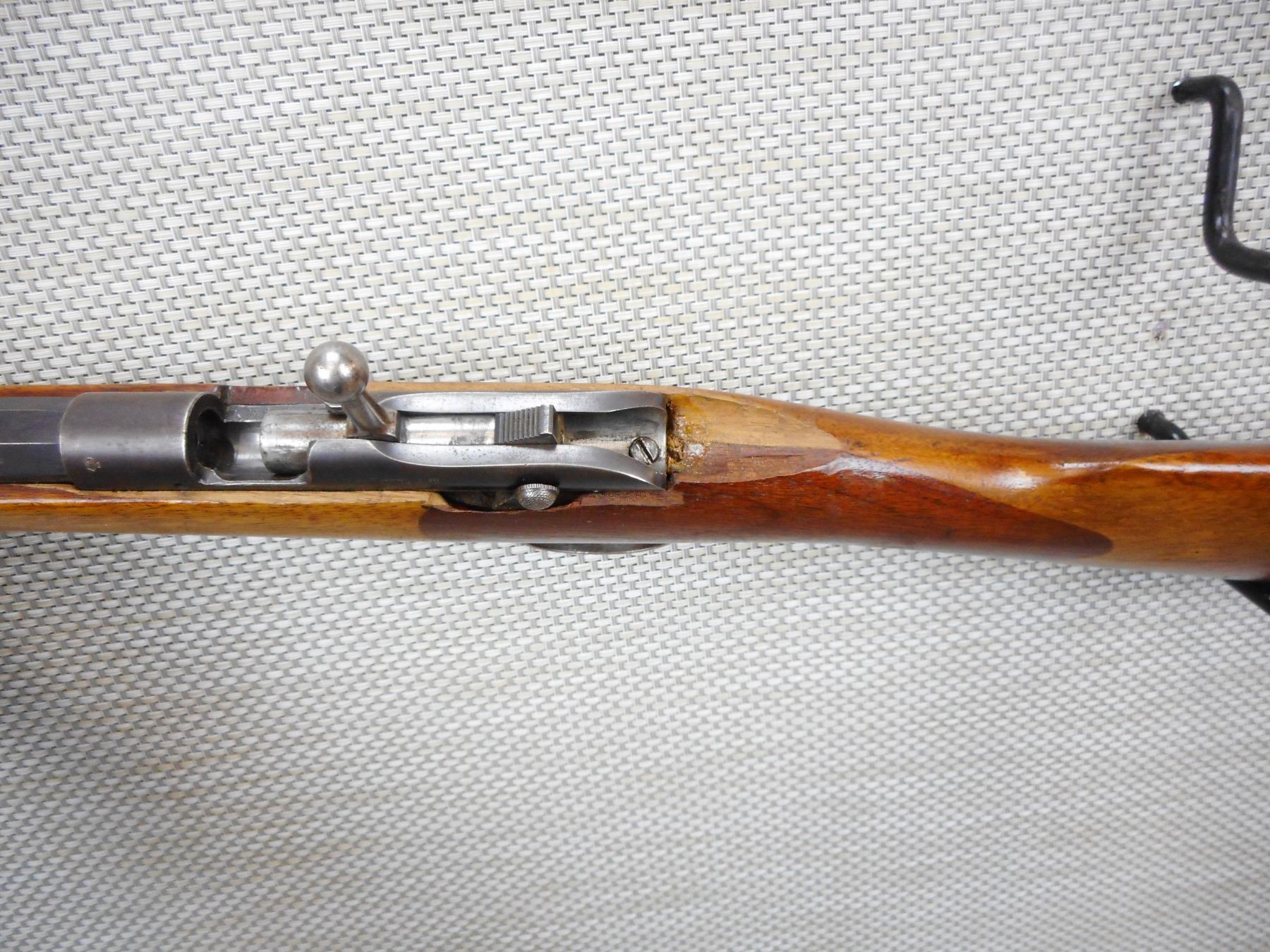 HUSQVARNA, MODEL: SAKRAT, CALIBER 22 LR, BLADE FONT AND ADJUSTABLE REAR SIGHT, BOLT ACTION SINGLE SHOT, SLING LOOPS, METAL BUTT PLATE, OCTAGONAL BARREL, BORE IS GOOD AND BRIGHT, THERE IS A CHUNK MISSING IN THE BUTT STOCK NEAR THE SAFETY, AND A FEW CRACKS,SERIAL # 46143