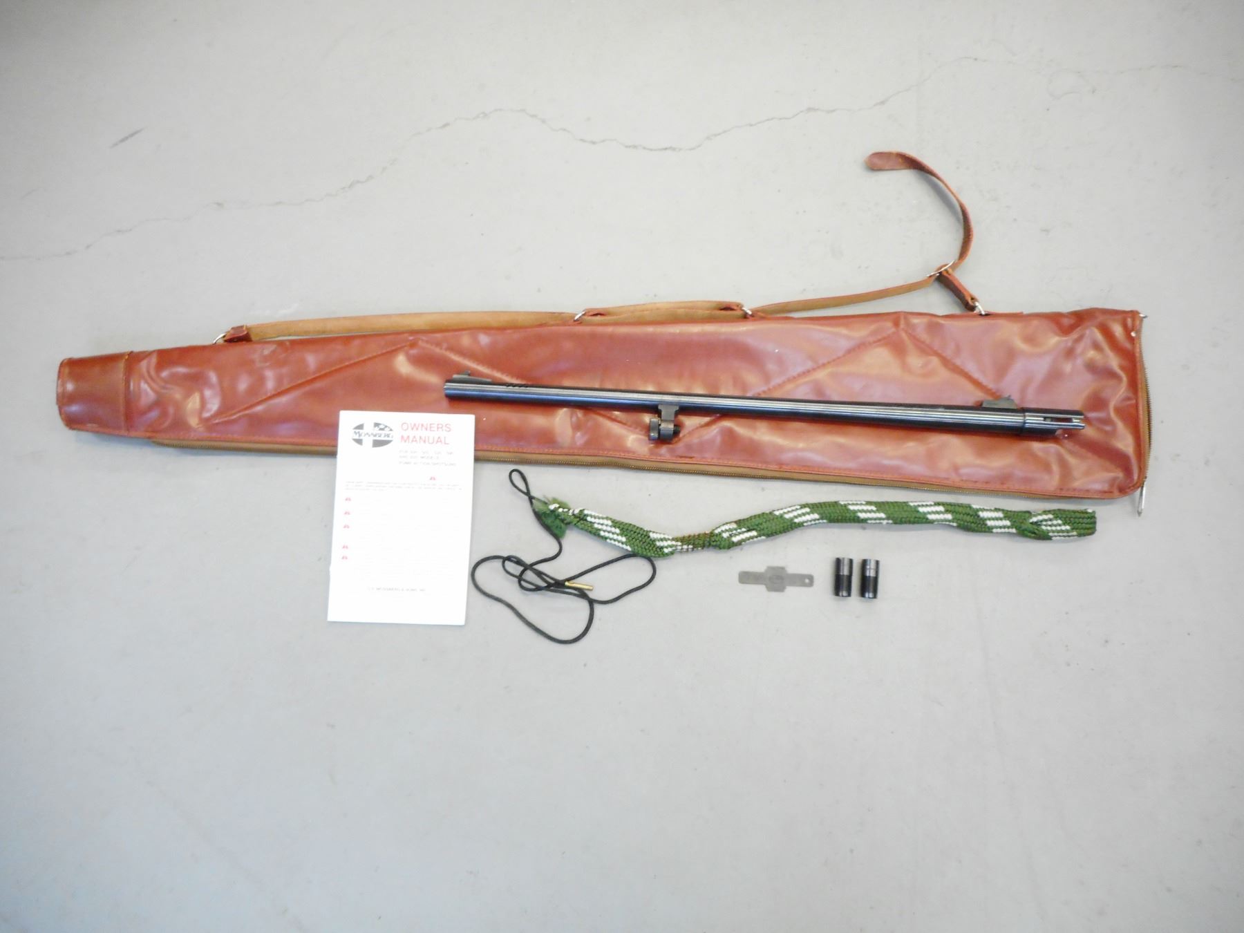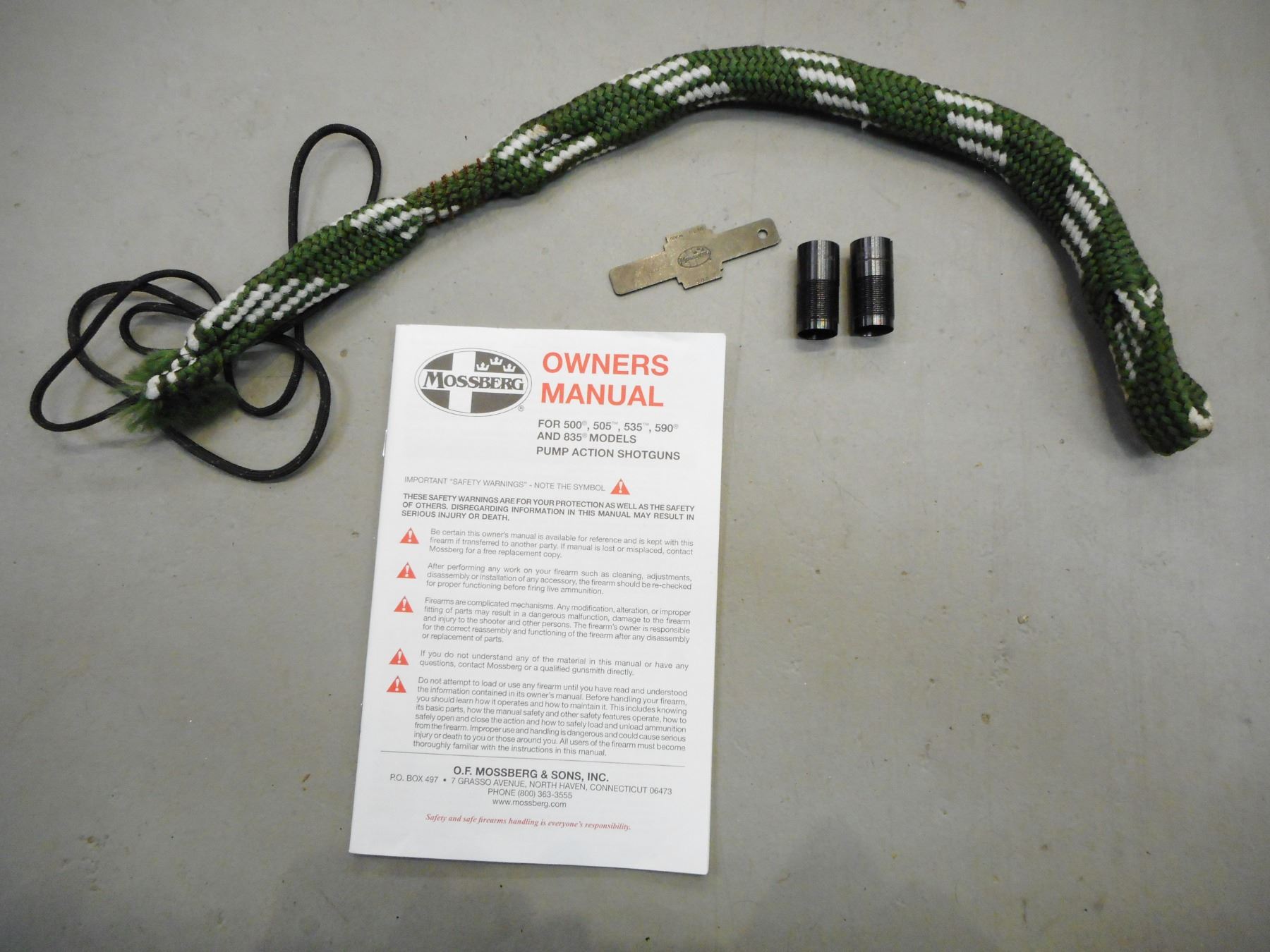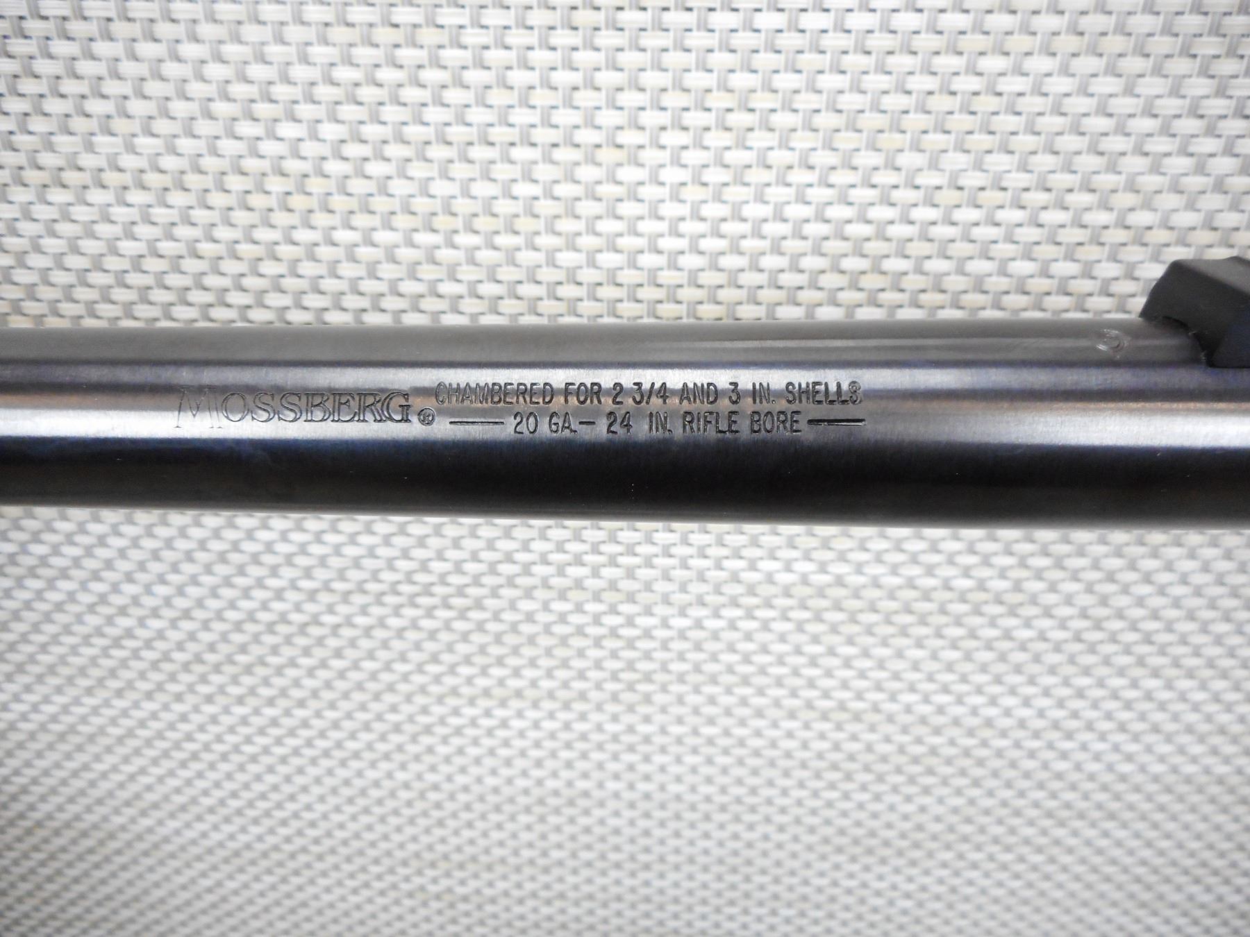 MOSSBERG , MODEL 500, CALIBER 20 GA X 3", COMES WITH 2ND BARREL THAT IS 20GA X 3" IN RIFLED BORE, THE 2ND BARREL IS 24" HAS RAMP FRONT FRONT AND A WILLIAMS BACK SIGHT, THE BORE IS GOOD, THE FIREARM HAS A 22" BARREL WITH FULLY VENTED RIB, FRONT PEARL AND MID BEAD SIGHTS, CHECKERED WOOD, RUBBER VENTED RECOIL PAD, BORE IS VERY GOOD, ALSO HAS 3 CHOKES, SNAKE, SOFT CASE, AND A MANUAL, CONDITION 8/10