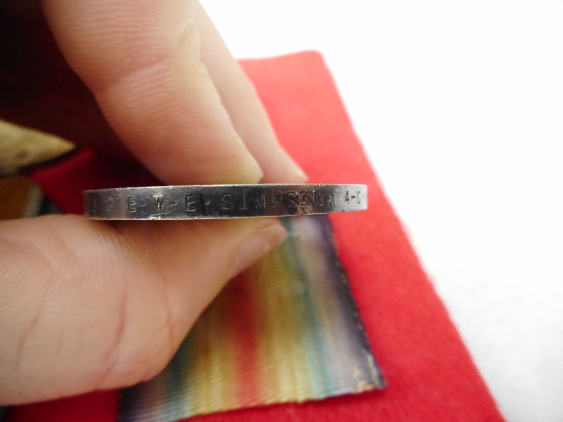 WWI PTE W.E. SIMPSON MEDALS , ATTESTED TO THE 81ST BATTALION C.E.F., WILLIAM EDWARD SIMPSON DOB 28/02/1890 WAS OF THE 4TH CANADIAN MOUNTED RIFLES, MEDALS INCLUDES 1914-1918 BRITISH WAR MEDAL & 1914-1919 VICTORY MEDAL BOTH ENGRAVED 157688 PTE. W.E. SIMPSON 4-C.M.R., RIBBONS HAVE BEEN REVERSED