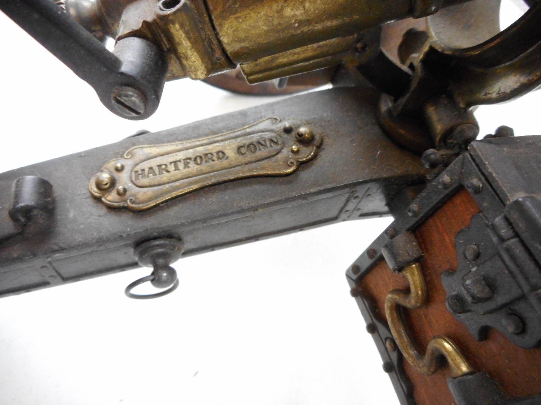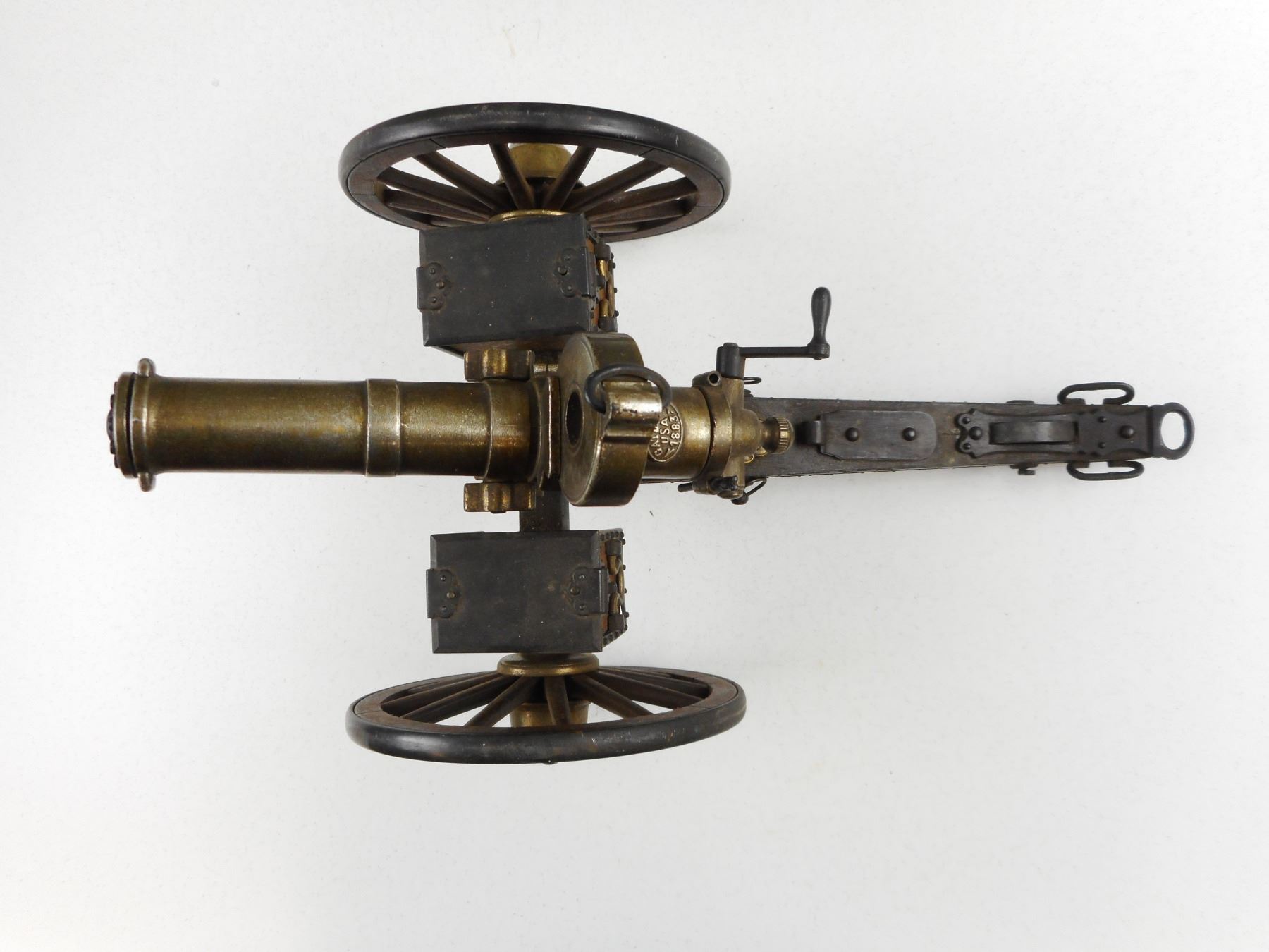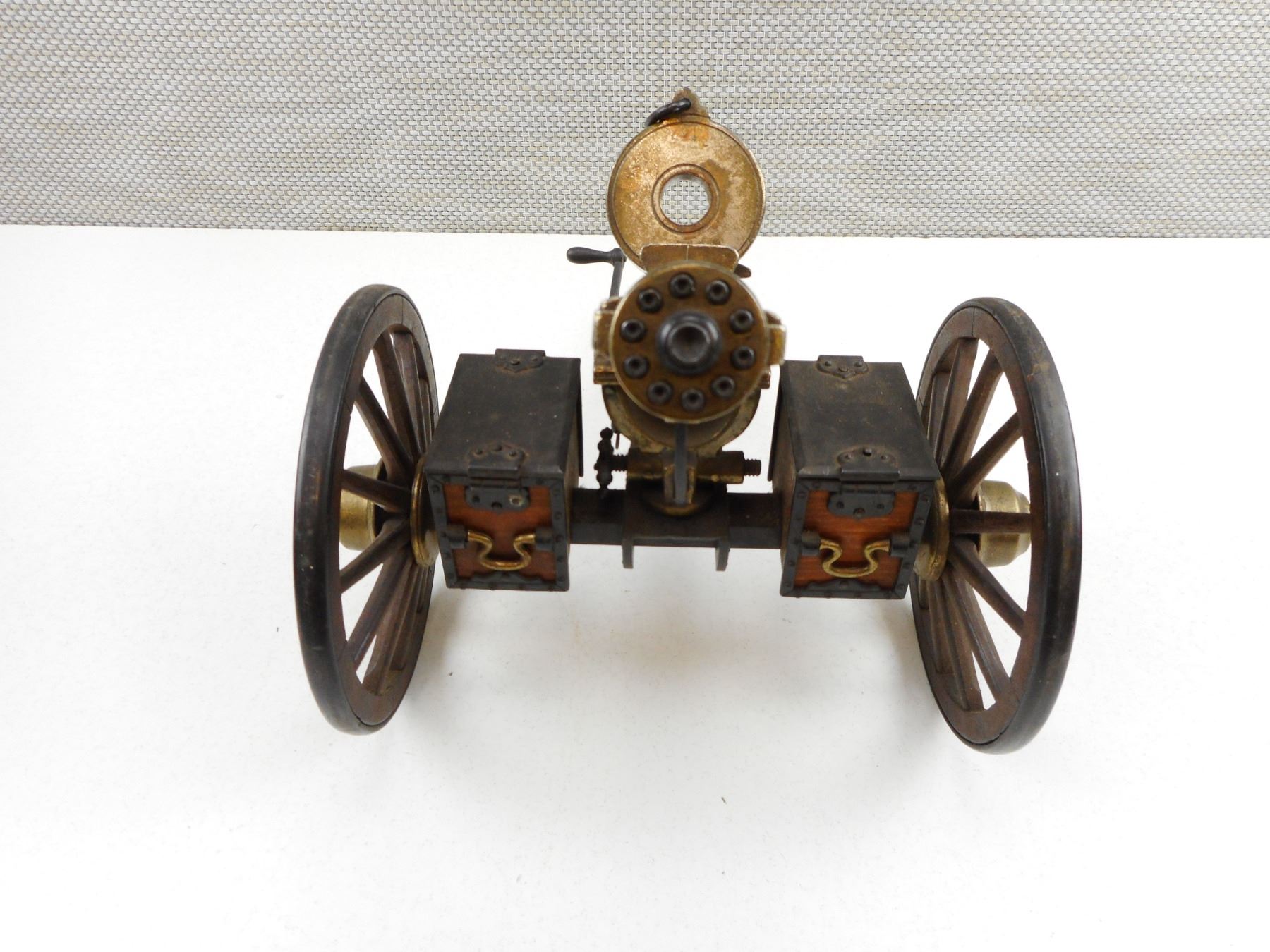 GATLING U.S.A. 1883 GUN , 7 1/2" BARREL WITH WHEELS, HARTFORD CONN.
