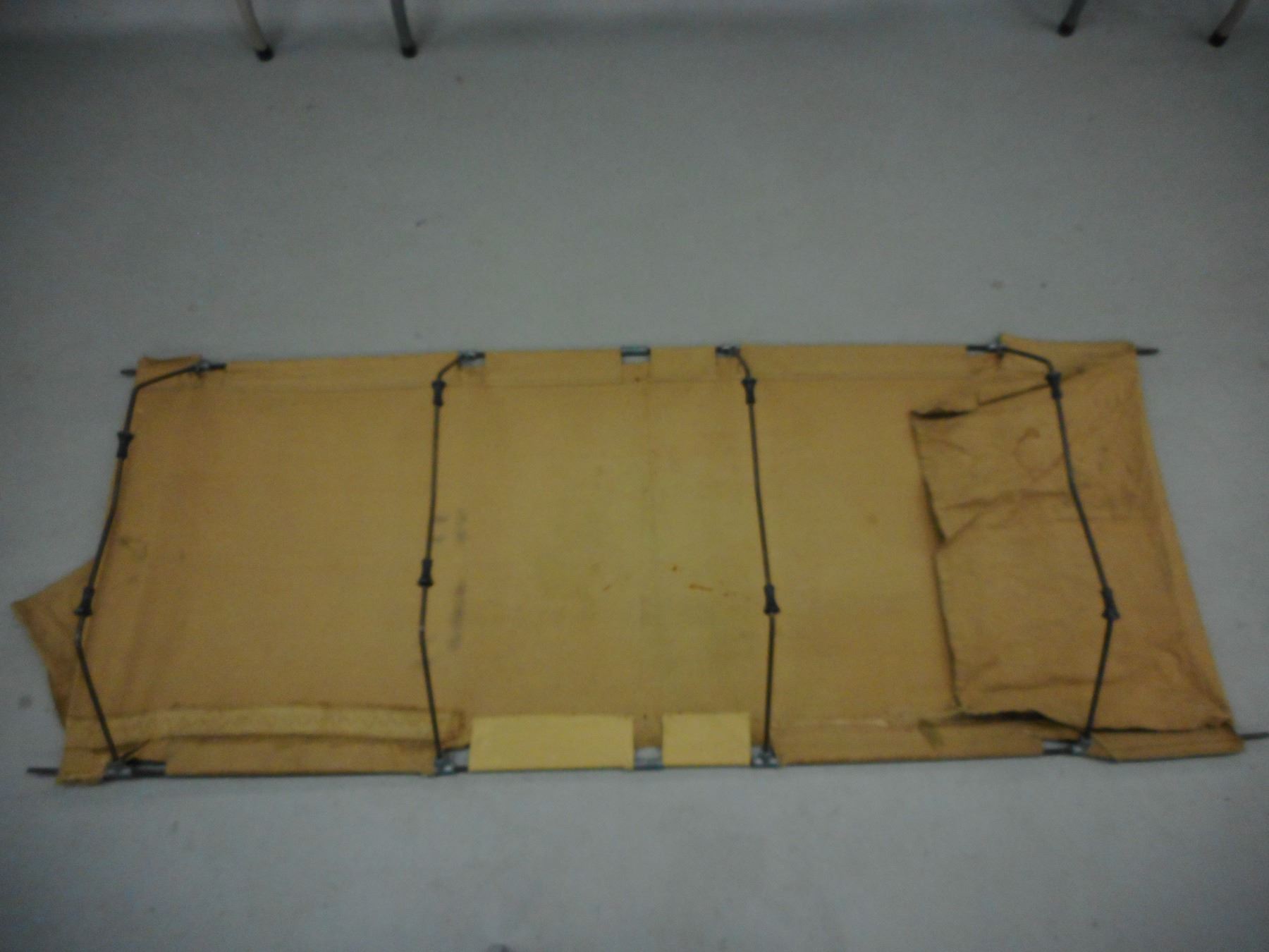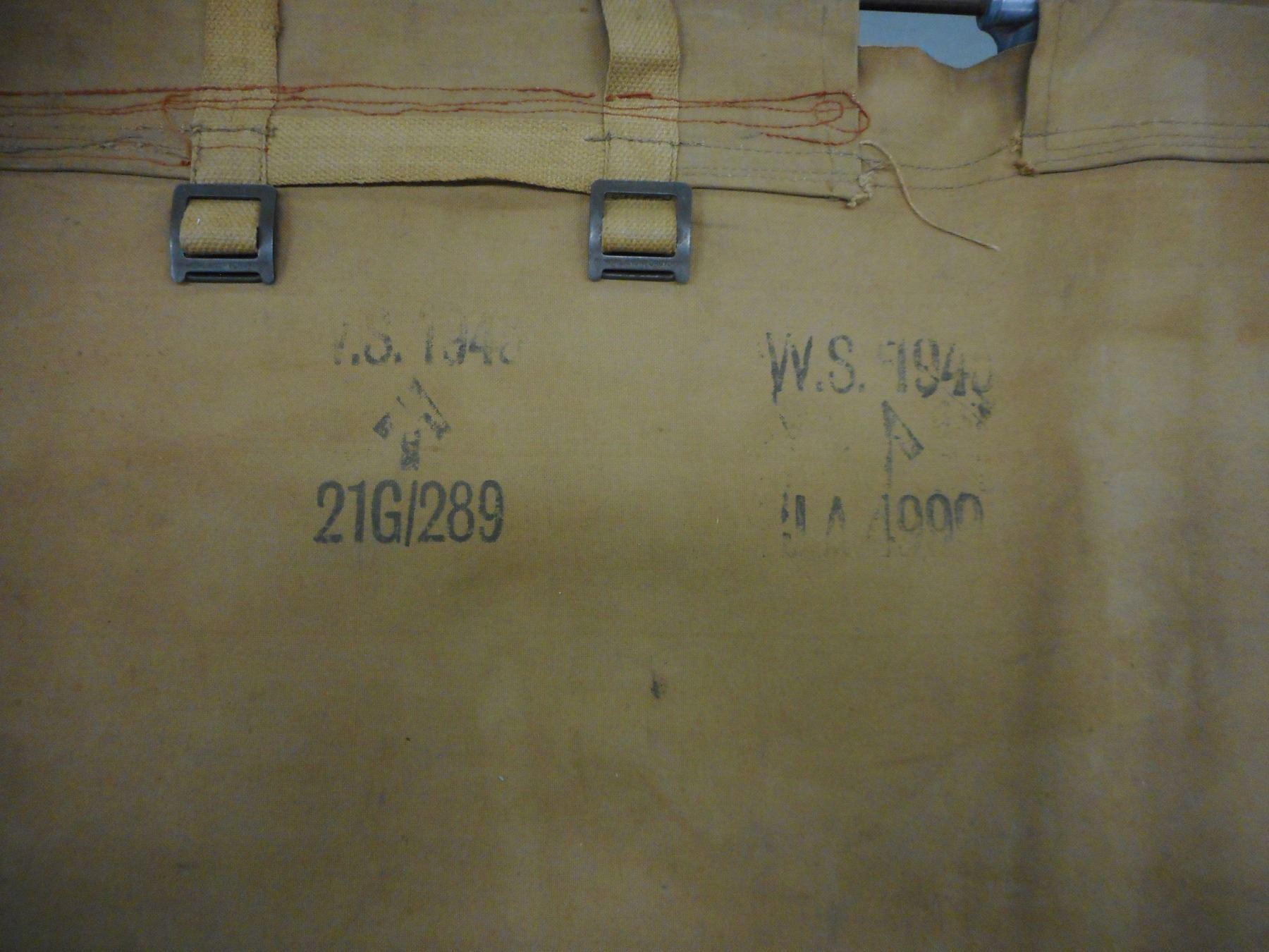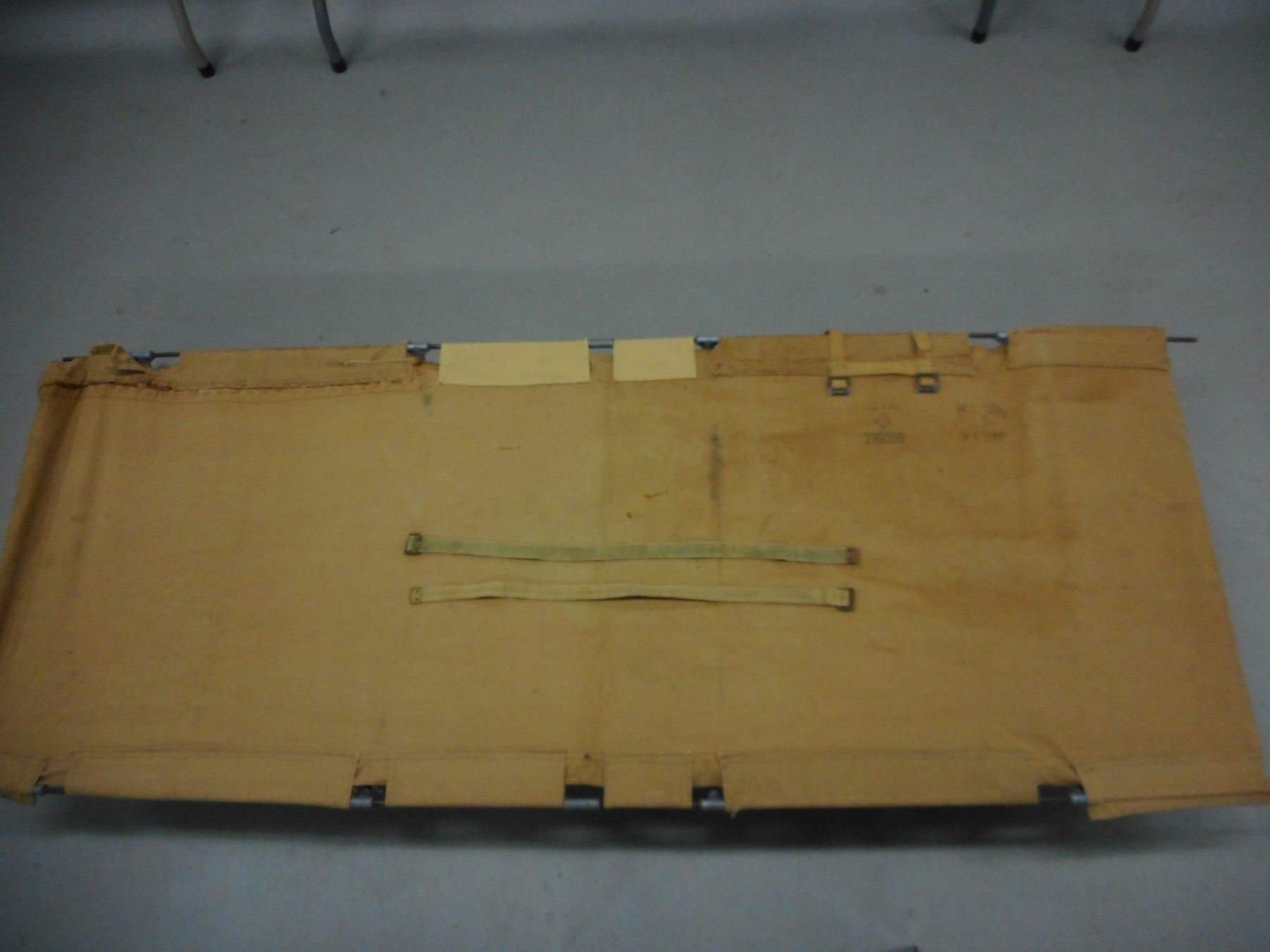 BRITISH WWII MILITARY CAMP BED , WITH BROAD ARROW MARKED DATED 194_ INCLUDES (4) LEGS, WITH STRAPS