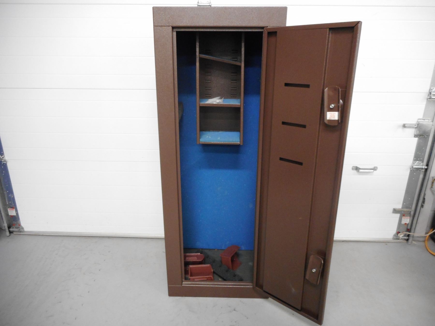 HMC GUN CABINET , COLOUR: BROWN, SIZE: 55 X 21 X 16", WITH KEYS