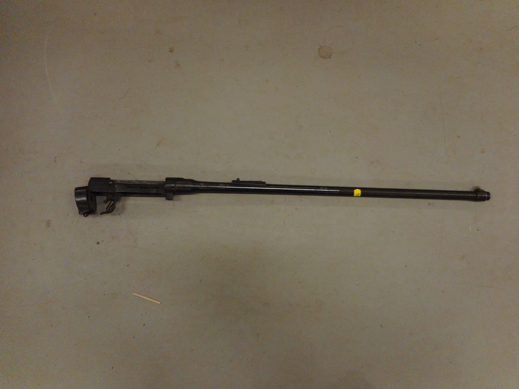 LEE ENFIELD PARTS/ BARREL , ASSORTED MILITARY MARKINGS & PROOF MARKS ON RECEIVER, RECEIVER AND BARREL SERIAL MARKS MATCH: 1173, CAL. 303, WITH FRONT SIGHT, PARTS MISSING IN REAR SIGHT, BARREL LENGTH 24" , PARTS GUN, NO OTHER INFORMATION AVAILABLE