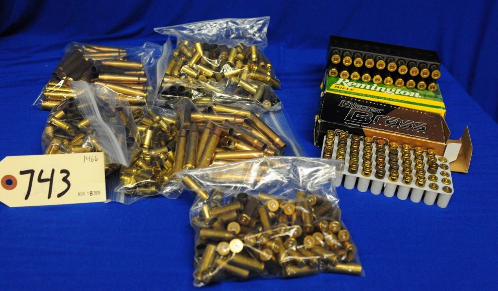 .92 kg of 8x57 used brass, .52 kg of 9mm used brass, .36 kg of 38spl used brass, .50 kg of used 40 S&W used brass, .16 kg of 357 mag used brass, roughly 50 pcs. of new 9mm brass, 20 pcs 220 swift brass once fired, 43 rnds 9mm reloads