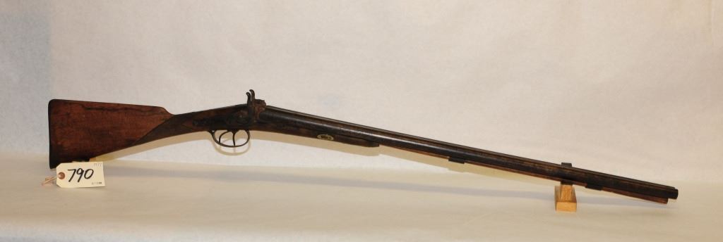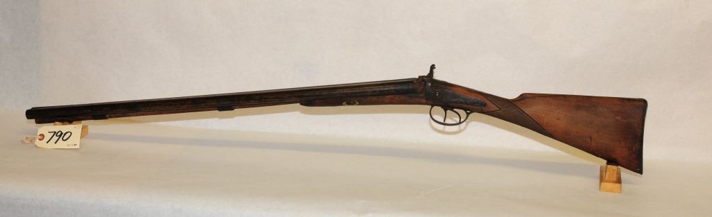 Antique, multi barrel, 12 ga., 30" barrels, SN none, wood has a crack on left side from trigger gaurd to receiver, bluing is brown, bores are rusty and pitted