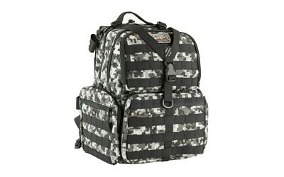 G-Outdoors, Inc., Tactical Range Backpack, Gray Digital Camo, Soft, Holds 3 Pistols, Padded Waist Strap and Internal Honeycomb Frame for Load Stability, Includes Pull Out Rain Cover, 4 Outside Zipper Pockets for Ammo and Other Accessories, MOLLE Webbing System for Adding Accessories