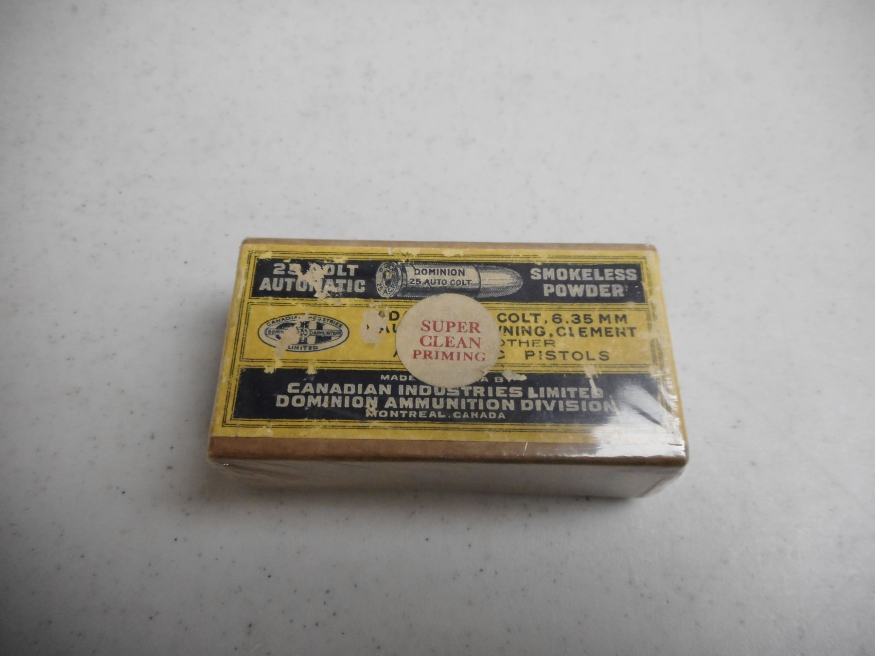 DOMINION 25 COLT AUTO AMMO , 50 RNDS 25 COLT AUTO, SUPER CLEAN PRIMING, CIL DOMINION