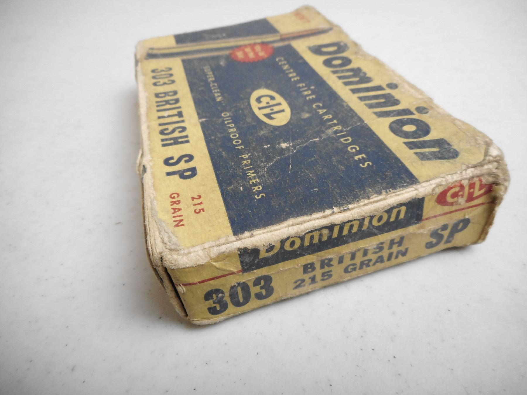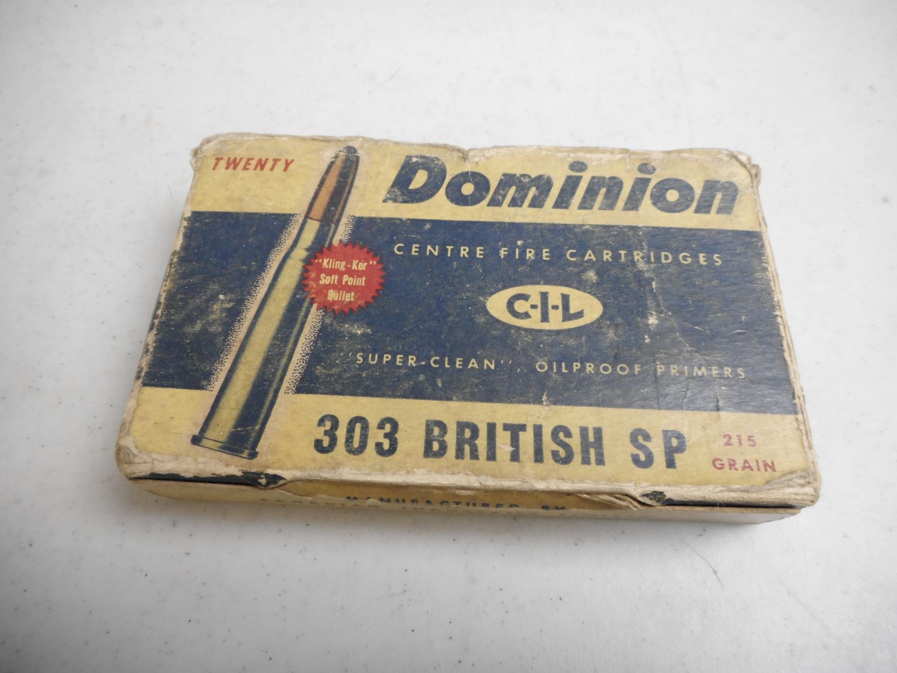 DOMINION 303 BRISTISH SP AMMO , 20 RNDS DOMINION 303 BRITISH AMMO IN VINTAGE DOMINION BOX