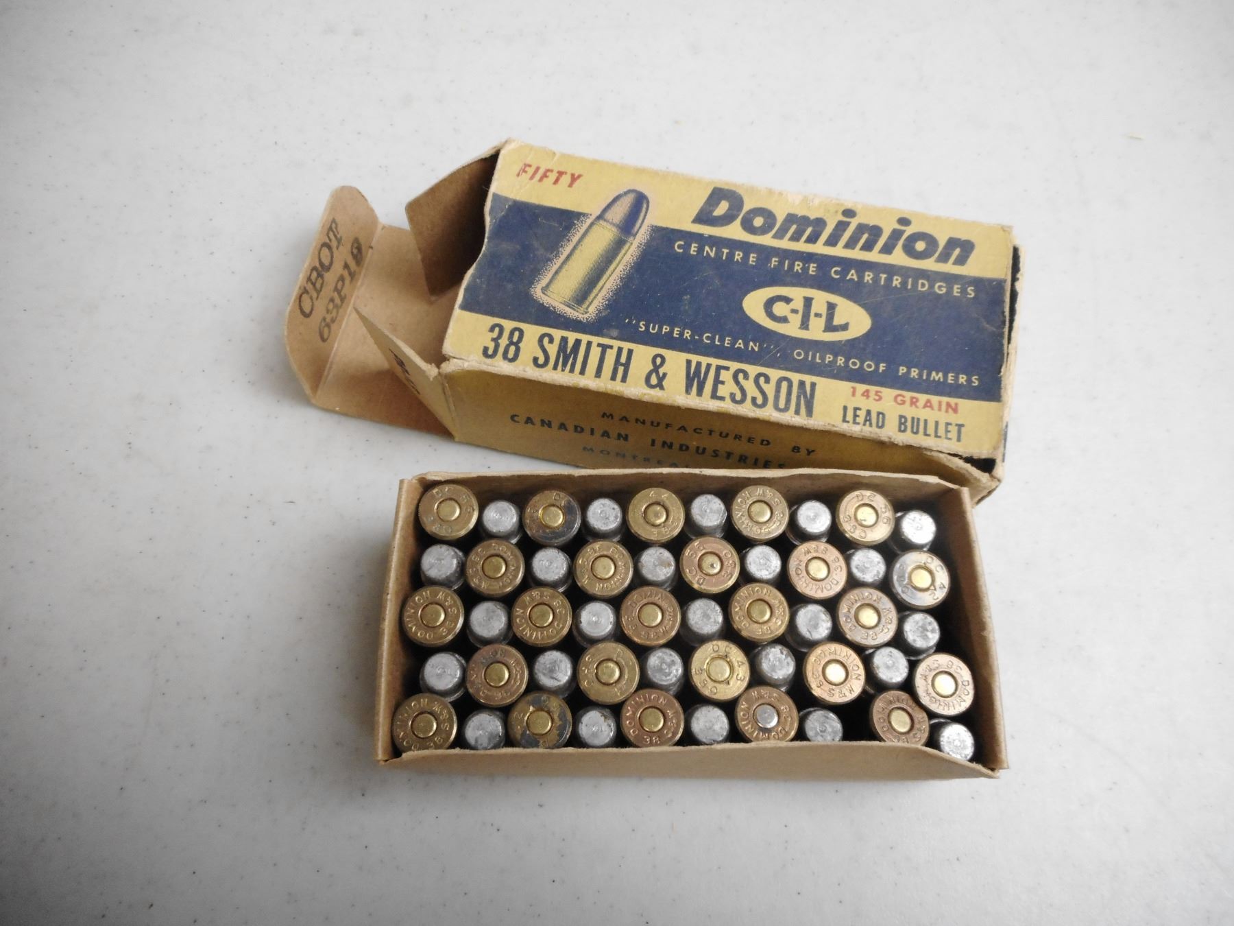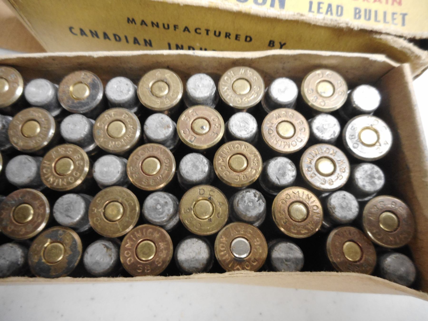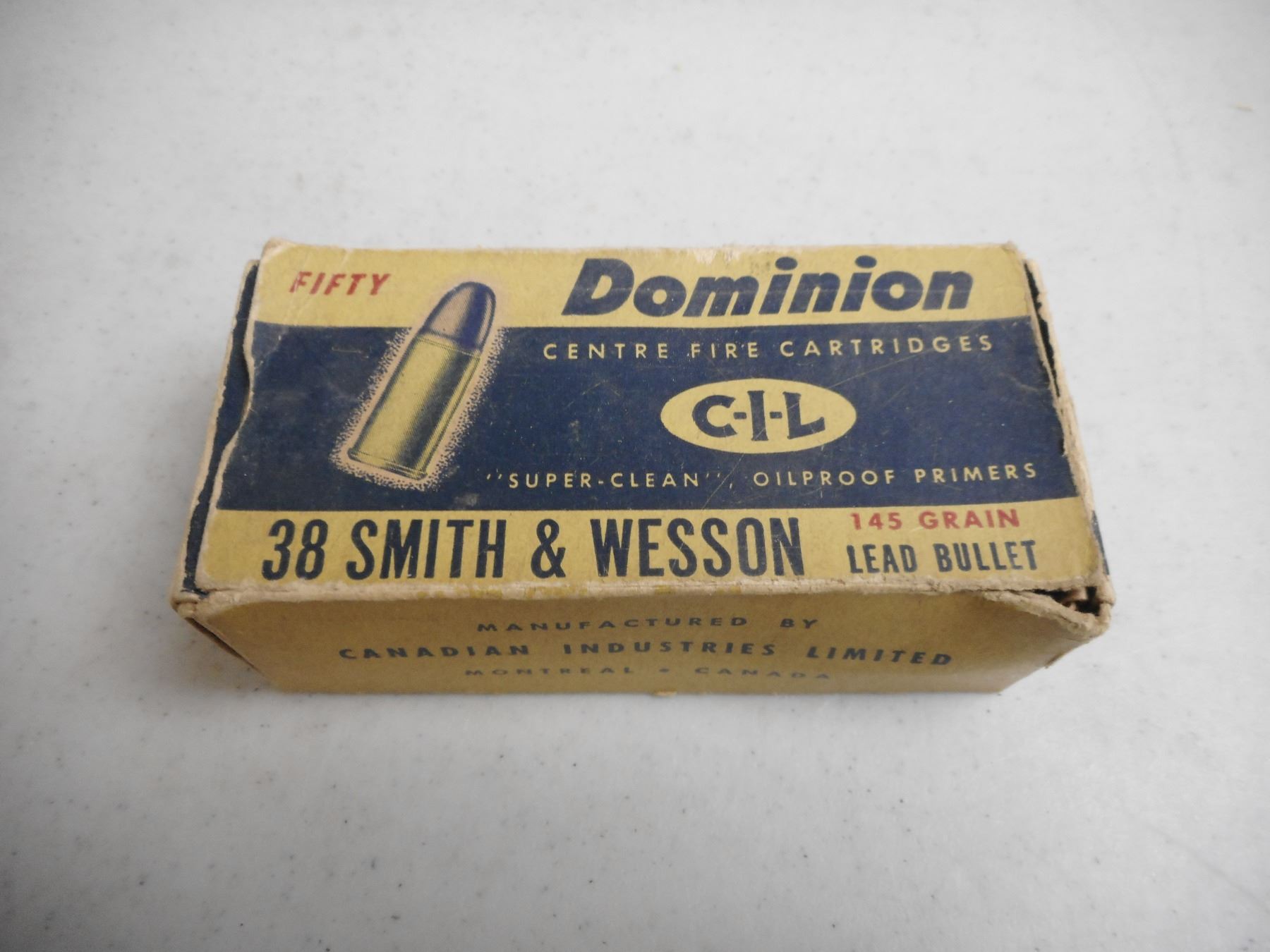 38 SMITH AND WESSON AMMO , 50 RNDS DOMINION 38 SMITH AND WESSON, 145 GRNS, IN VINTAGE DOMINION BOX