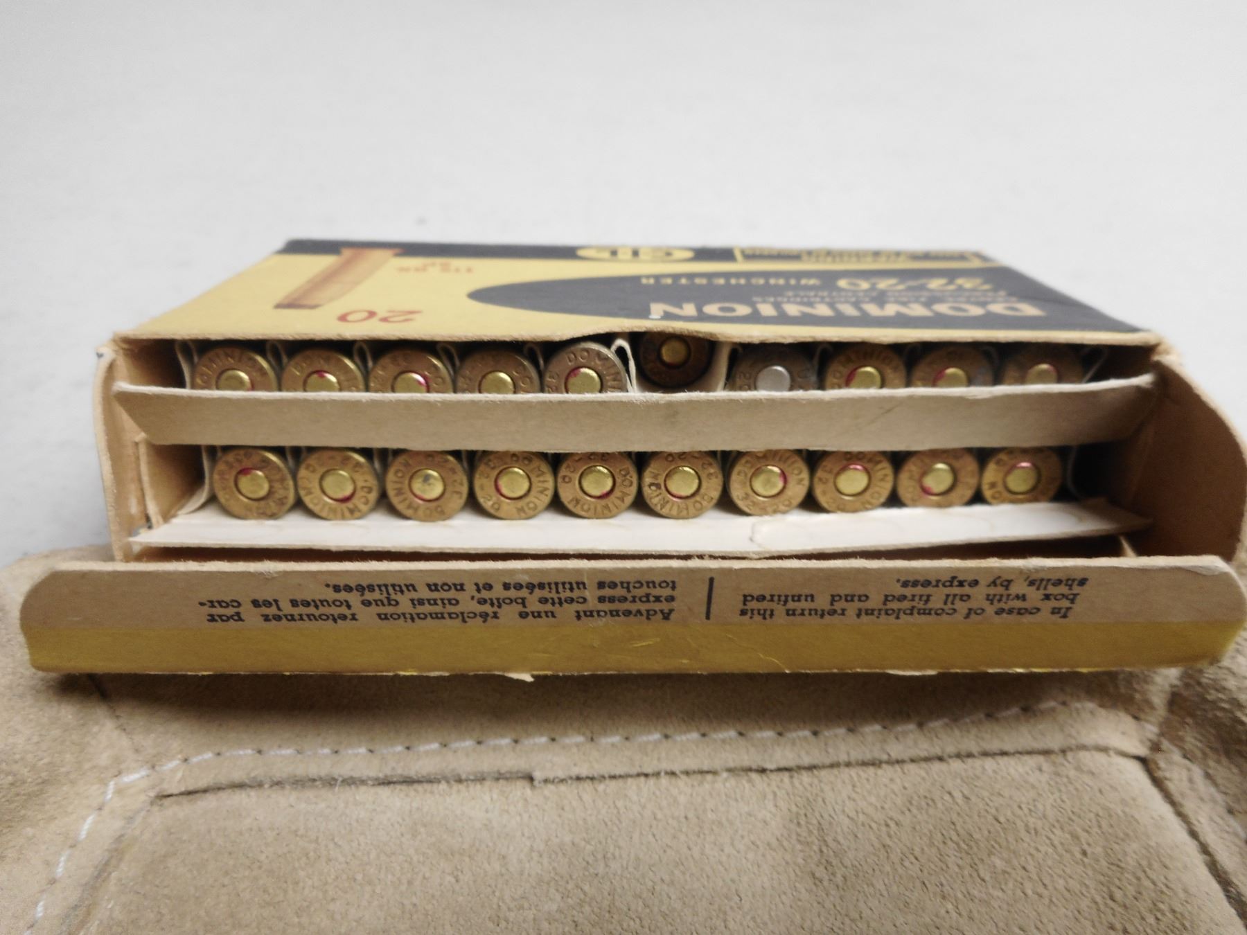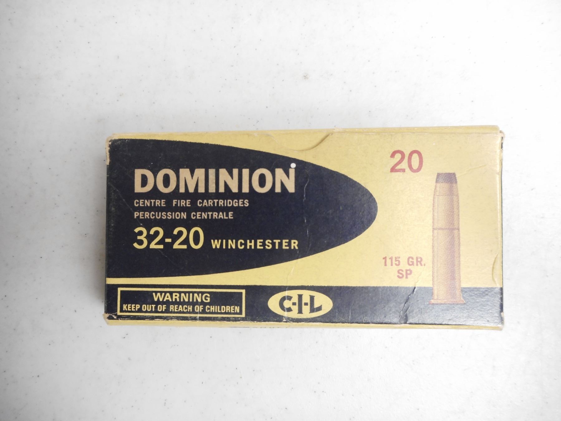 32-20 DOMINION WINCHESTER AMMO , 18 RNDS DOMINION 32-20 WINCHESTER AMMO 115 GRNS IN VINTAGE DOMINION BOX