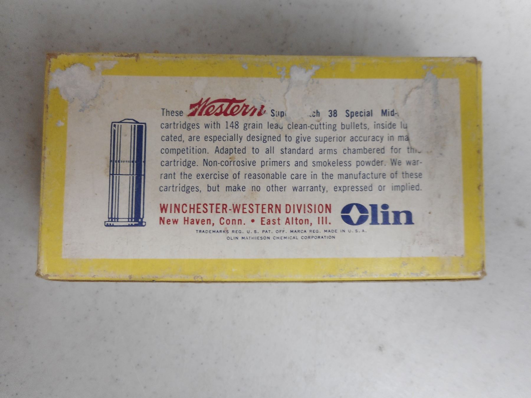 WESTERN SUPER X 38 SPECIAL AMMO , 38 RNDS WESTERN SUPER X 38 SPECIAL, 148 GRNS LEAD CLEAN-CUTTING AMMO IN VINTAGE WESTERN BOX