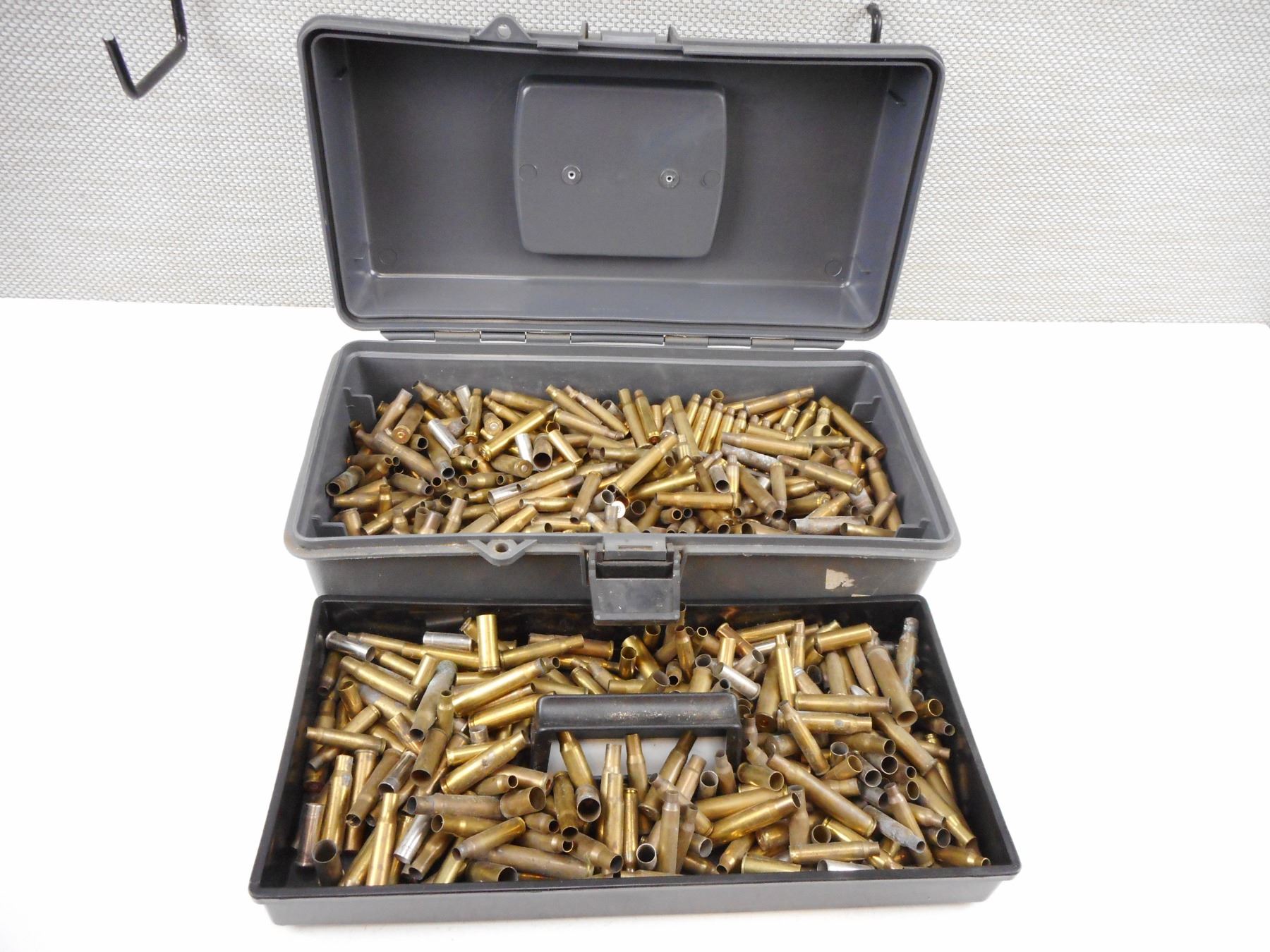 TOOL BOX OF ASSORTED BRASS , 16.2 LBS INCLUDES SOME PRIMED RNDS & UNPRIMED 30-30 WIN, 44 MAGNUM, 45-70 GOVT