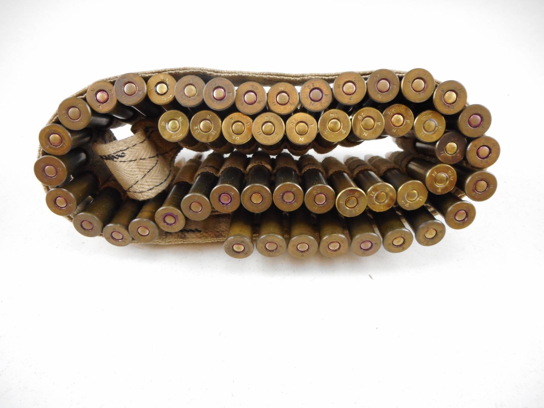 .303 BRITISH AMMO ON BELT , 50 RNDS HEAD STAMPED 48 - CANVAS BELT