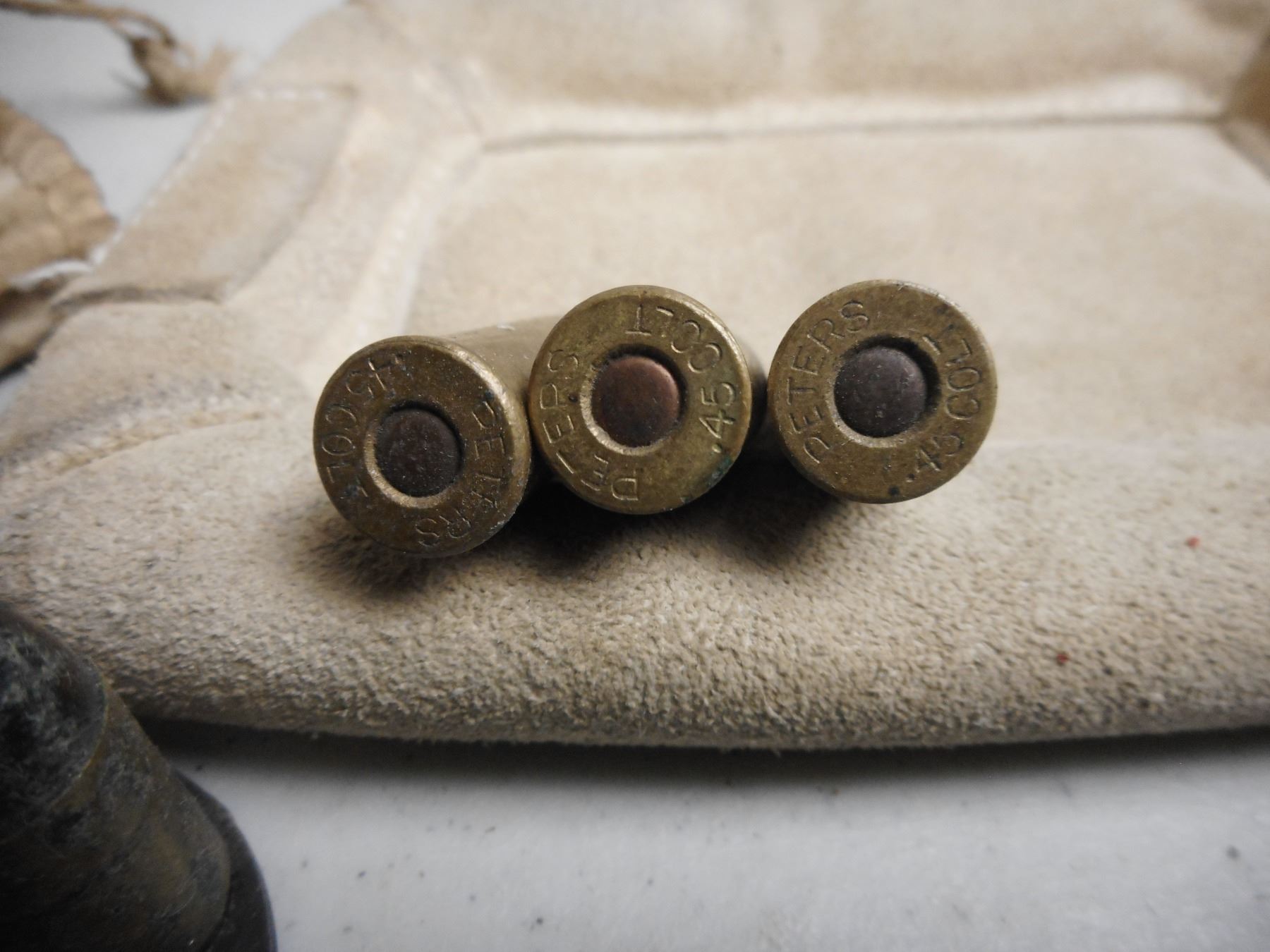 .45 COLT AMMO/455 WEBLEY AMMO , 16 RNDS .45 COLT/ 25 RNDS 455 WEBLEY IN LEATHER BAG