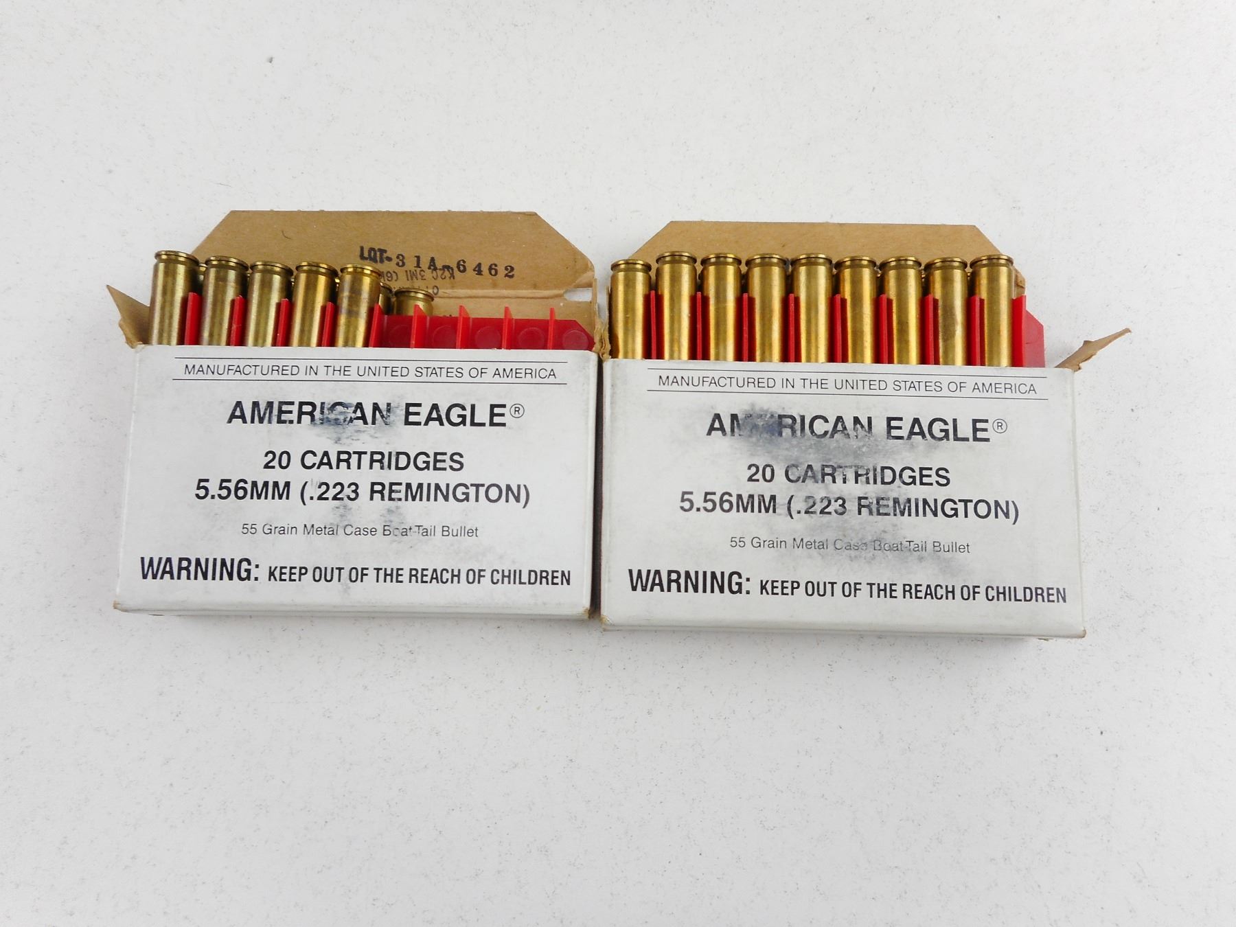 .2223 REMINGTON AMMO , 31 RNDS AMERICAN EAGLE .223 REMINGTON 55 GRNS METAL CASE BOAT TAIL BULLET