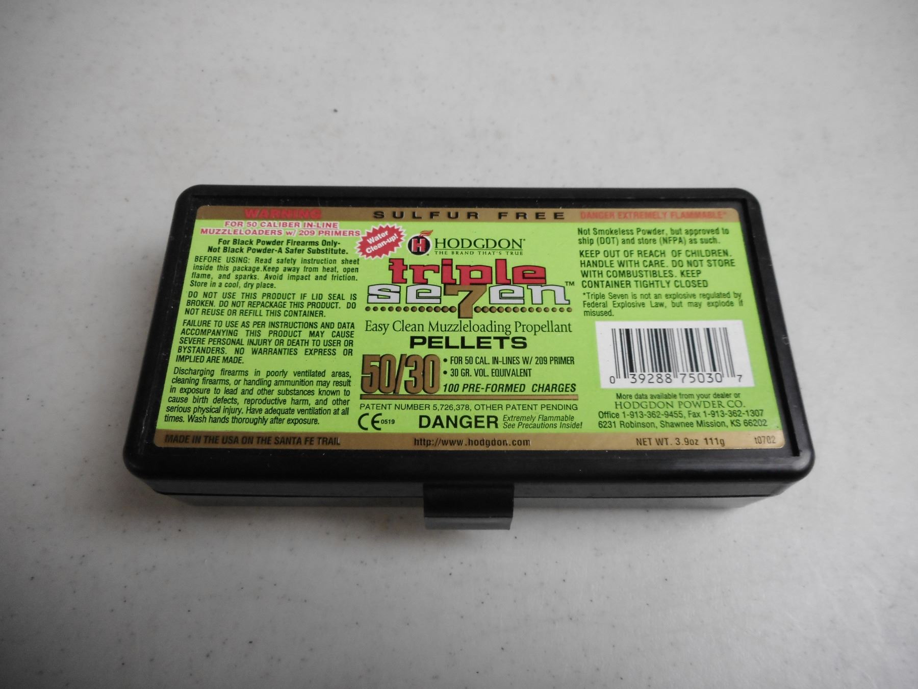 TRIPLE SEVEN PELLETS 30/50 CAL. AMMO , 92 RNDS 50/30 CAL. PELLETS FOR 50 CAL. IN-LINES W/209 PRIMER. 30 GRNS VOL. EQUIVALENT