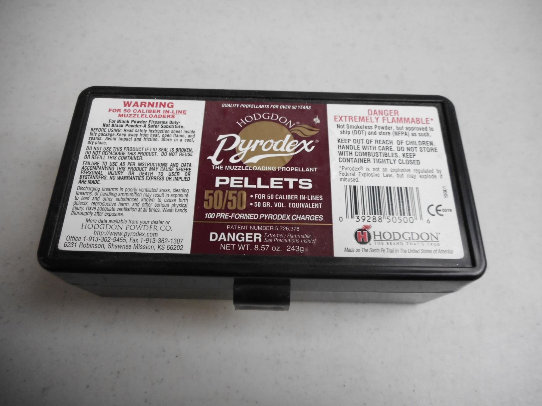 PYRODEX PELLETS 50/50 CAL. PELLETS , 94 RNDS PYRODEX MUZZLE LOADING PROPELLANT. .50 CALIBER IN LINES, 50 GRNS VOL. EQUIVALENT PELLETS