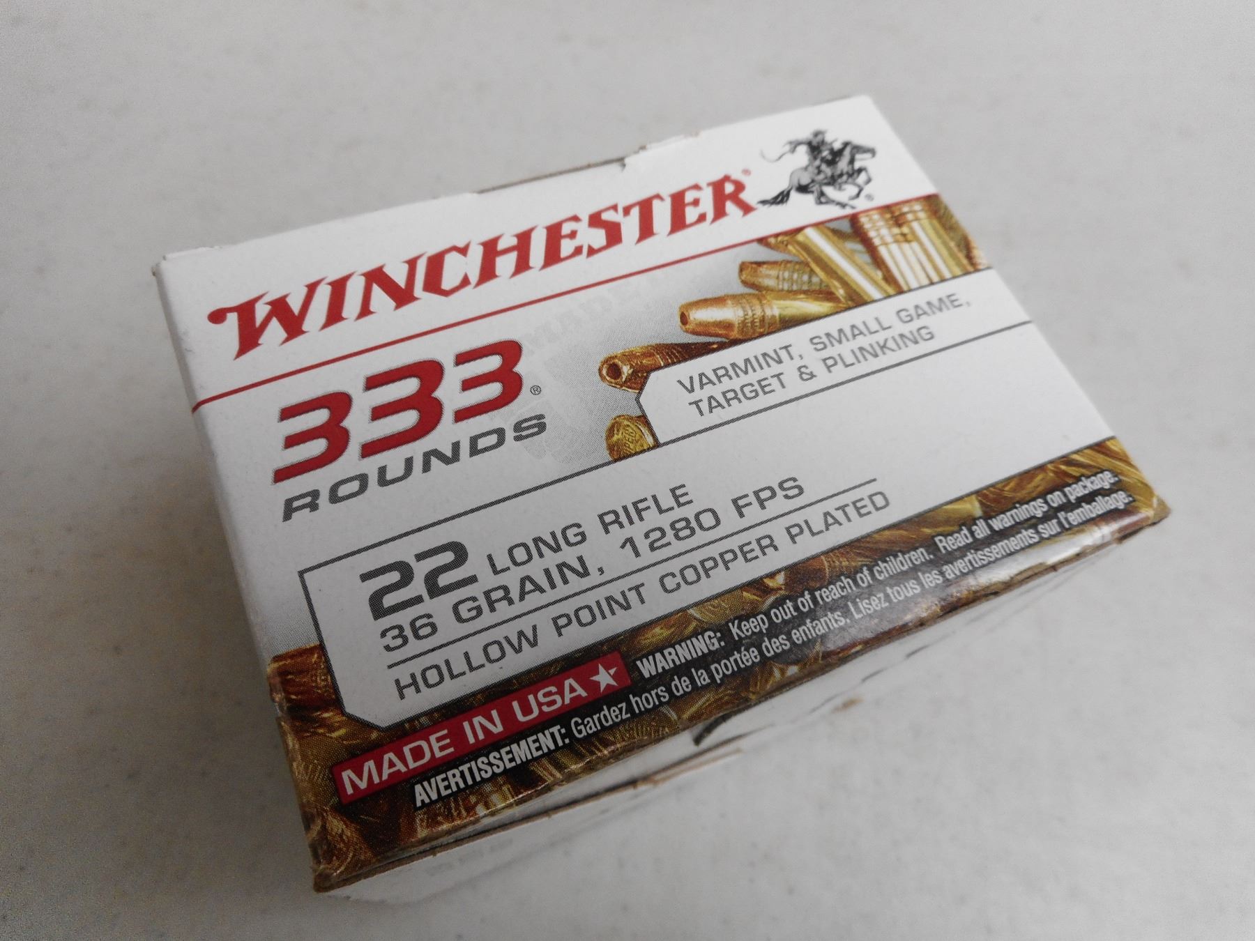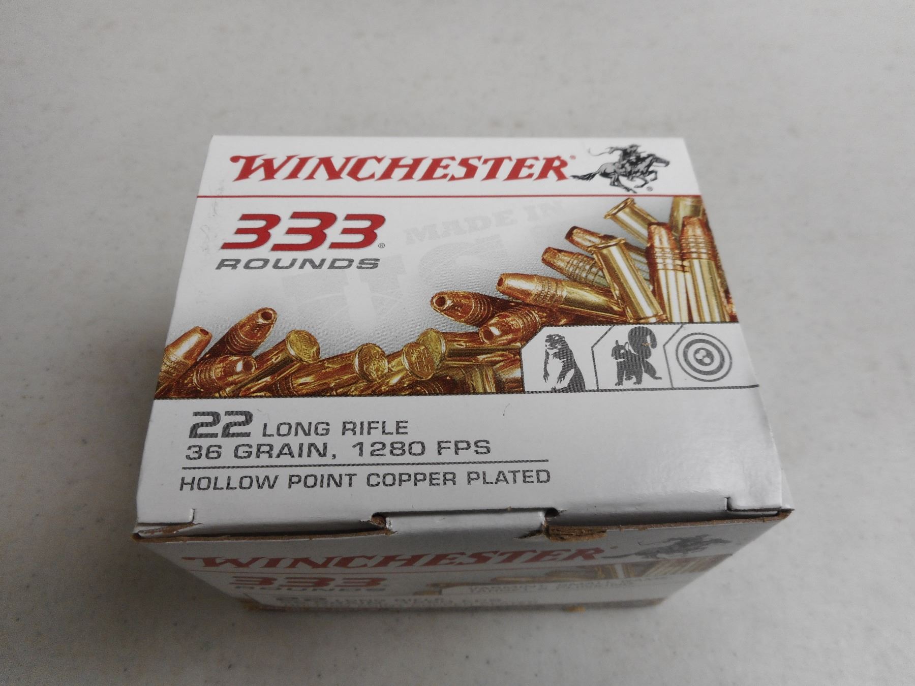 WINCHESTER 22 LR AMMO , 333 RNDS 22 LR, 36 GRNS, 1280 FPS, HOLLOW POINT COPPER PLATED AMMO