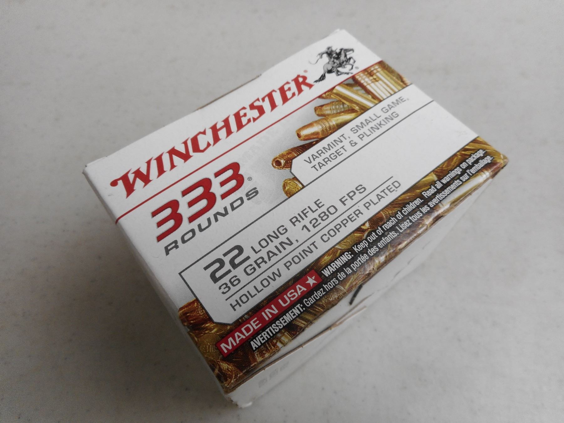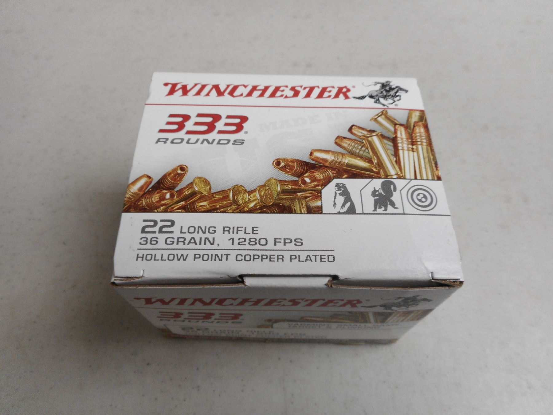 WINCHESTER 22 LR AMMO , 333 RNDS 22 LR, 36 GRNS, 1280 FPS, HOLLOW POINT COPPER PLATED AMMO