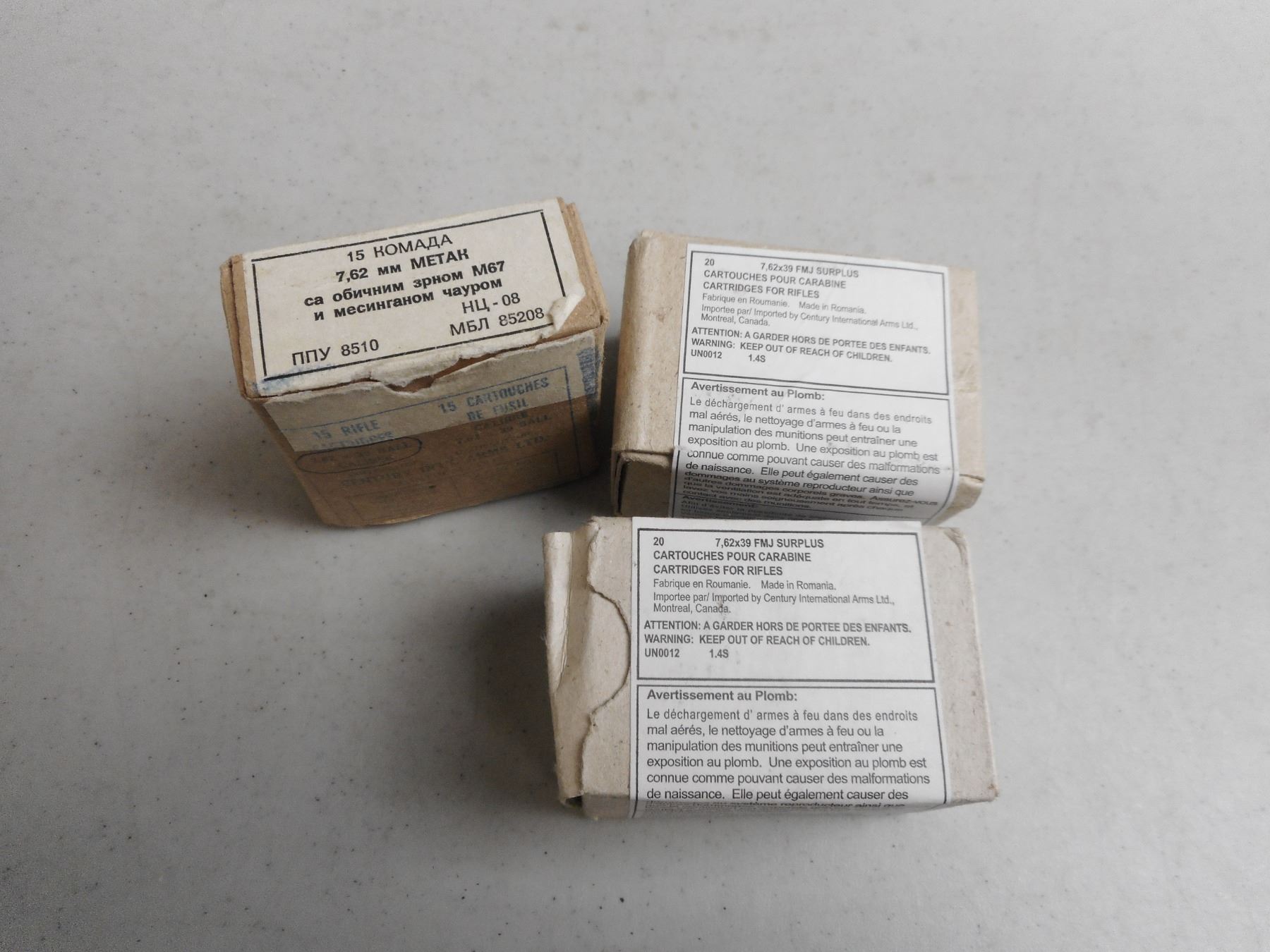 7.62X39MM FMJ SURPLUS AMMO , 55 RNDS 7.62X39MM FMJ SURPLUS AMMO