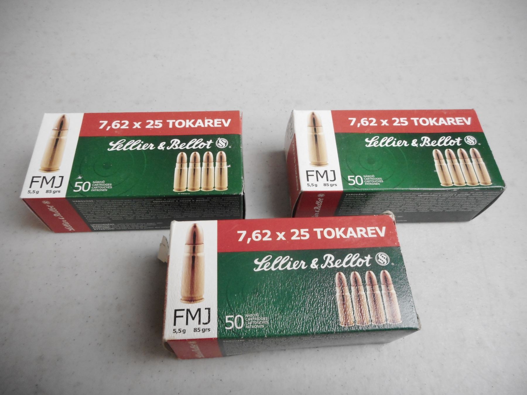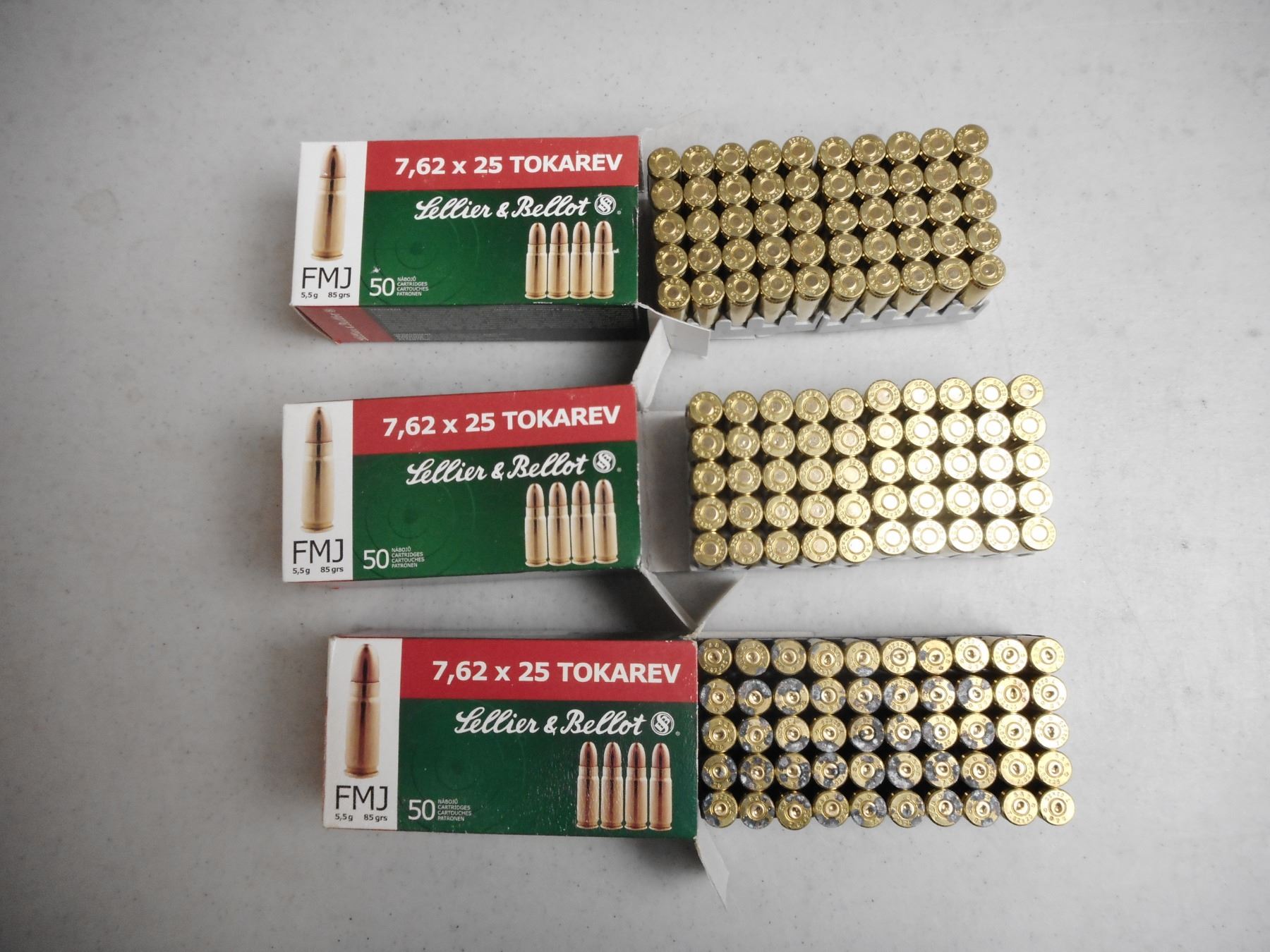 SELLIER & BELLOT 7.62X25 TOKAREV AMMO AND BRASS , 100 RNDS OF 7.62X25 TOKAREV, 85 GRNS, FMJ AMMO, 50 BRASS