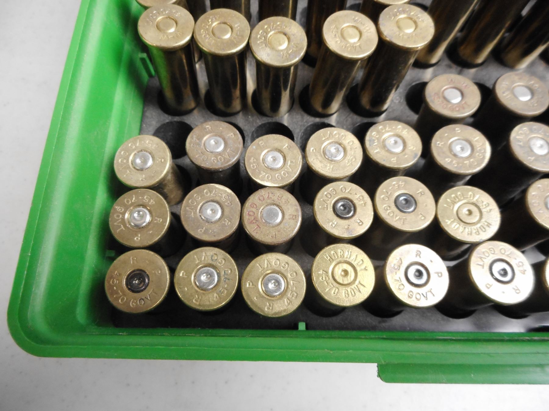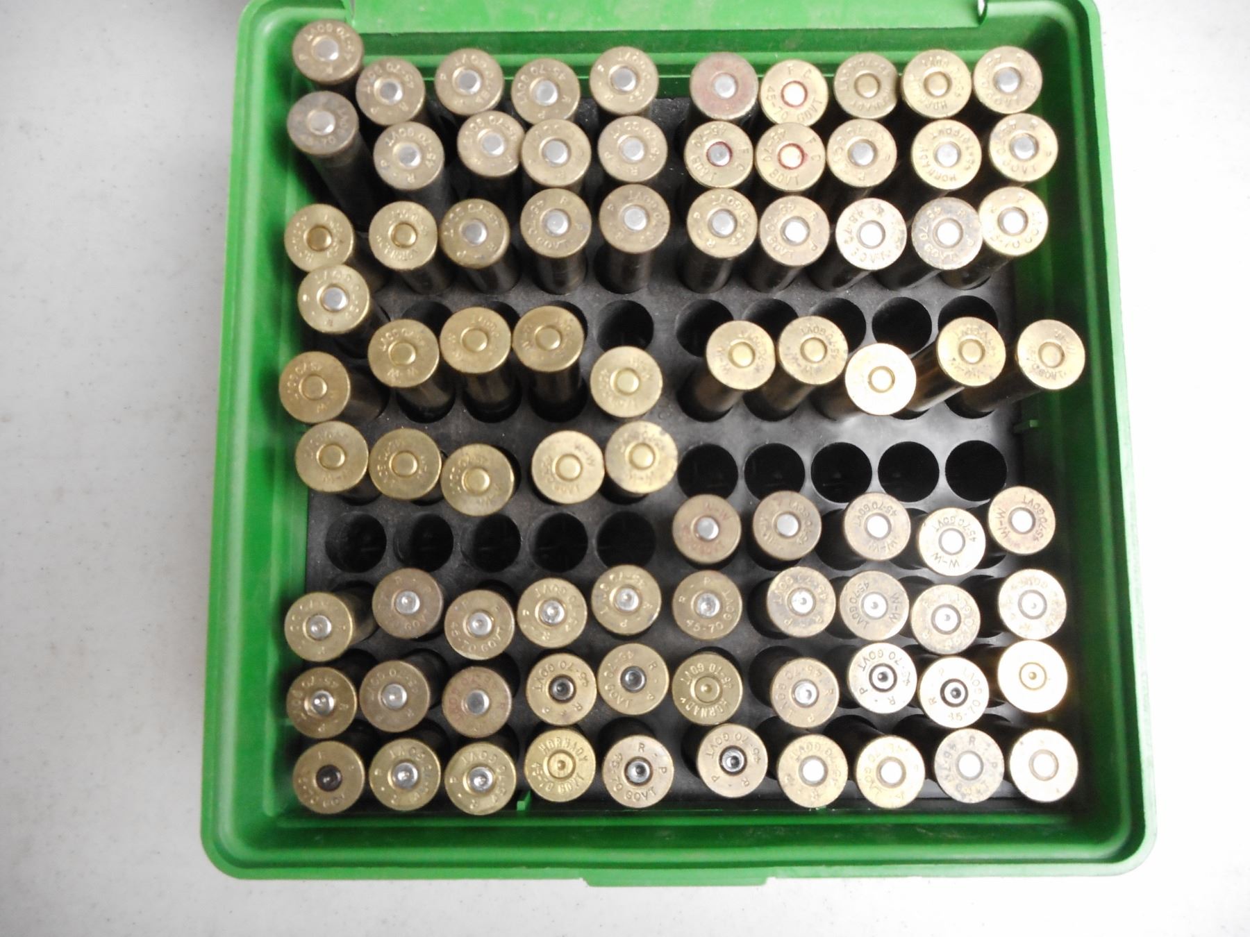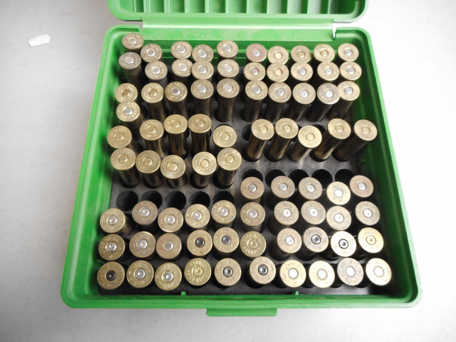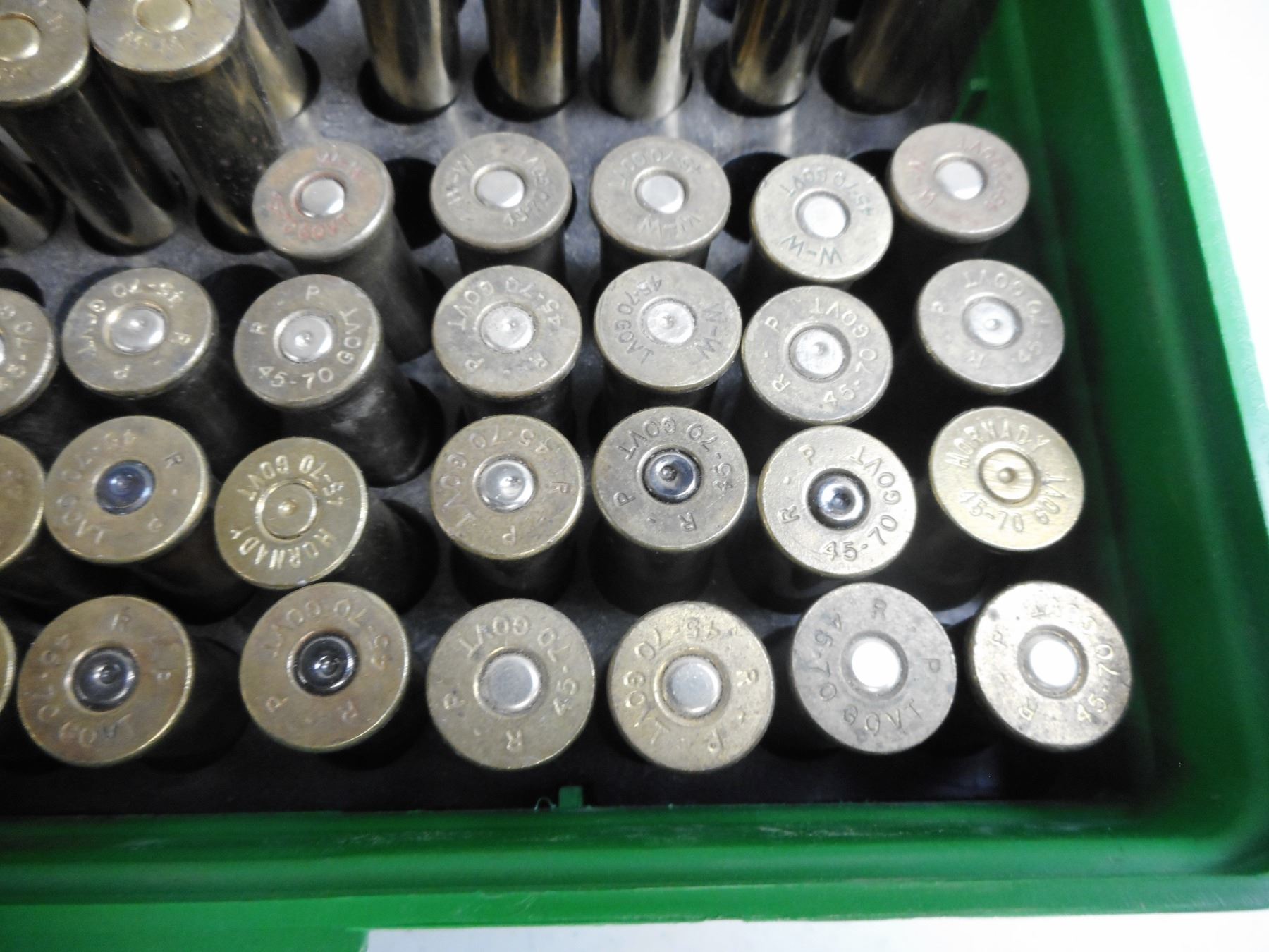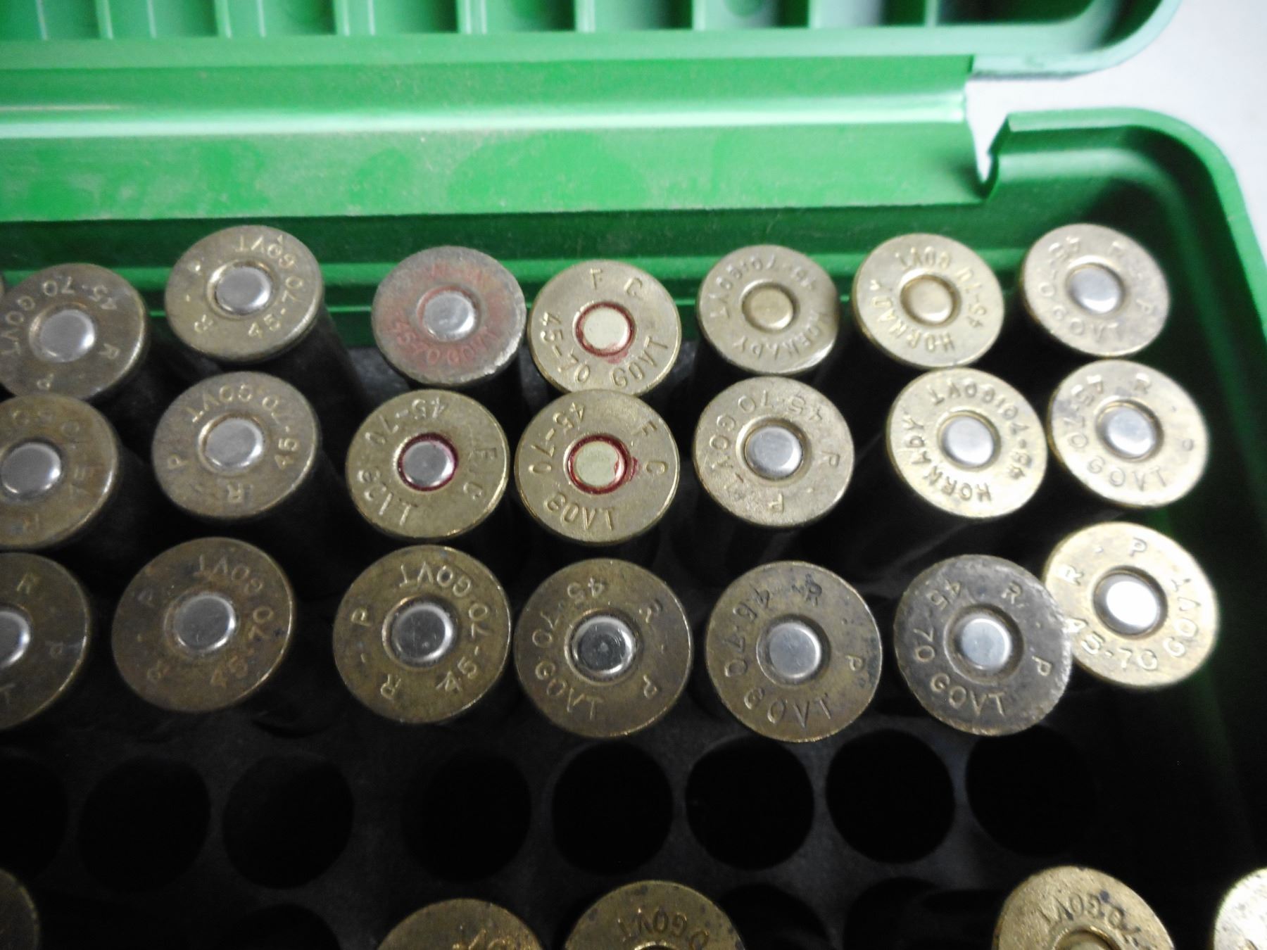 45-70 RELOADS AND AMMO, 45-70 BRASS, PRIMED AND UNPRIMED , 46 RNDS RELOADED AND AMMO, 35 BRASS 45-70 PRIMED AND UNPRIMED IN HARD PLASTIC CASE