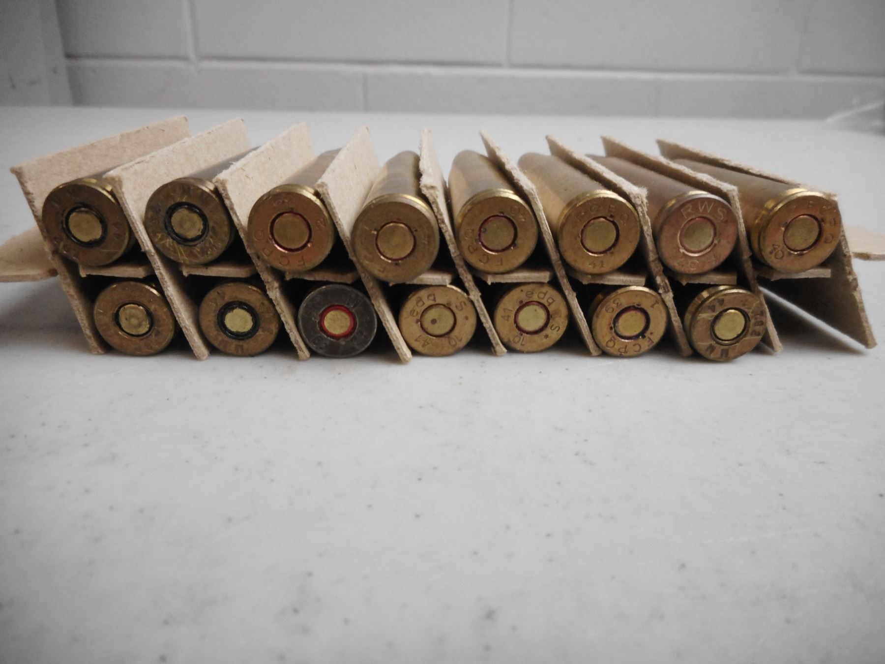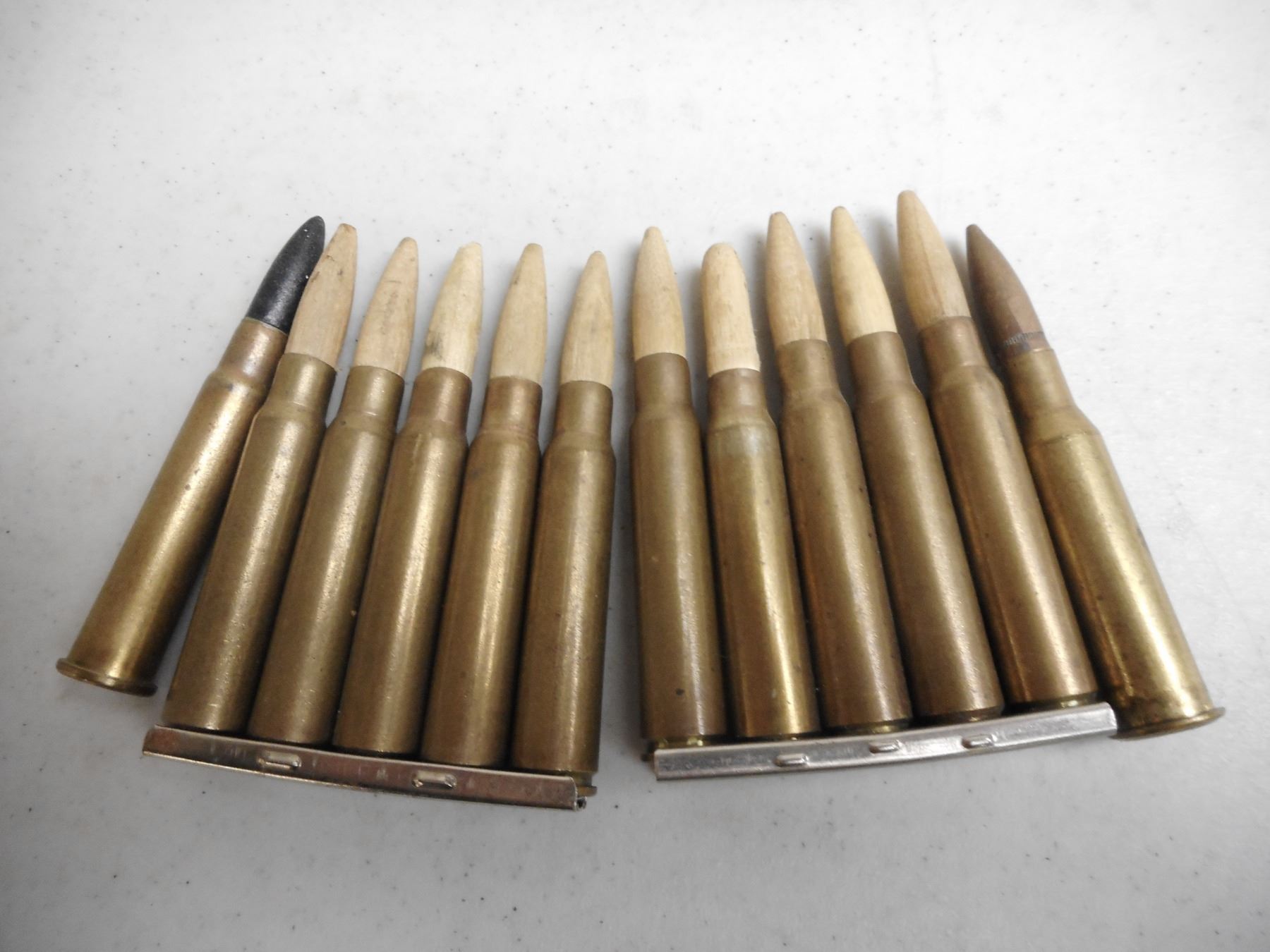 8MM AMMO WITH WOODEN BULLETS,AND RELOADS SOME ON STRIPPER CLIPS , 10 RNDS 8MM AMMO WITH WOODEN BULLETS ON STRIPPER CLIPS, 1 RND .303 AMMO, 1 RND 7.62X54 AMMO, 15 RNDS 8MM RELOADS