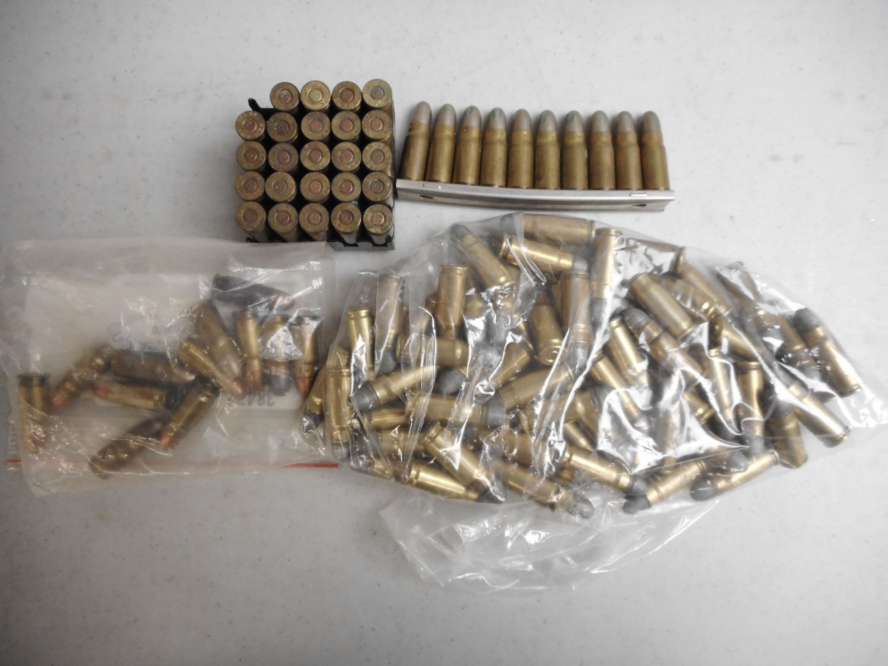 ASSORTED AMMO, INCLUDING .30 CAL, 403, 30 LUGER, AND RELOADS , 98 RNDS, AND RELOADS, .30 CAL, 10 RNDS 403 ON STRIPPER CLIP, 12 RNDS 30 LUGER,
