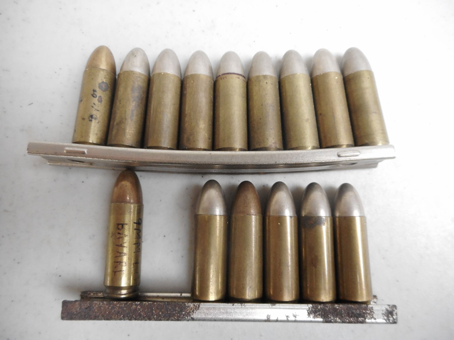 9MM SOME WWII ERA ON STRIPPER CLIPS , 15 RNDS 9MM AMMO ON STRIPPER CLIPS, SOME WWEII