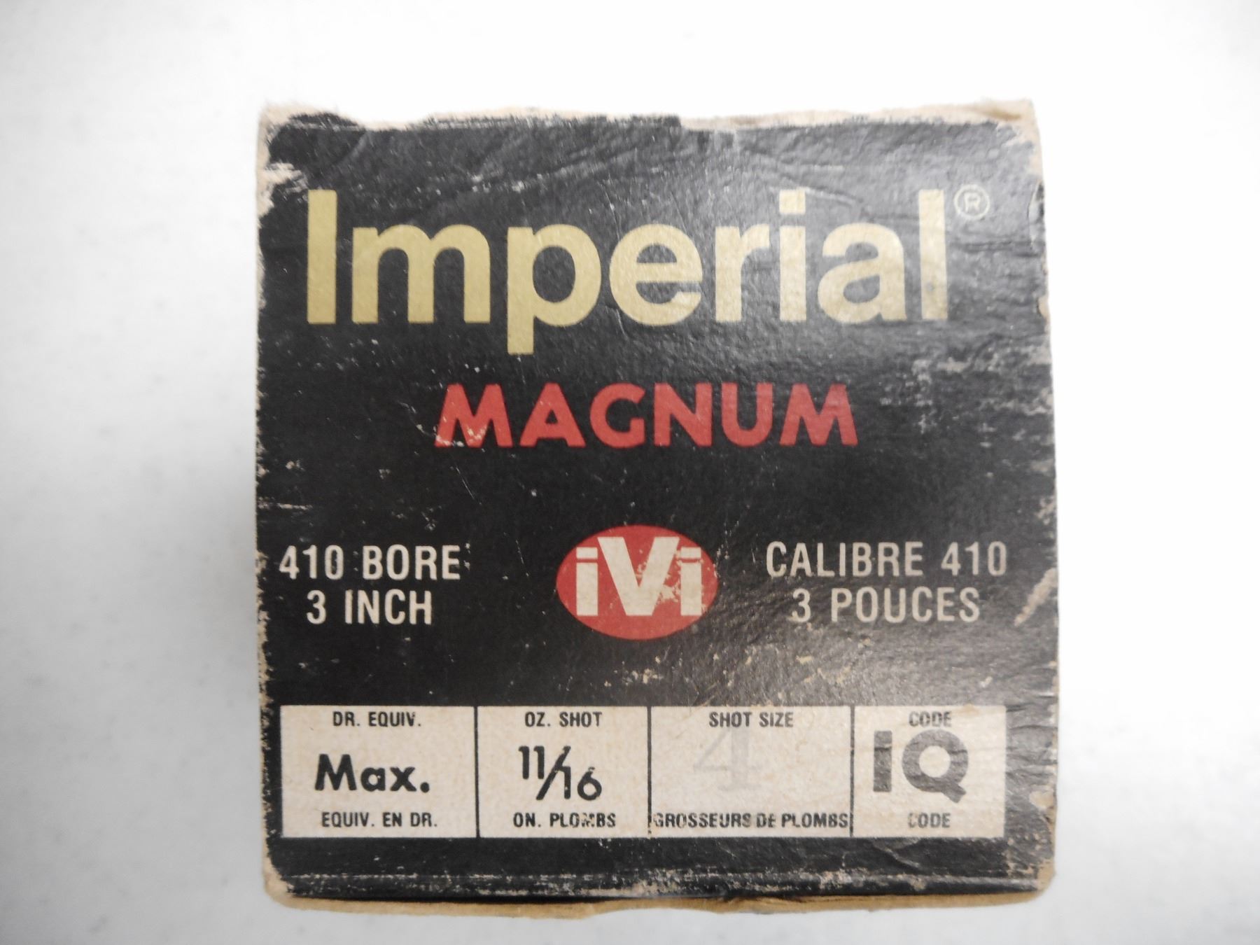 IMPERIAL MAGNUM 410 BORE 3" AMMO , 25 SHOTSHELLS IMPERIAL MAGNUM 410 3INCH, #4 SHOT, PAPER AMMO