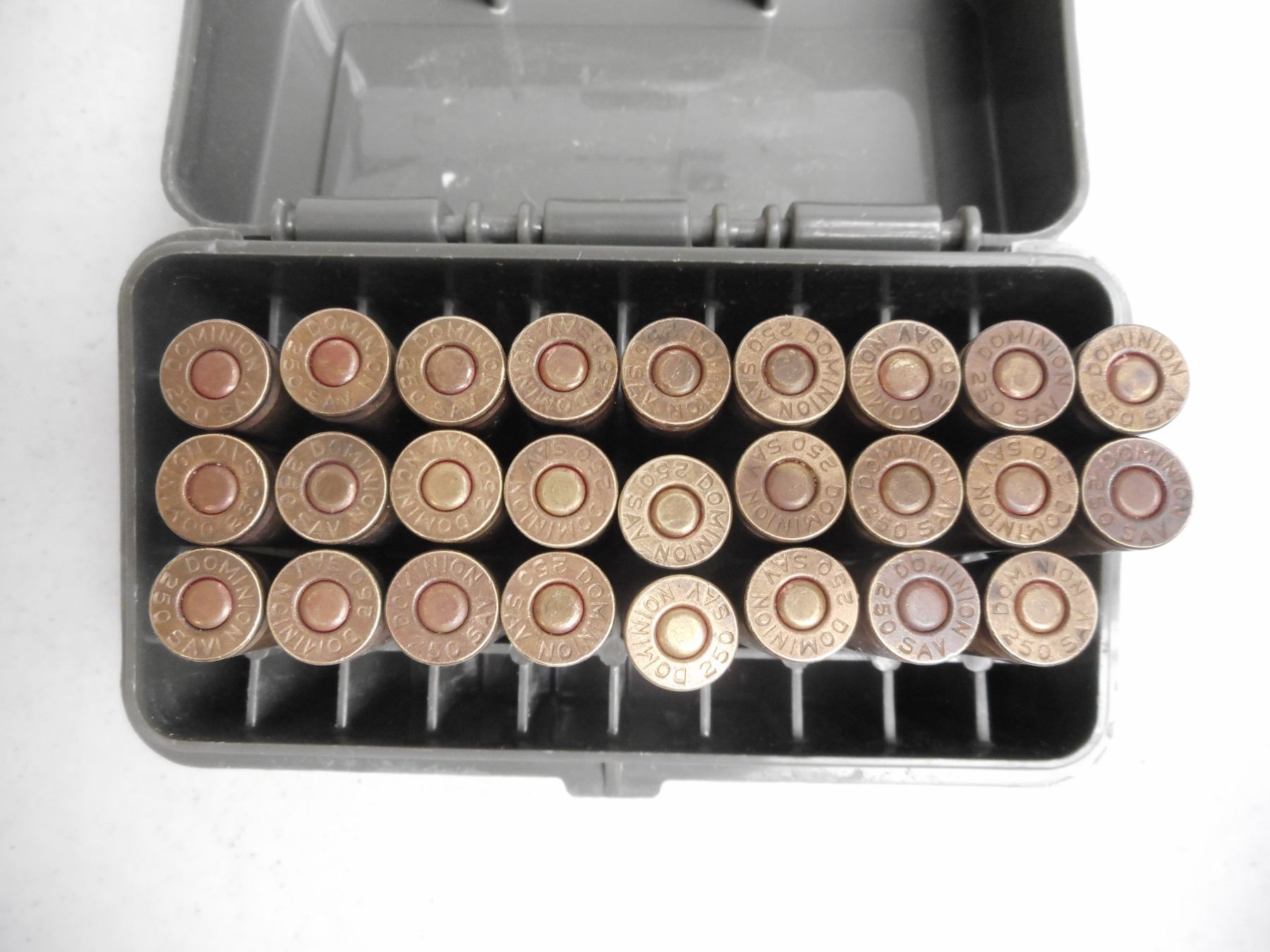 DOMINION 250 SAVAGE AMMO , 26 RNDS DOMINION 250 SAVAGE AMMO IN HARD PLASTIC CASE