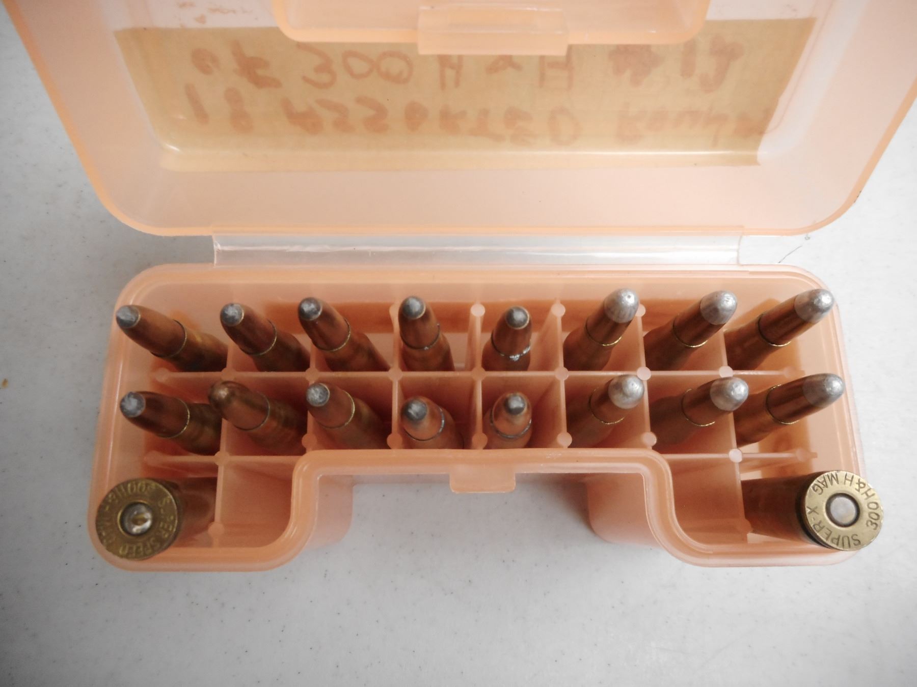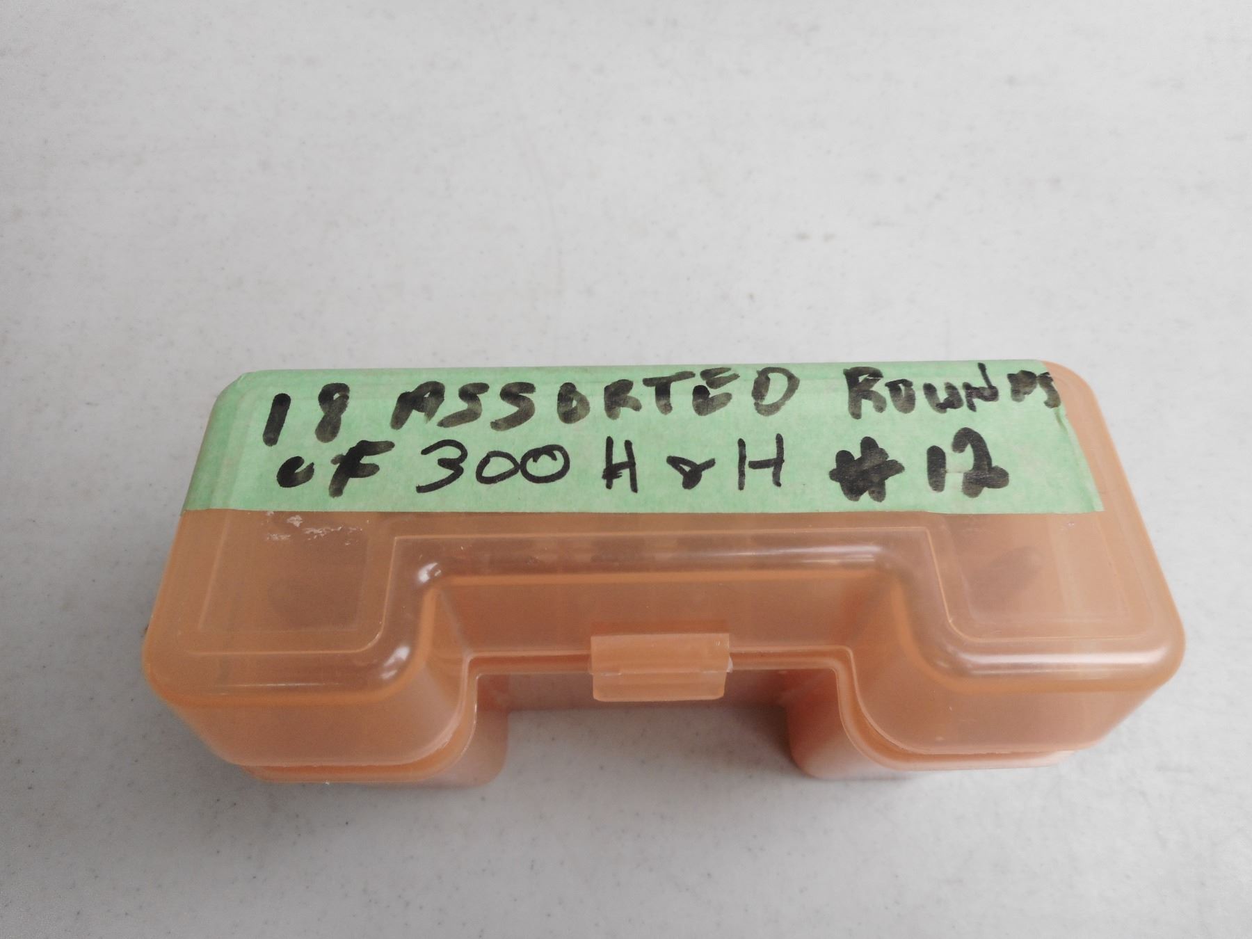 ASSORTED 300 H & H MAG. AMMO , 18 RNDS ASSORTED 300 H & H MAG AMMO IN HARD PLASTIC CASE