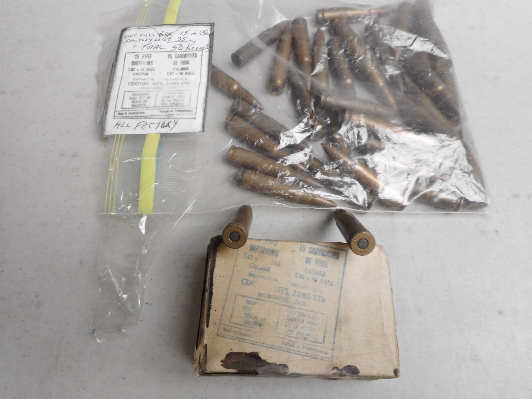 7.62X45 BALL AMMO , 50 RNDS 7.62X45 BALL AMMO, SOME ON STRIPPER CLIPS