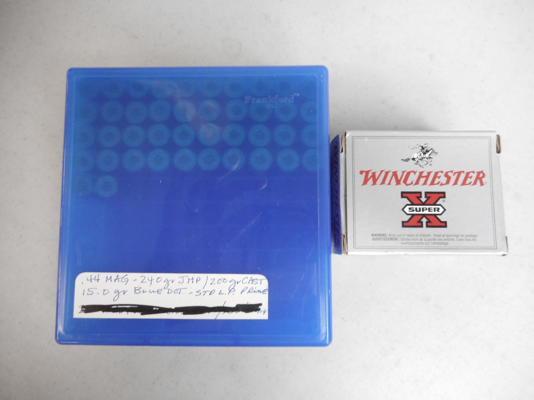 .44 MAG ASSORTED AMMO, AND RELOAD , 50 RNDS .44 MAG. ASSORTED AMMO AND RELOADS, SOME IN HARD PLASTIC CASE