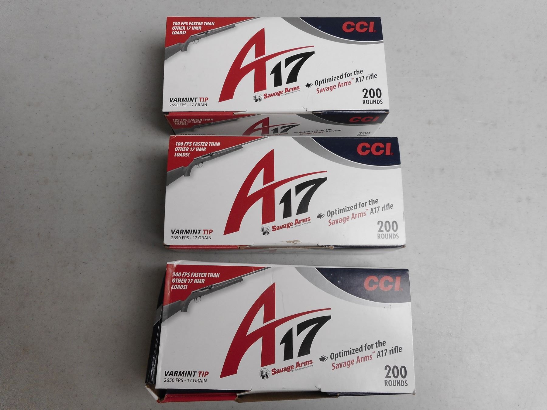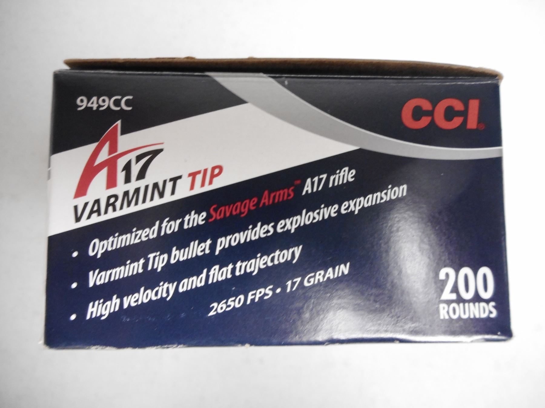 CCI A17 SAVAGE ARMS, AMMO , 417 RNDS A17 AMMO FOR A17 RIFLE 17 GRNS, VARMINT TIP