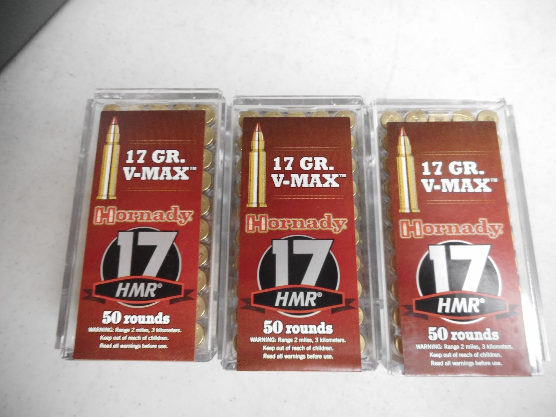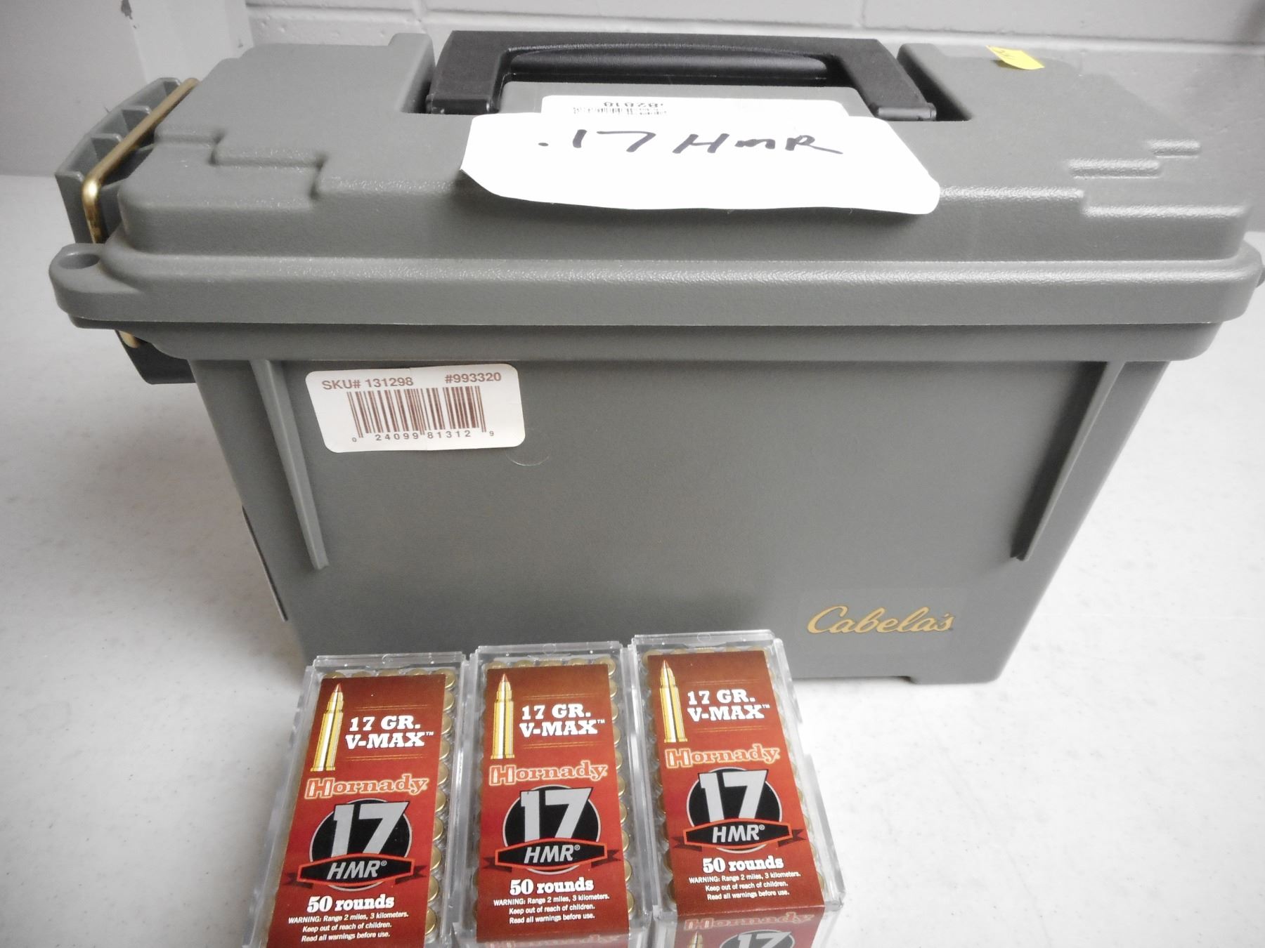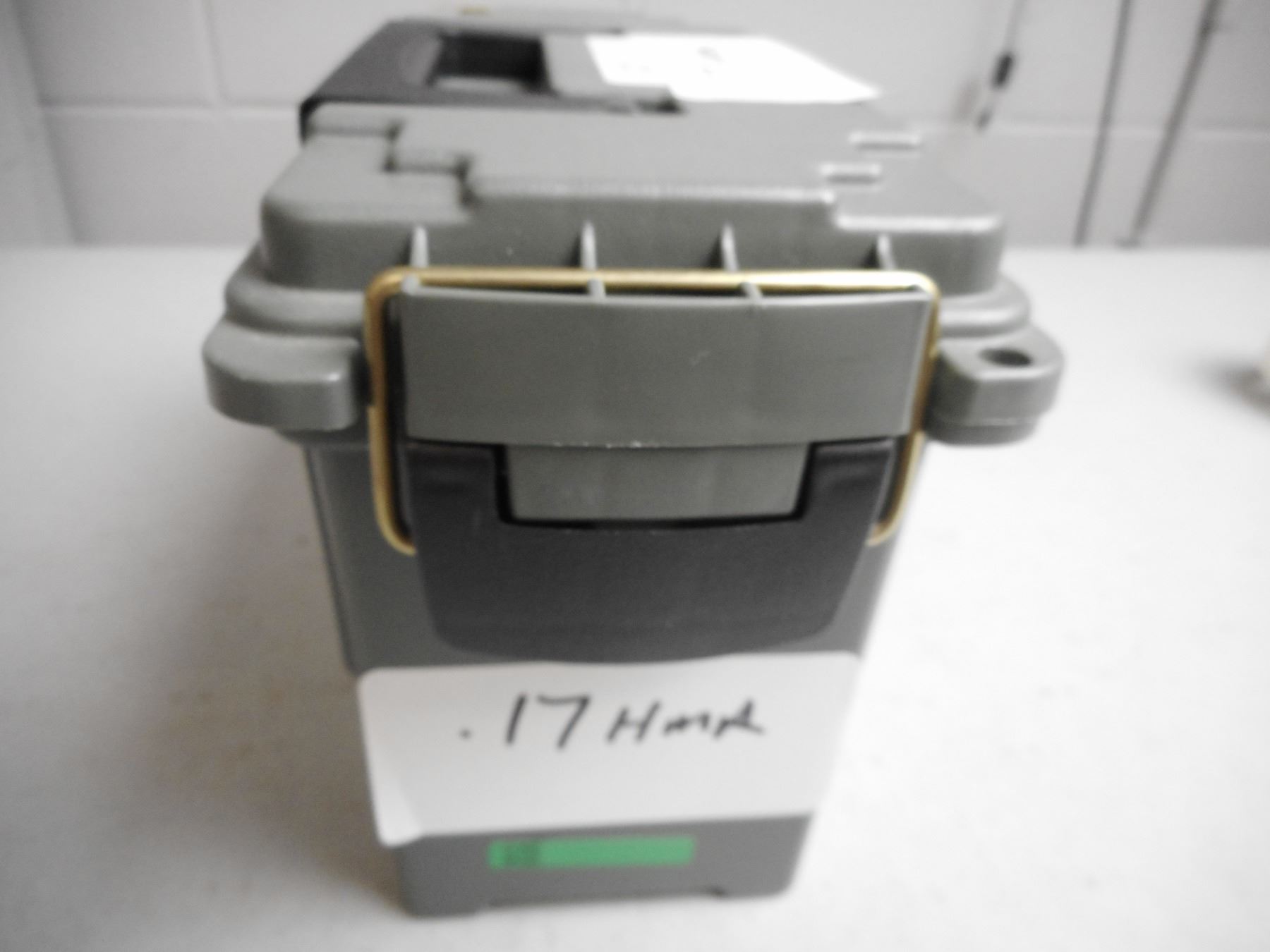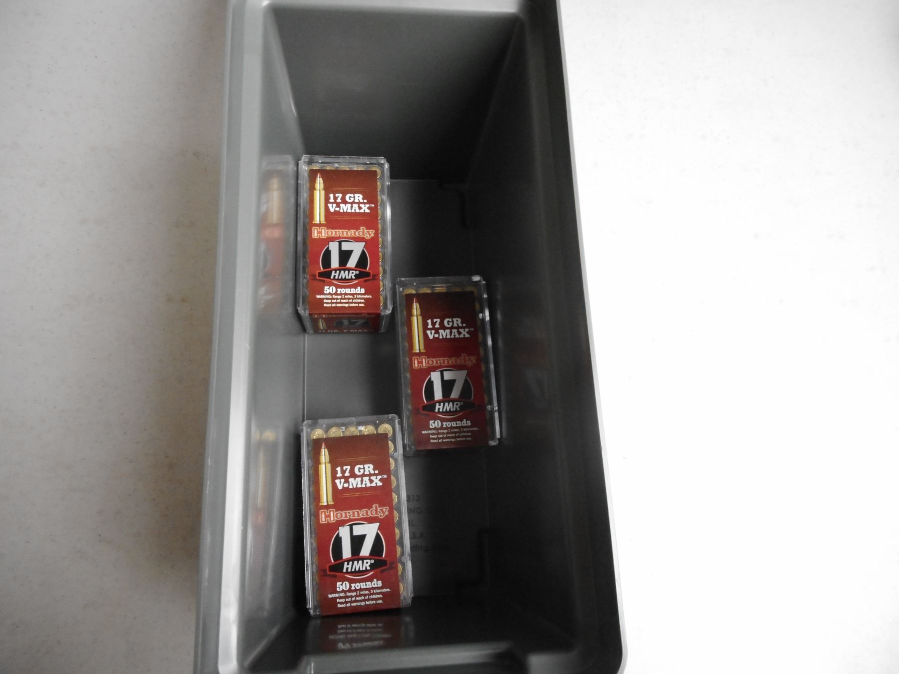 HORNADY 17 HMR AMMO IN PLASTIC AMMO CASE , 150 RNDS 17 HMR 17 GRNS, V-MAX IN SEALED BOXES, IN PLASTIC AMMO CASE